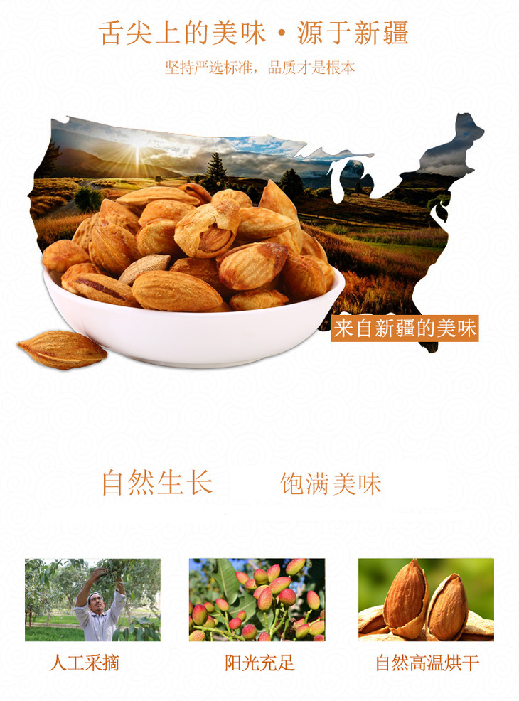天野园·巴旦木 奶香大桃仁 250g 扁桃仁坚果干果零食 袋装