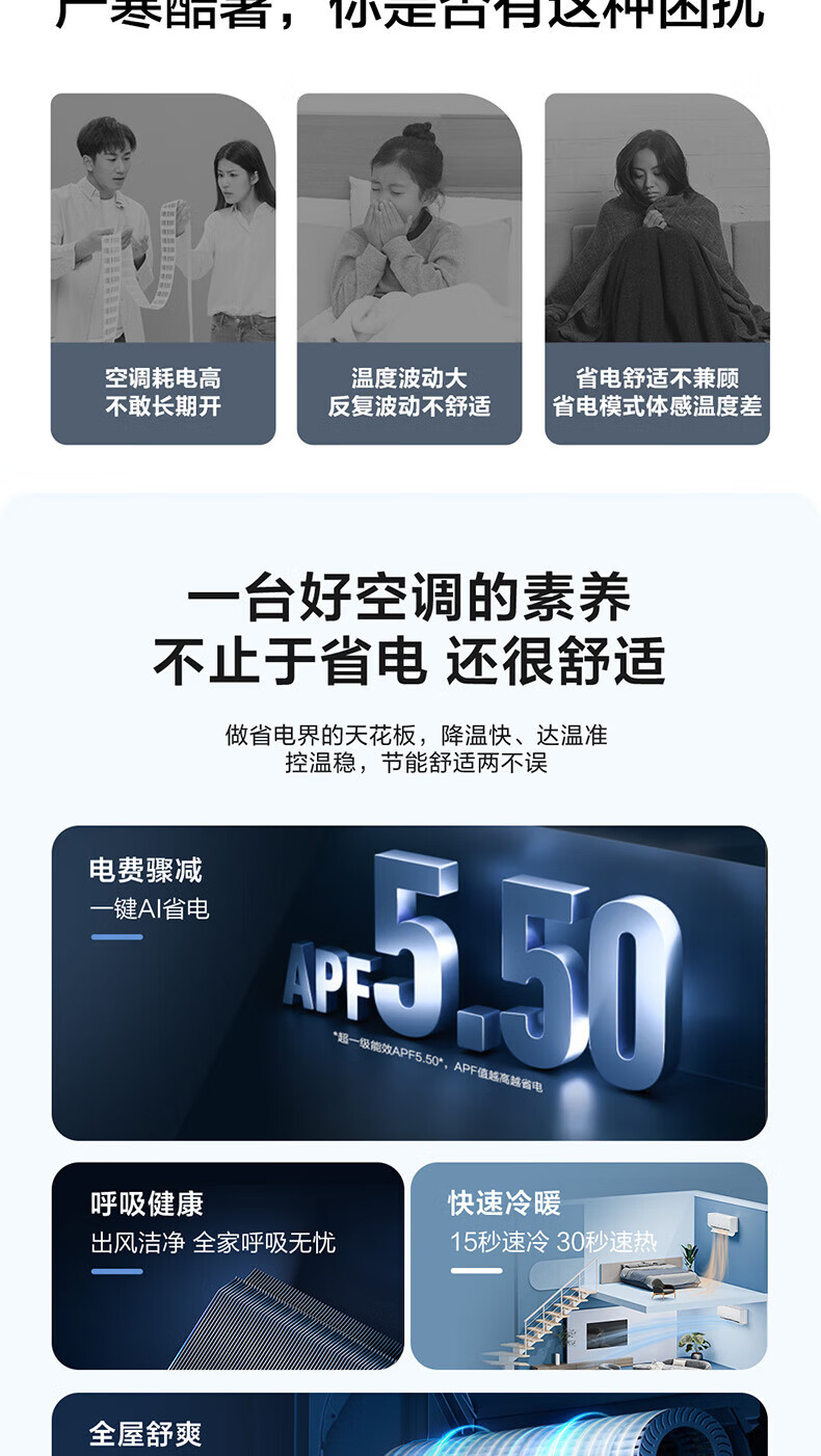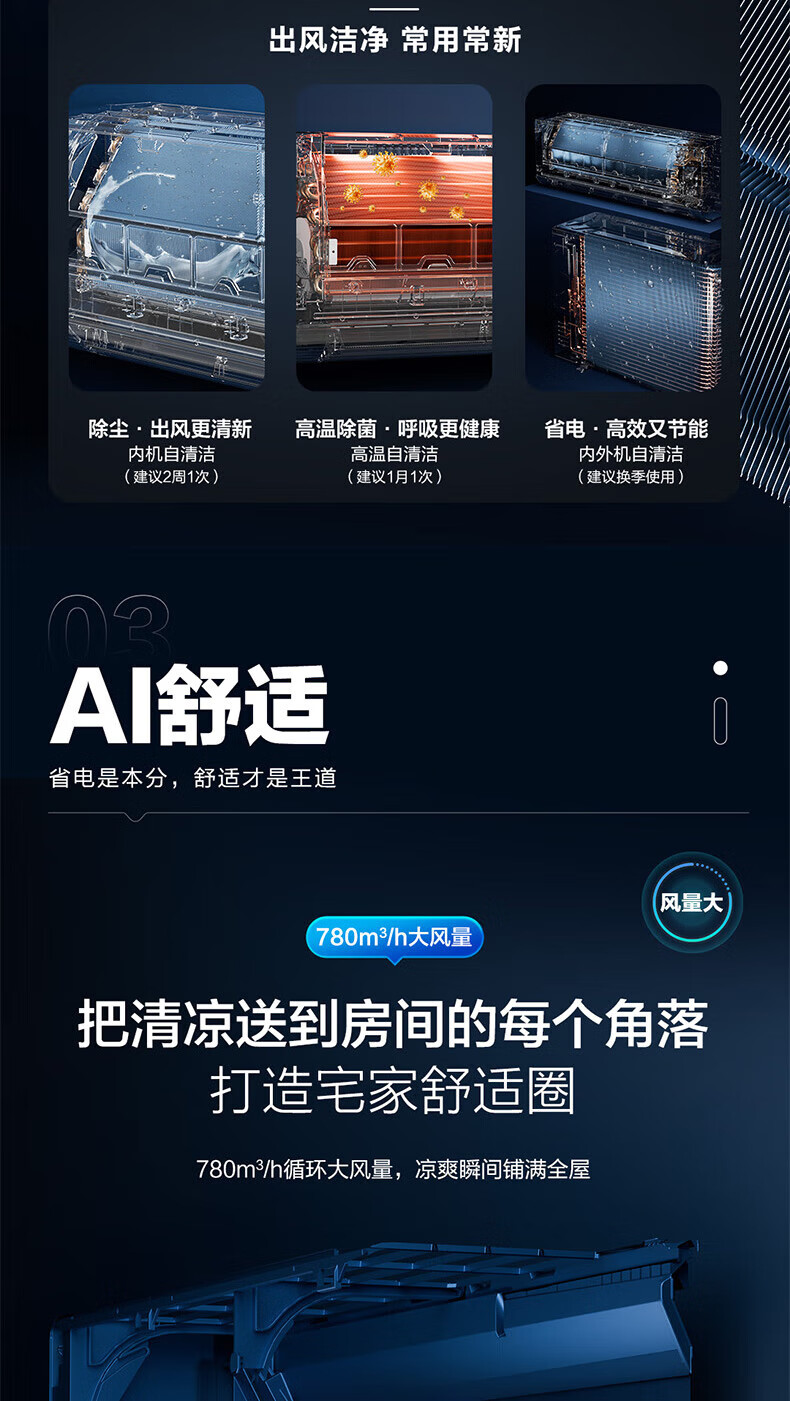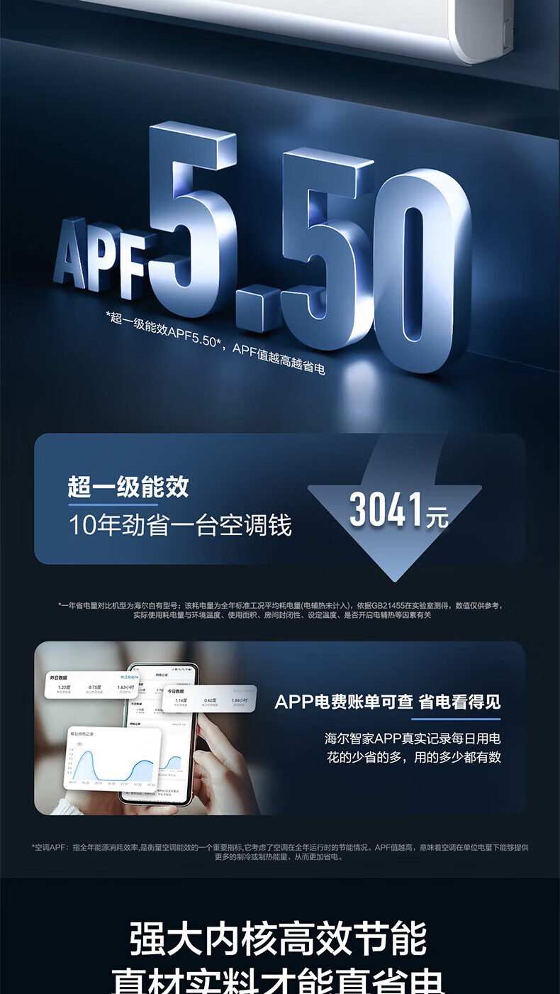 海尔(Haier)空调挂机1匹一级能效变频壁挂式卧室空调内外机自清洁一键AI省电冷暖不直吹KFR-26GW/E1-1净省电 1匹 一级能效 /冷暖不直吹/一键AI省电/自清洁