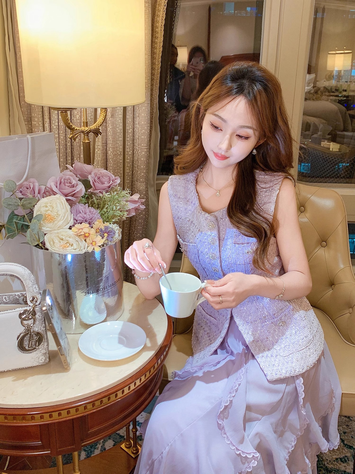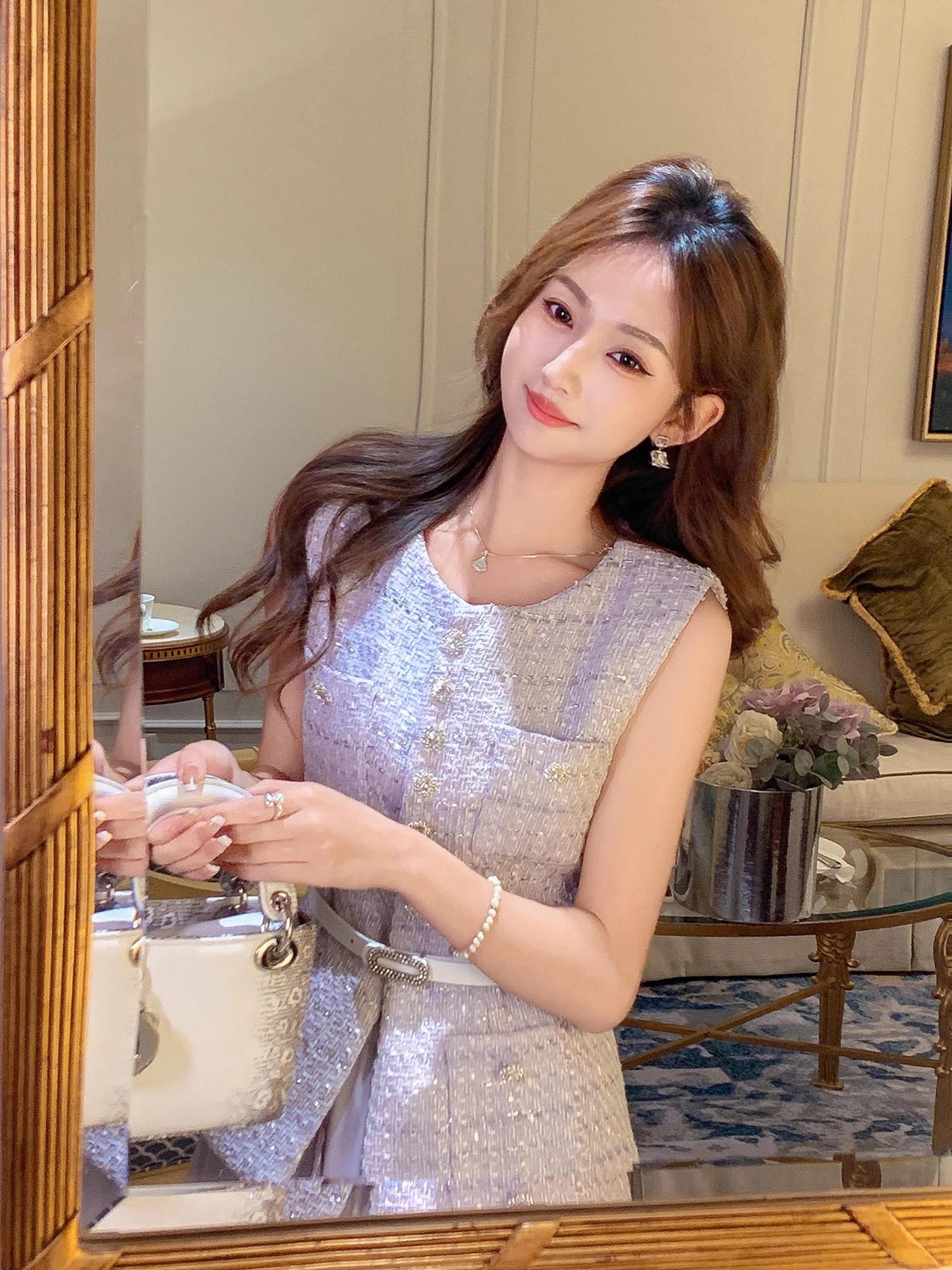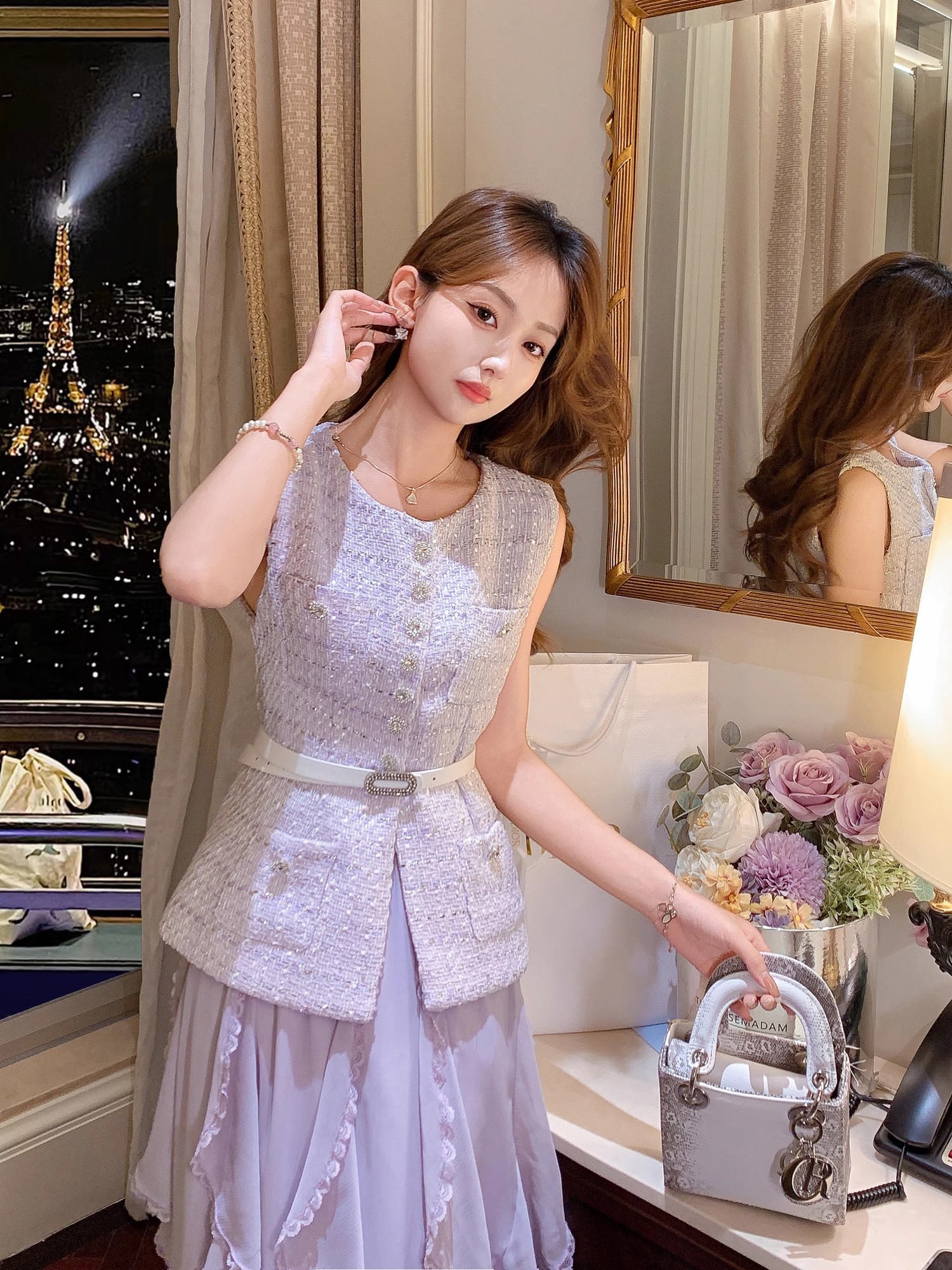 张心子【紫雾香氛】名媛风小香风无袖马甲收腰背心U2503071