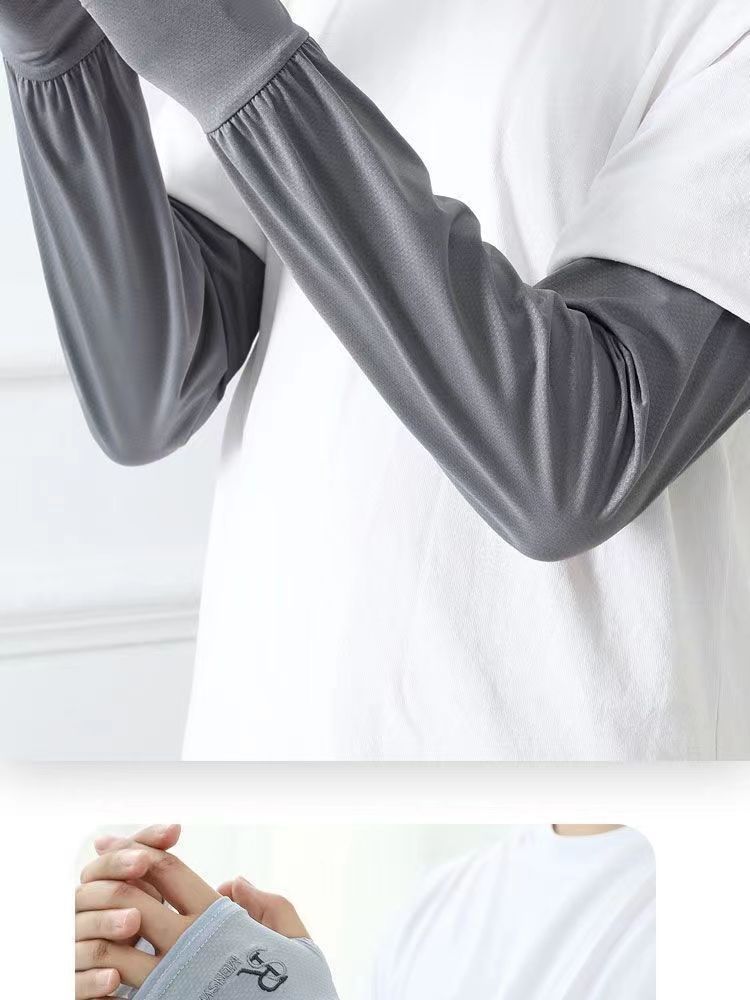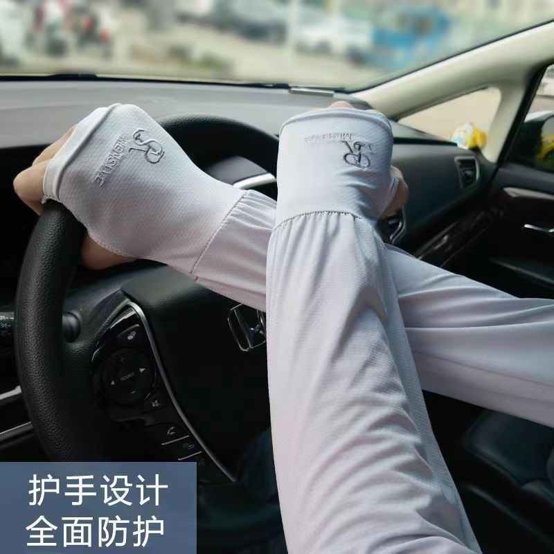 买一送一,可任选【护手设计❗全面防护】SR刺绣冰丝防晒袖套男夏季户外骑行宽松透气遮阳手臂套袖防紫外线。ri