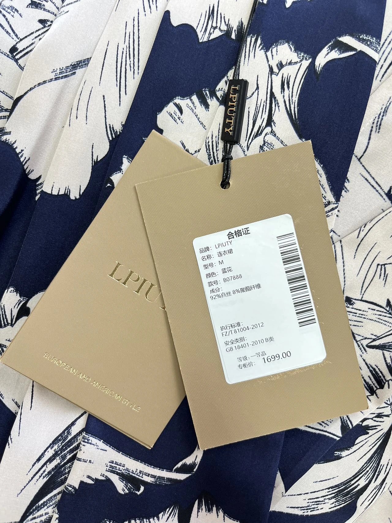 【材质】面料:92%真丝 8%聚酯纤维