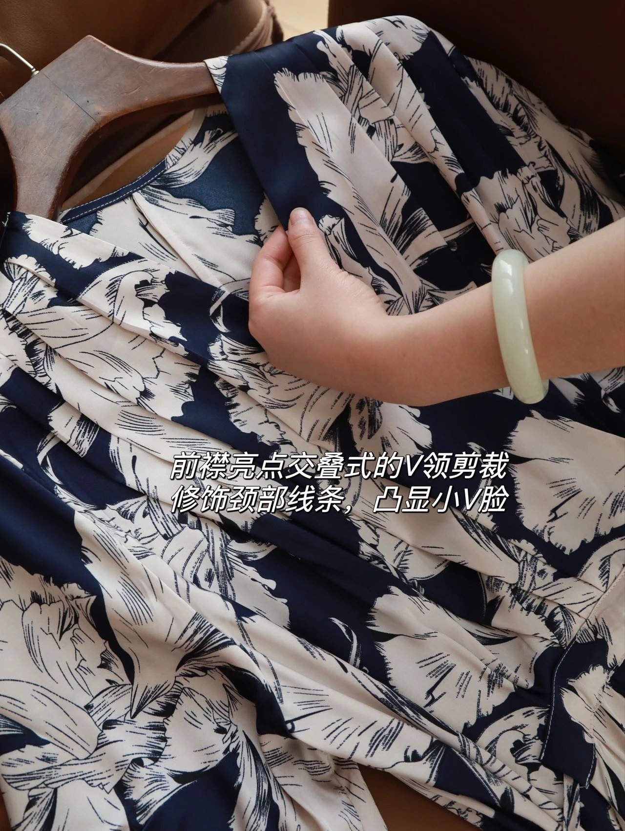 前襟亮点,交叠式的V领剪裁