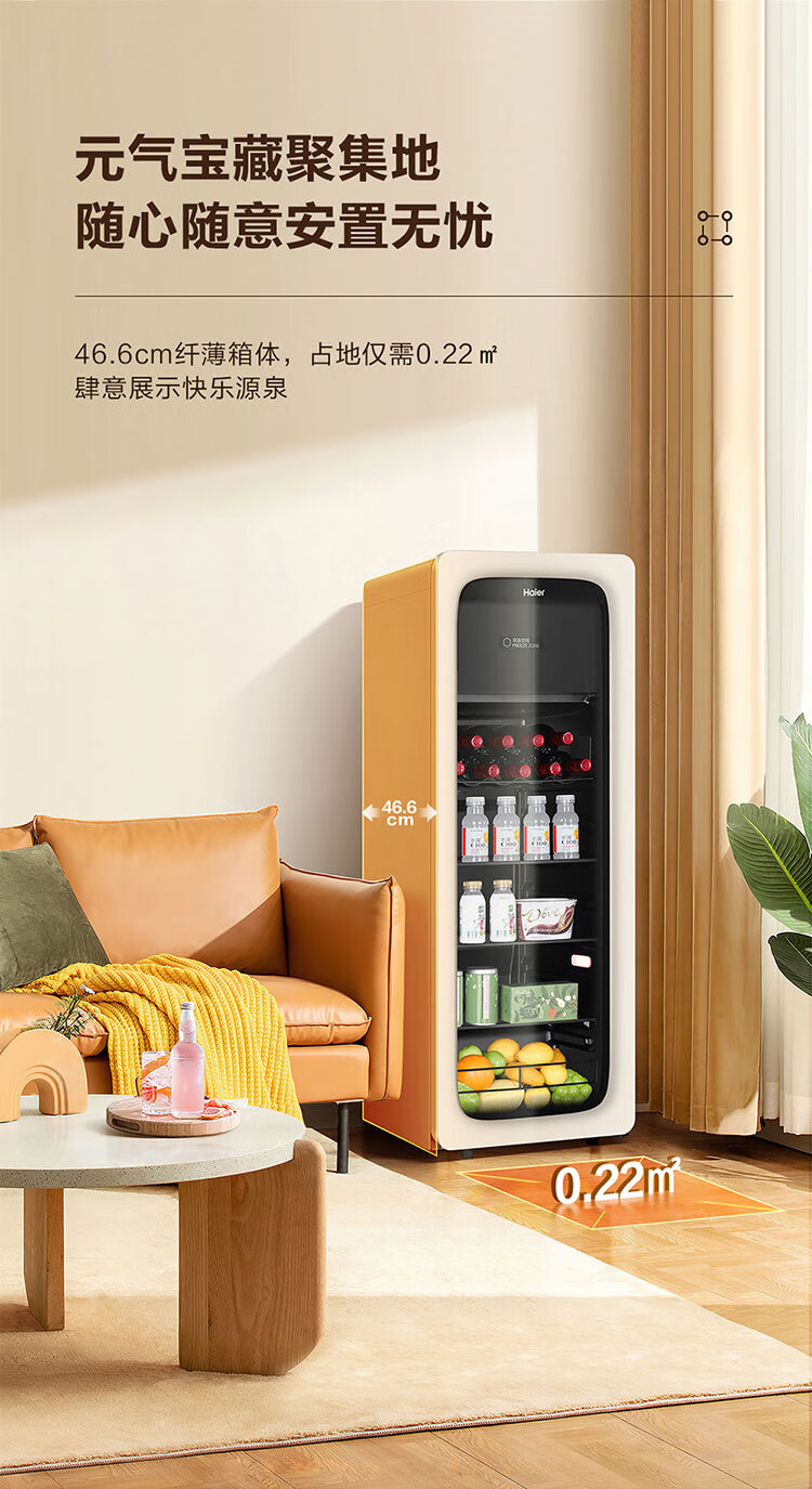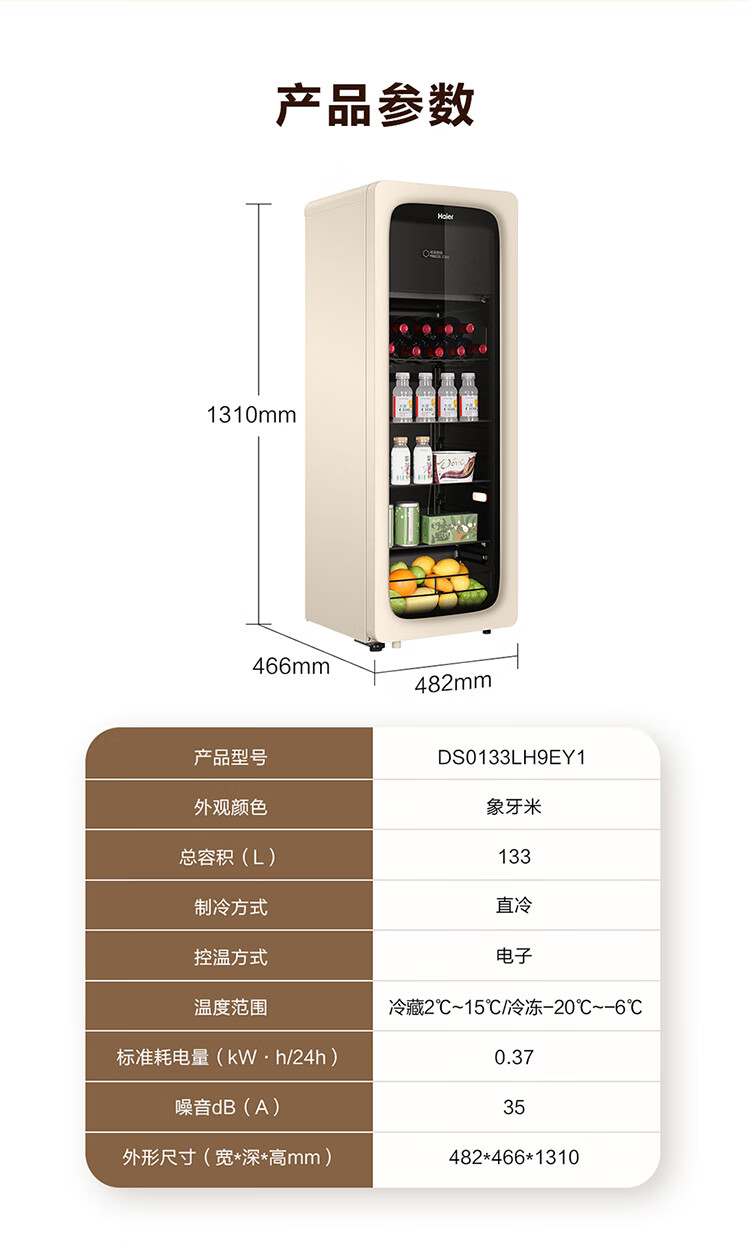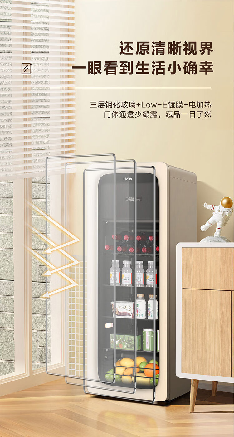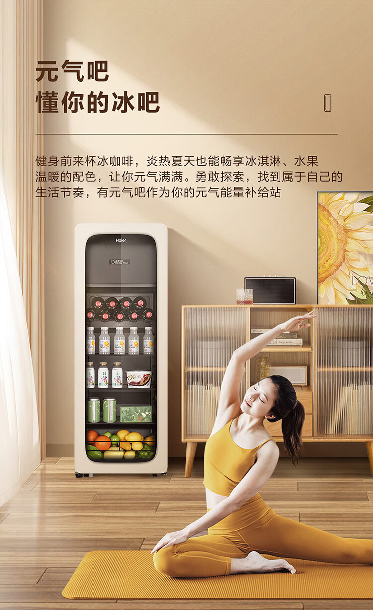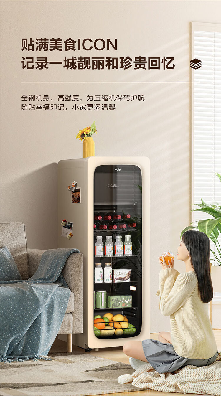 海尔(Haier)【小红花套系】133升家用客厅办公室冷藏柜冰吧茶叶饮料蔬果保鲜柜囤货小冰箱DS0133LH9EY1