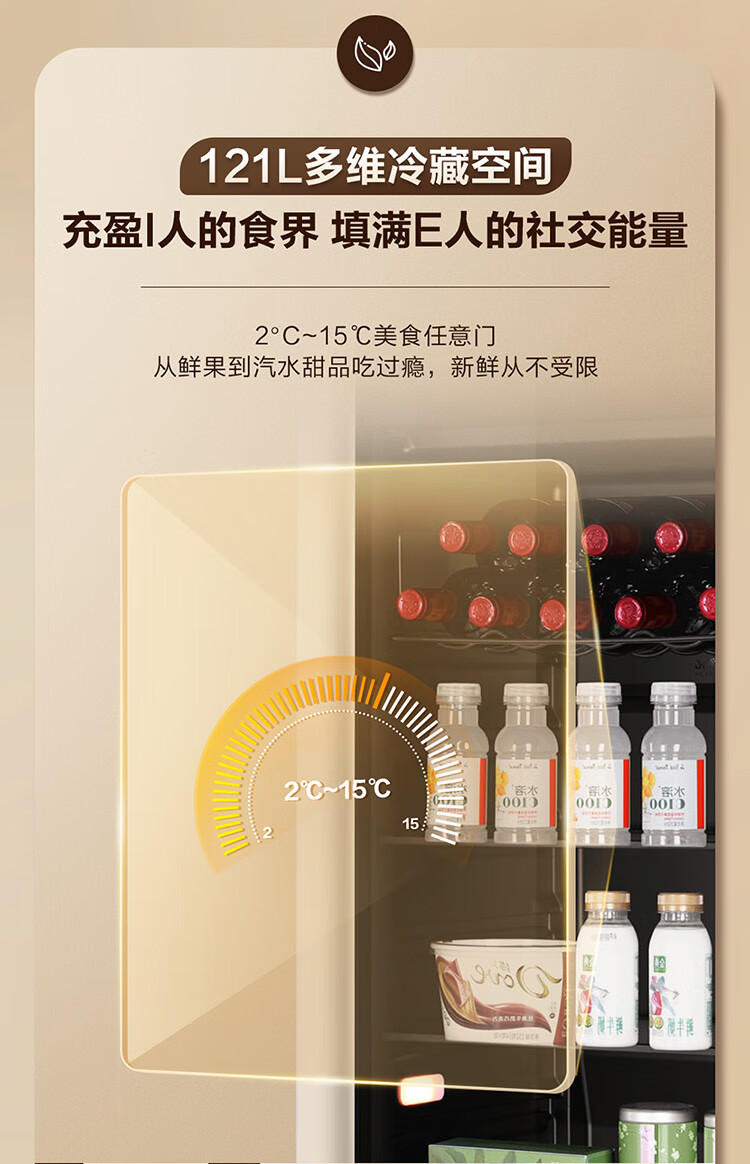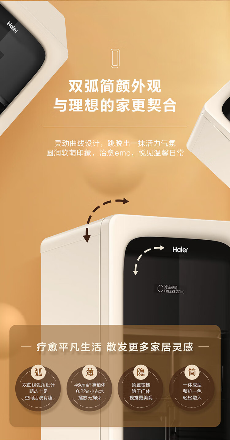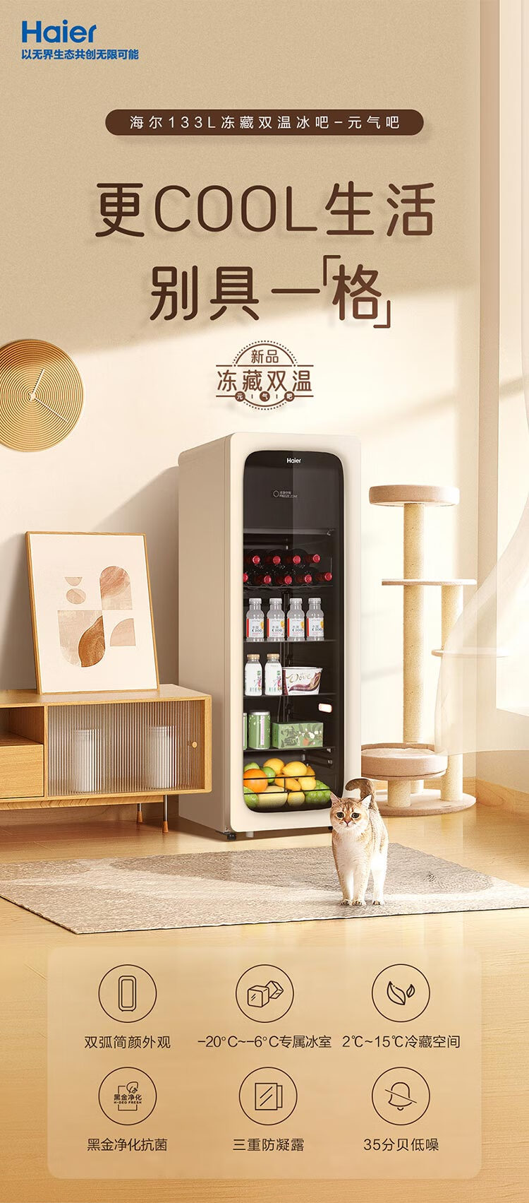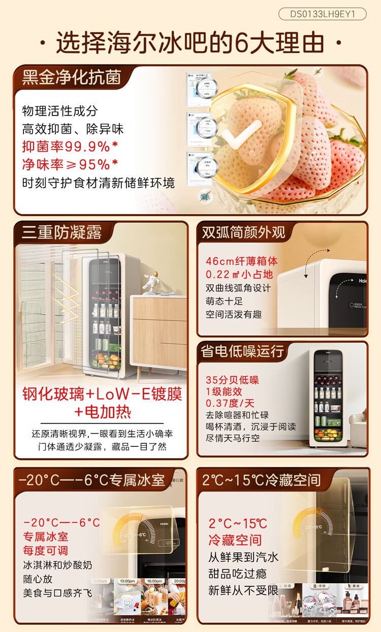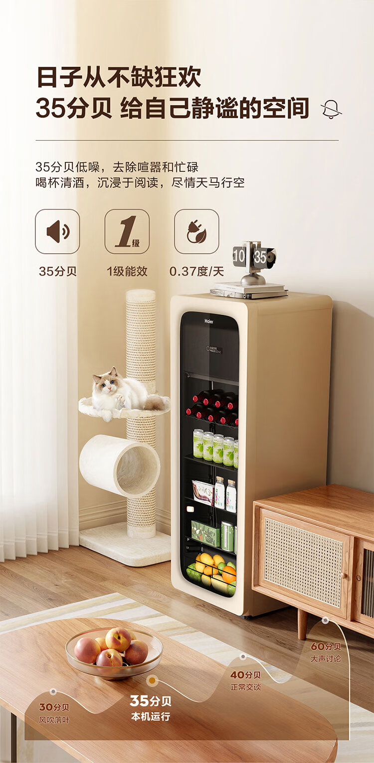 海尔(Haier)【小红花套系】133升家用客厅办公室冷藏柜冰吧茶叶饮料蔬果保鲜柜囤货小冰箱DS0133LH9EY1
