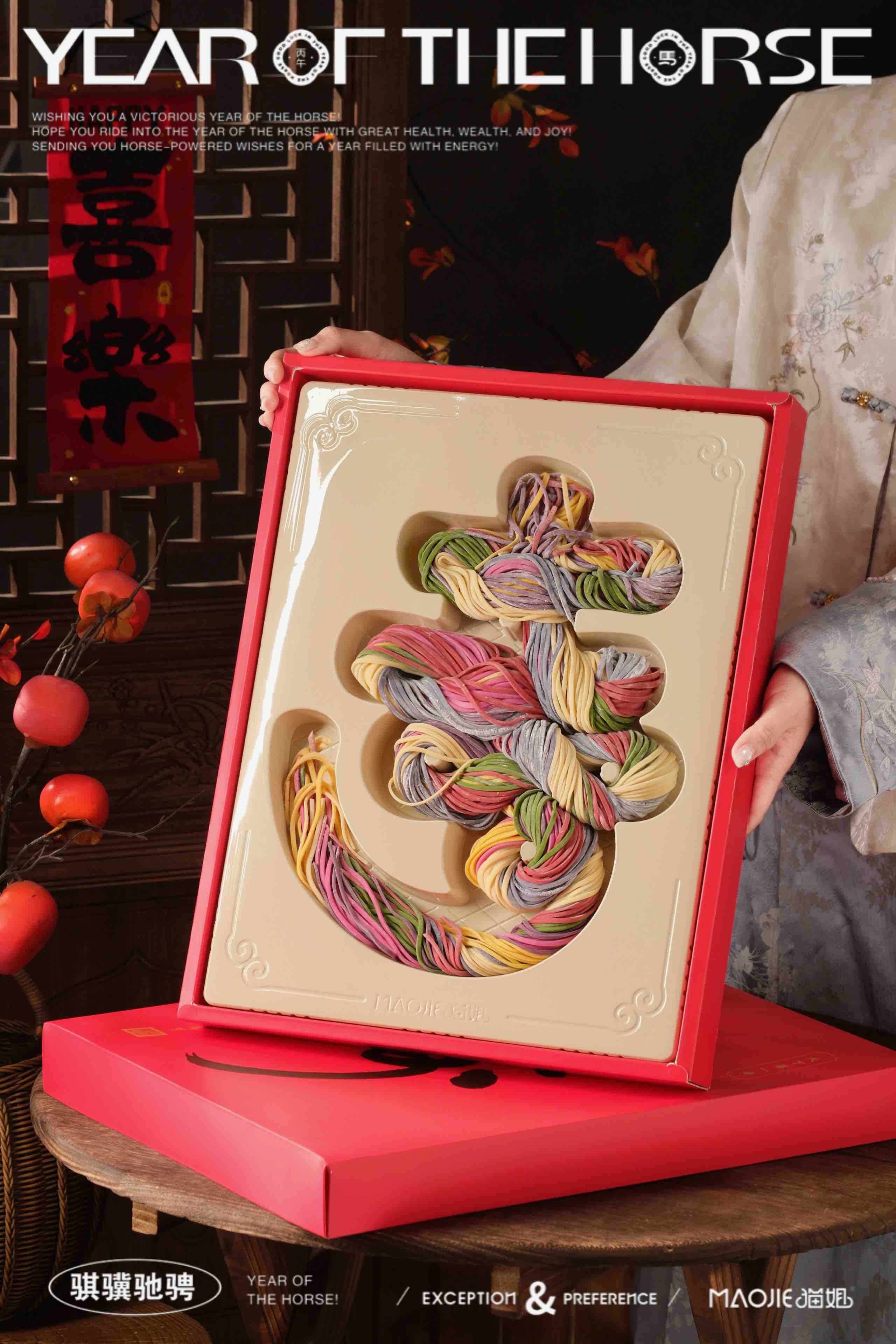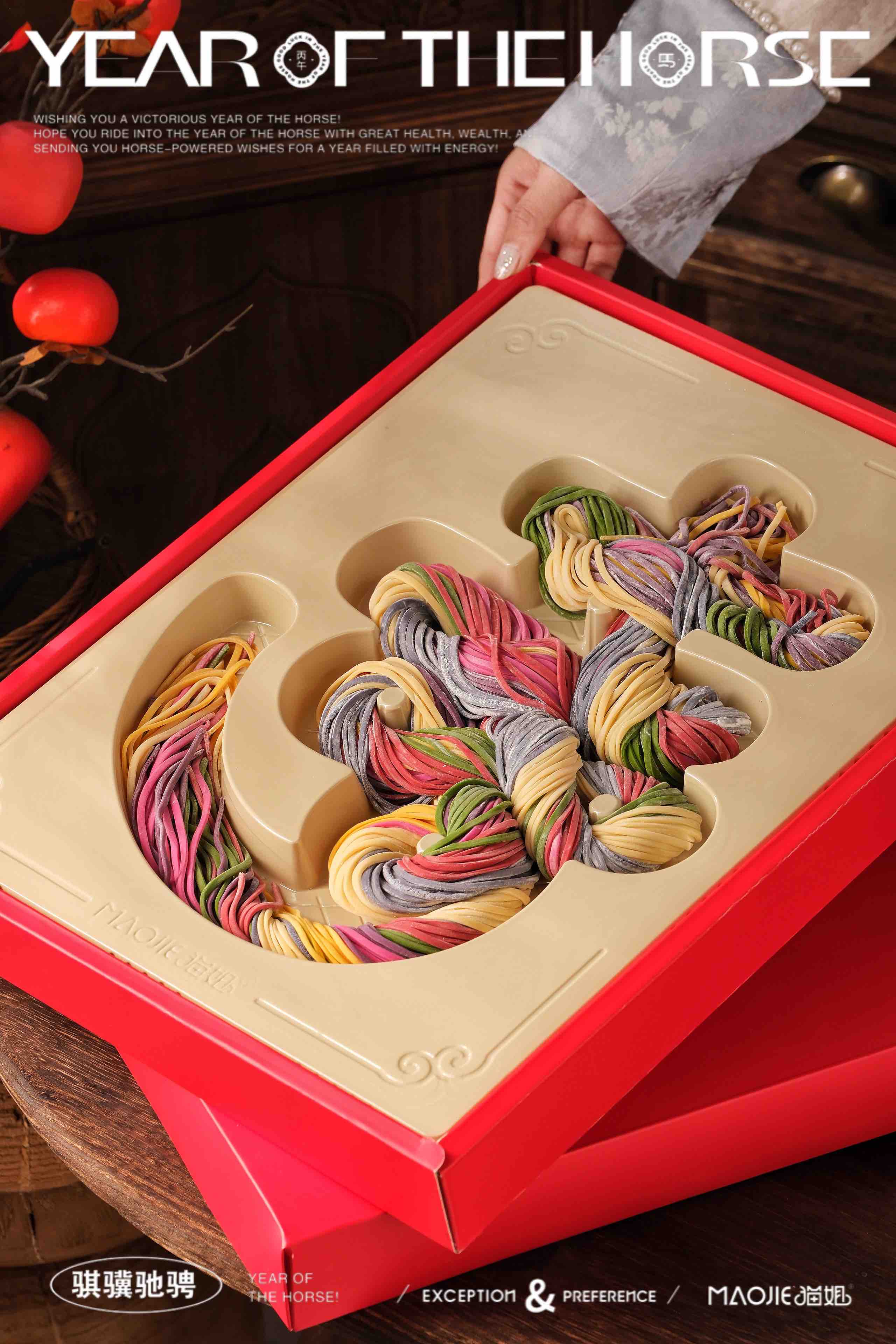 🍜菠菜面、红曲粉面、蝶豆花面,红心火龙果面、紫薯面、南瓜面,鸡蛋面,七种天然果蔬组成了乾隆皇帝的天下第一寿字,净重900g
