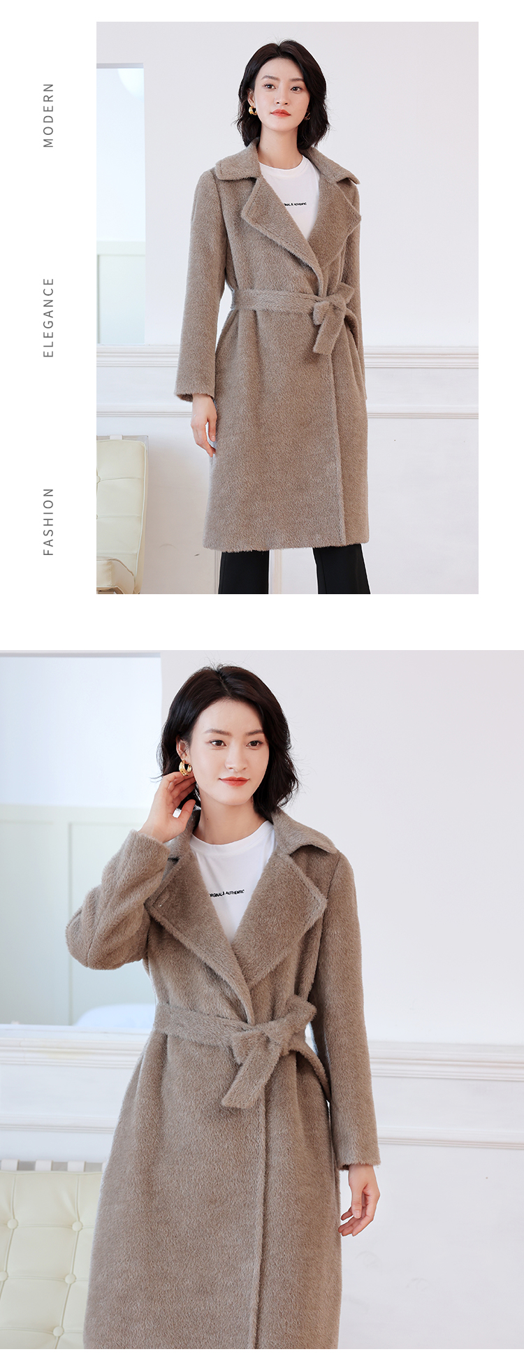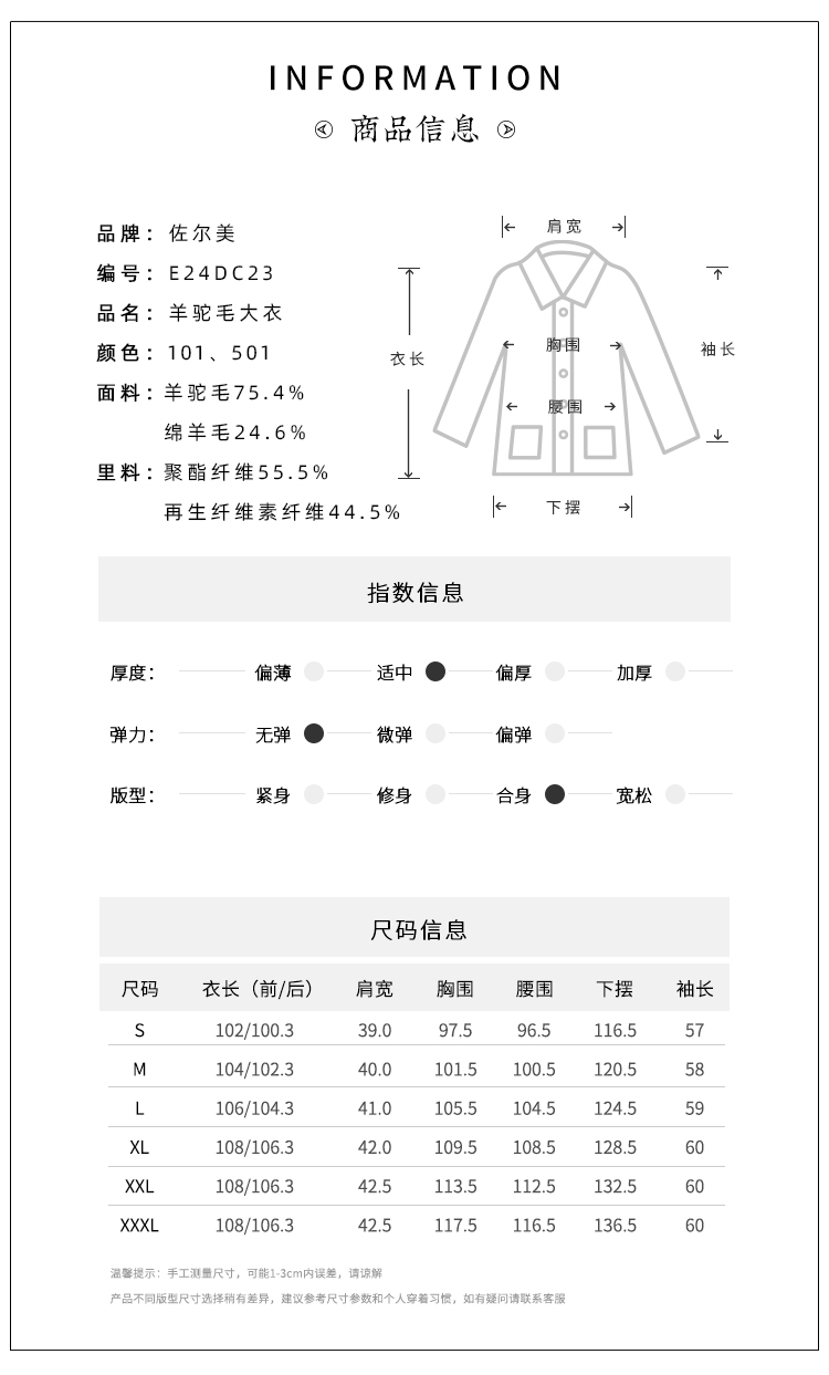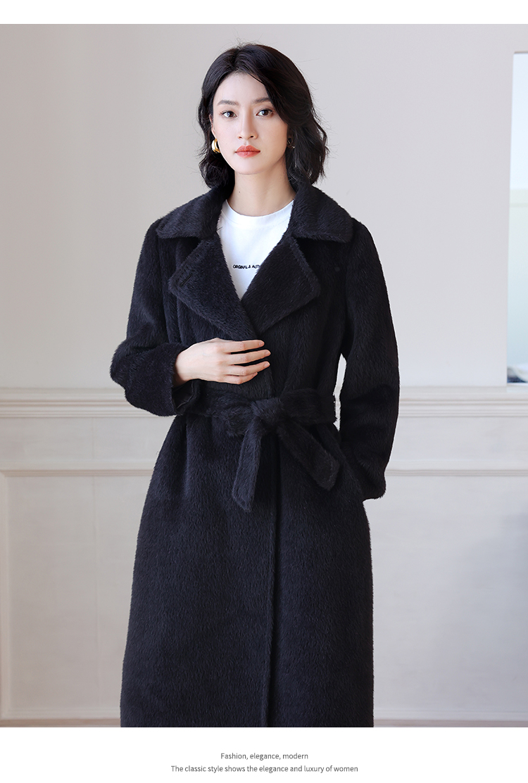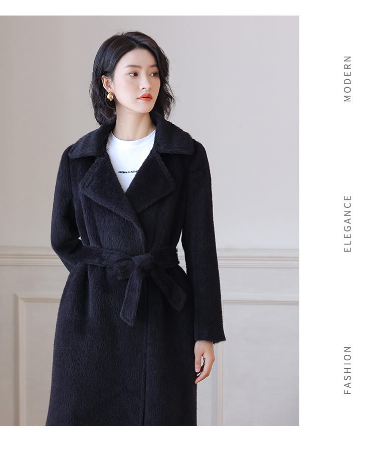 佐尔美秋冬新款 气质优雅羊驼毛长大衣女E24DC23