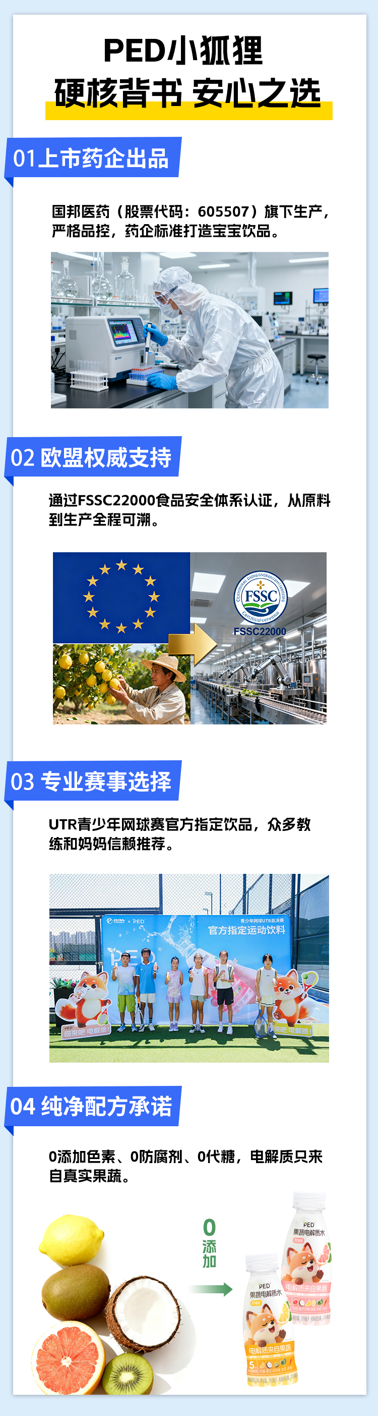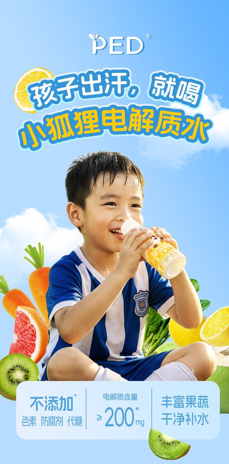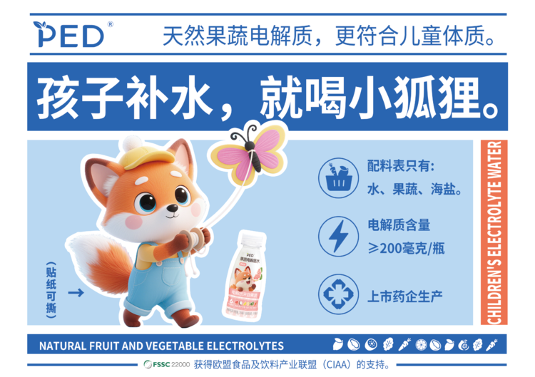 PED小狐狸儿童果蔬电解质水,用天然配方、药企品质和贴心设计,成为家长心中的“放心之选”。