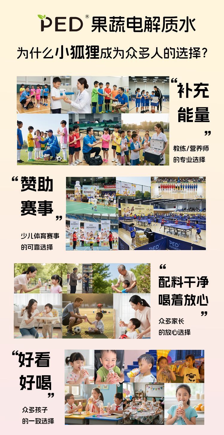 💡 告别“成人功能饮料凑合用”,专注儿童健康补给!PED 小狐狸——让孩子科学补水,活力满满!