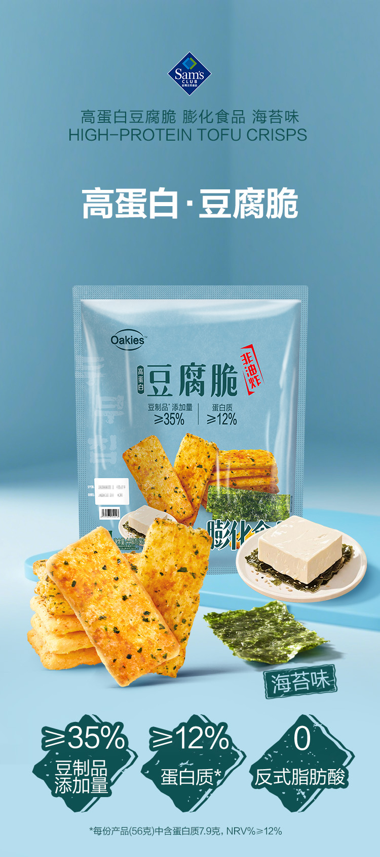 [自提]MOakies高蛋白豆腐脆膨化食品海苔味448g