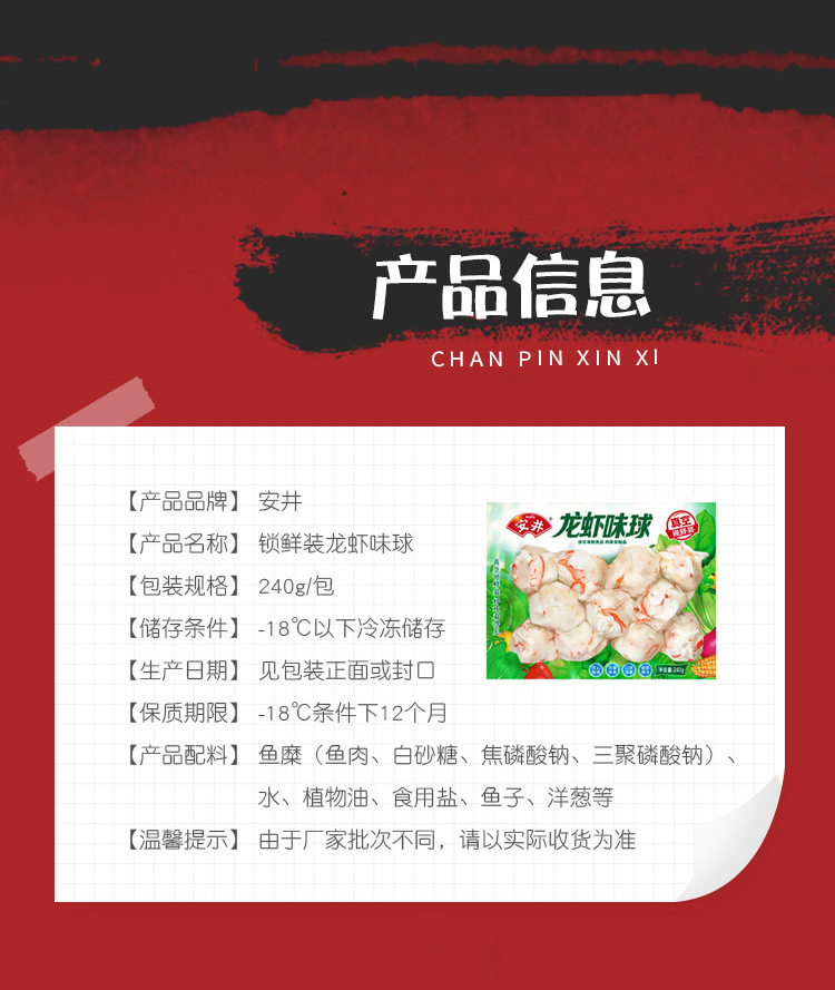 安井锁鲜装龙虾味球240g/袋