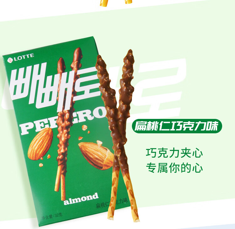 乐天派扁桃仁巧克力夹心棒32g/盒
