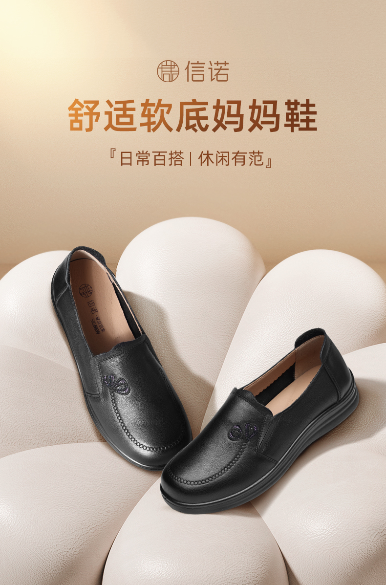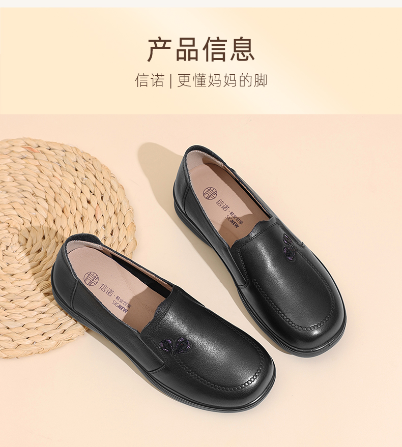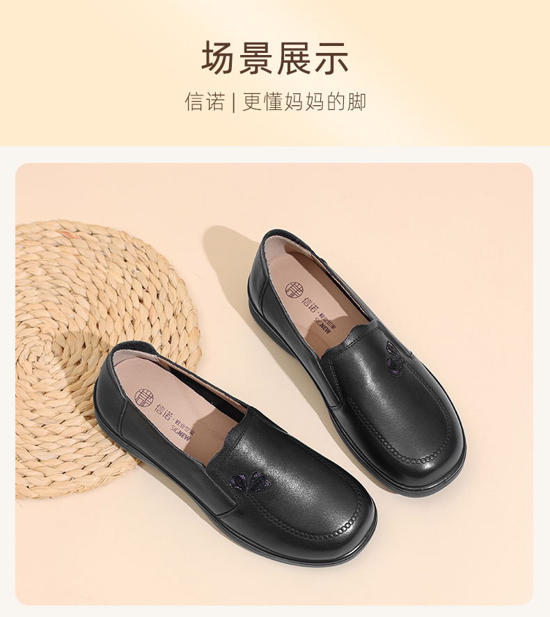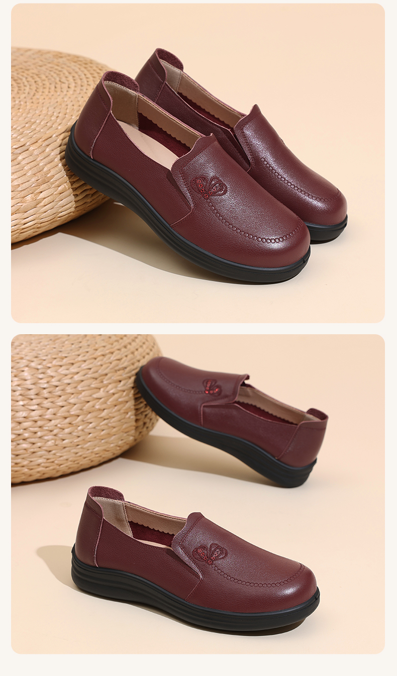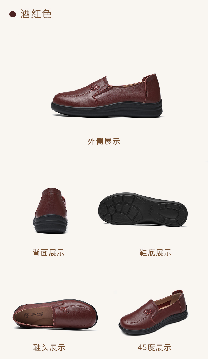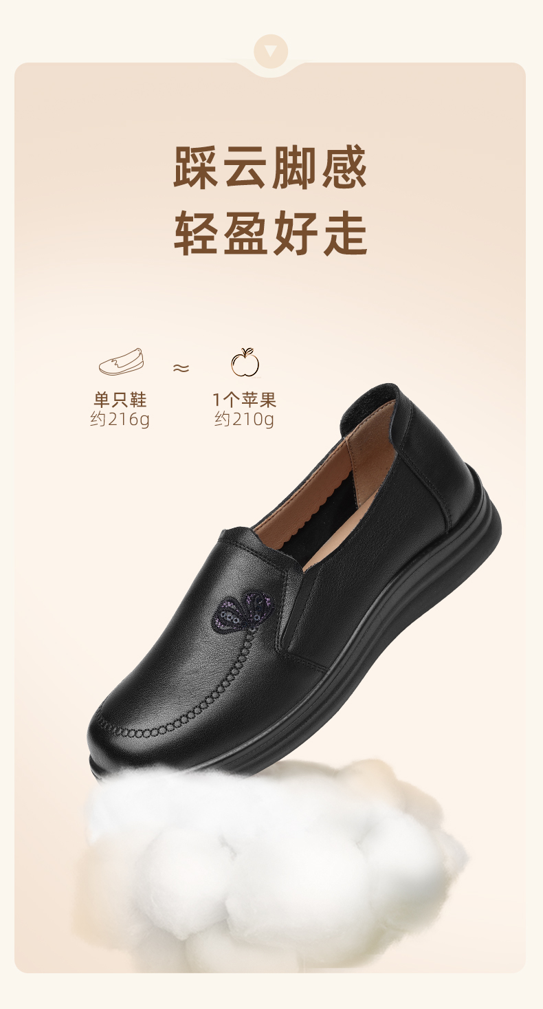 真皮妈妈鞋中老年舒适软底奶奶鞋一脚蹬休闲皮鞋2025新款秋季5Q8177-30