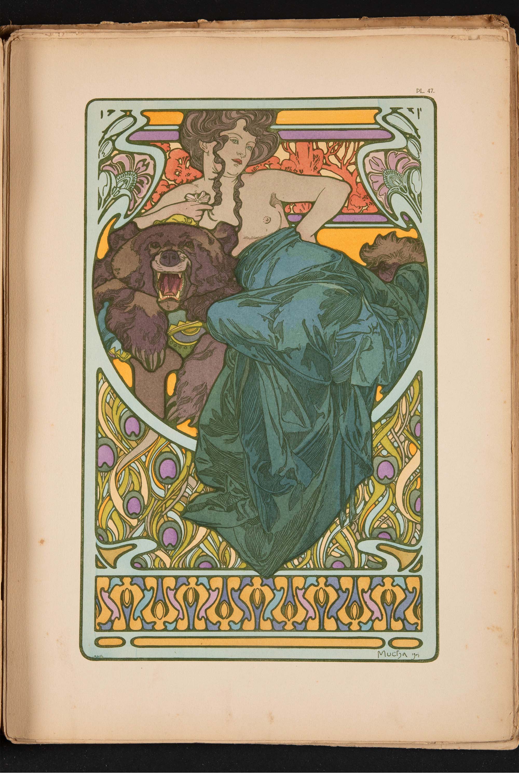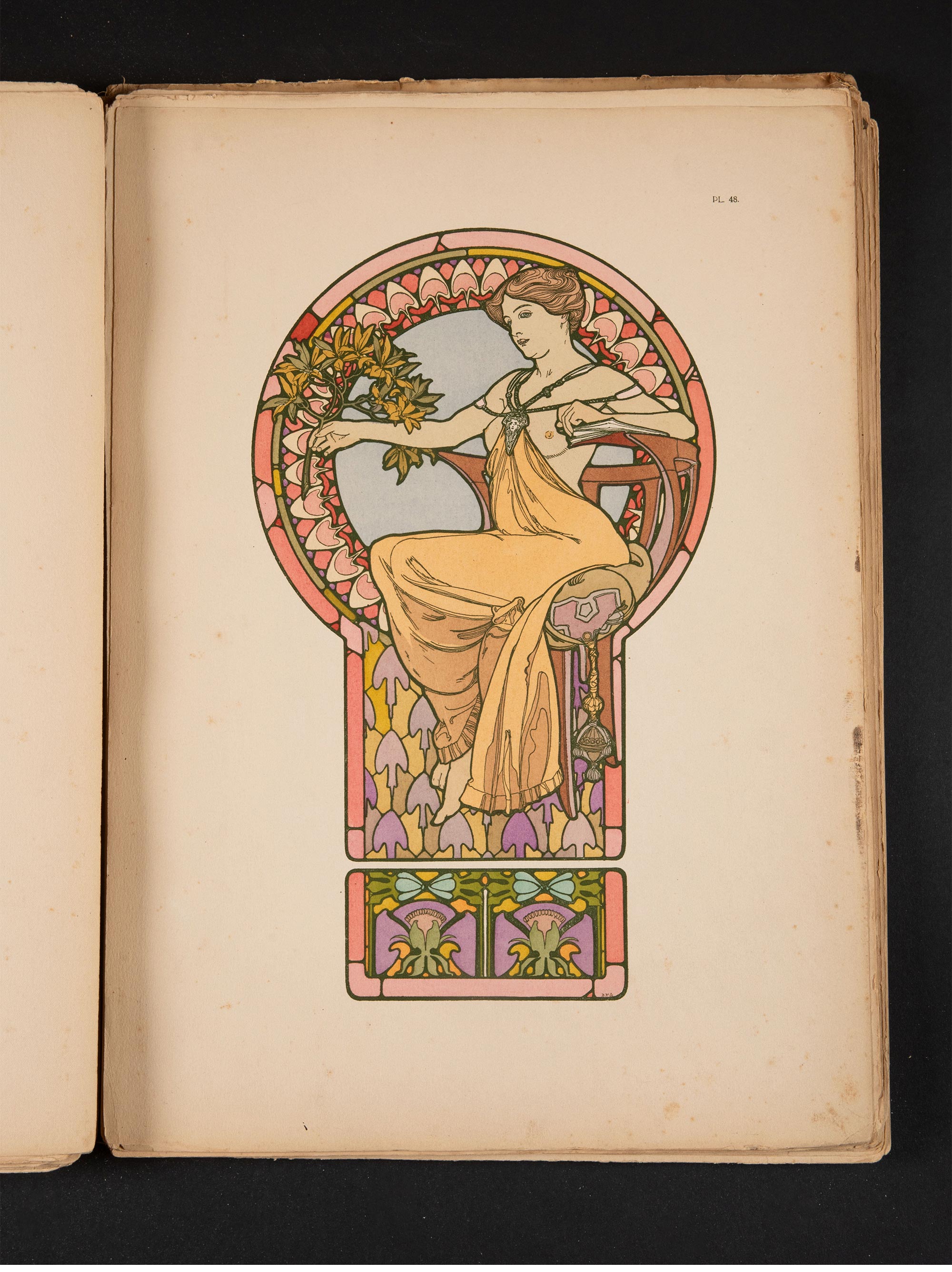1902年法国巴黎中心美术书局出版新艺术大师穆夏创作原版彩色版画图集《装饰文档 Documents décoratifs》