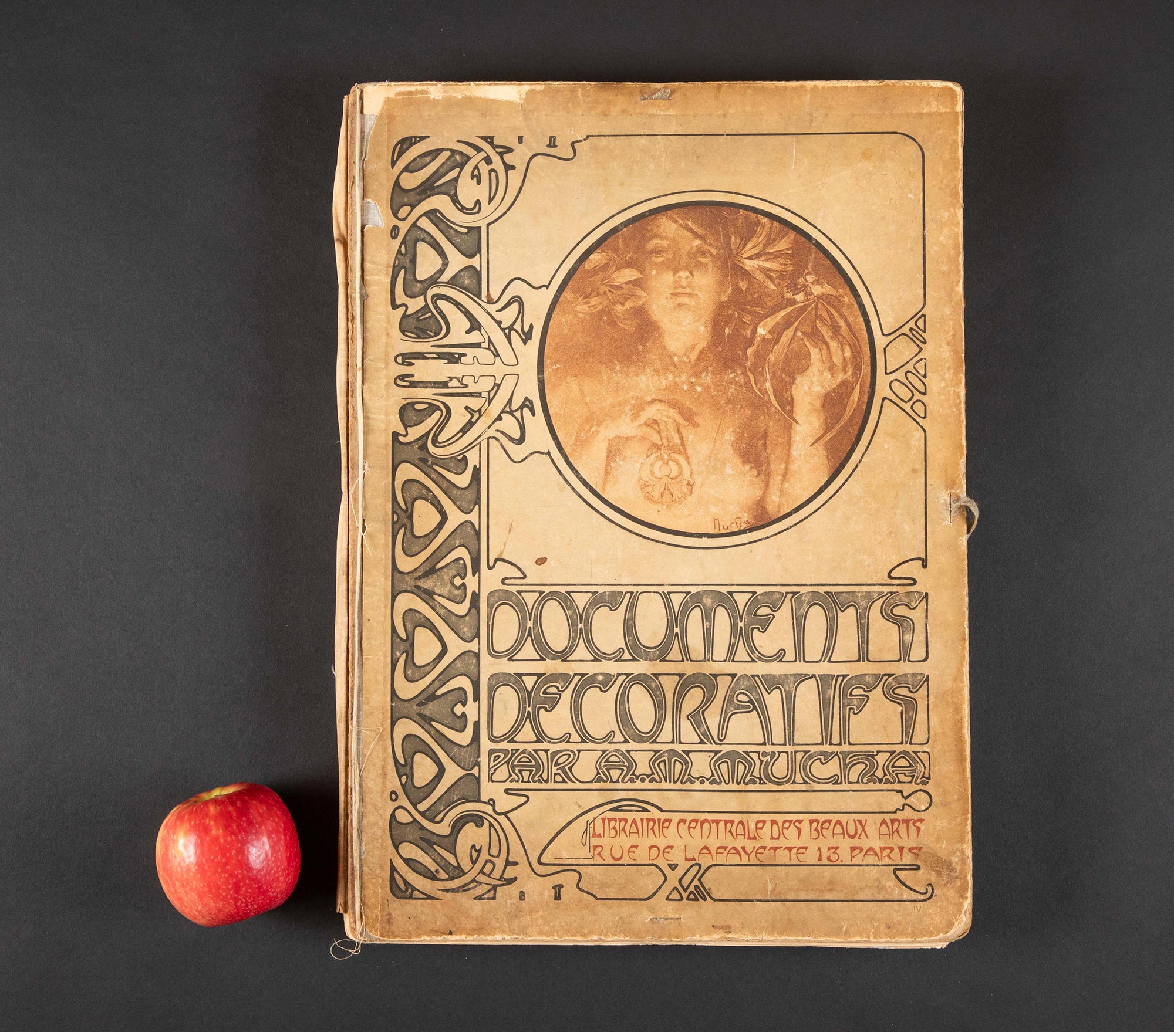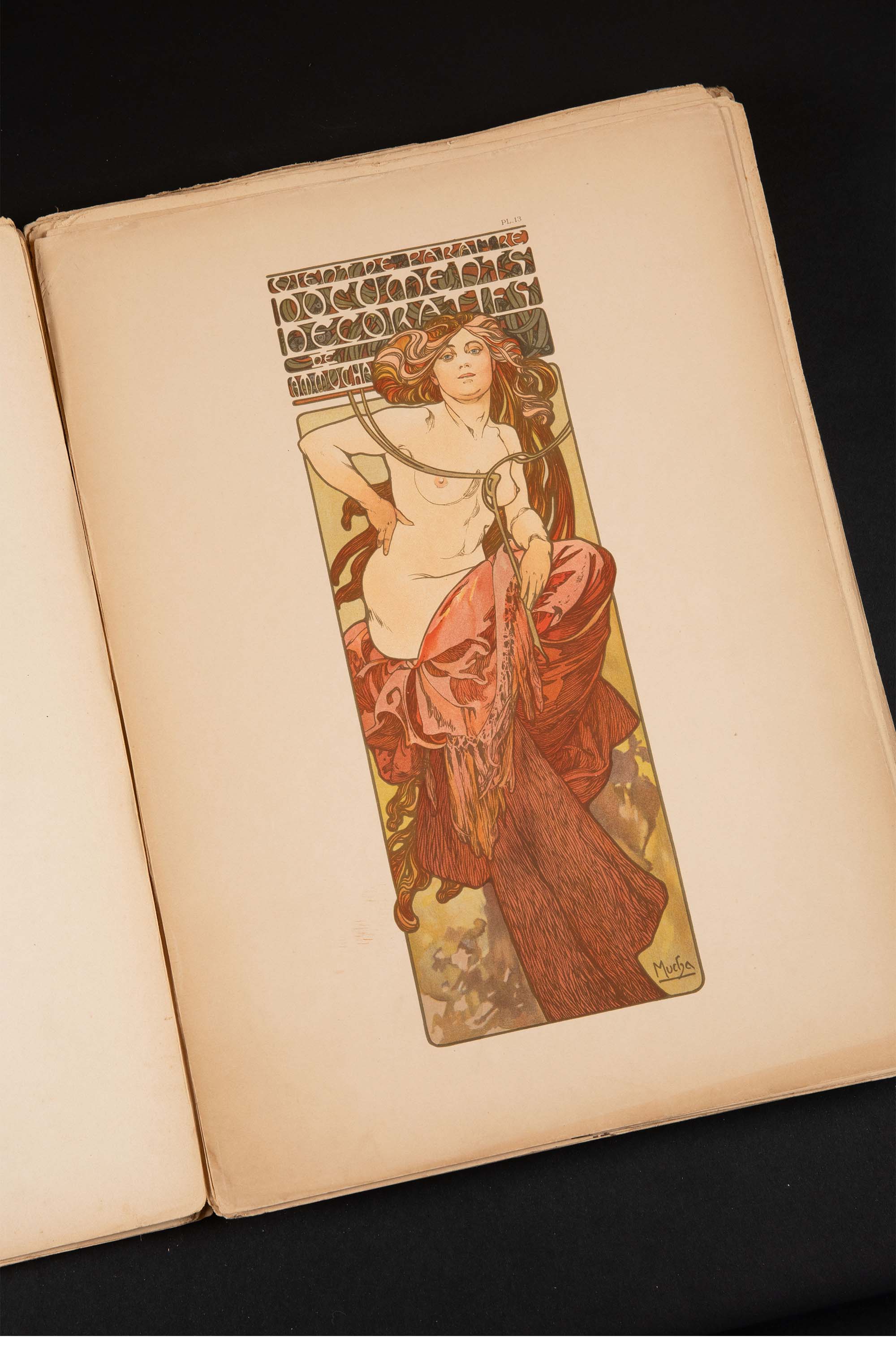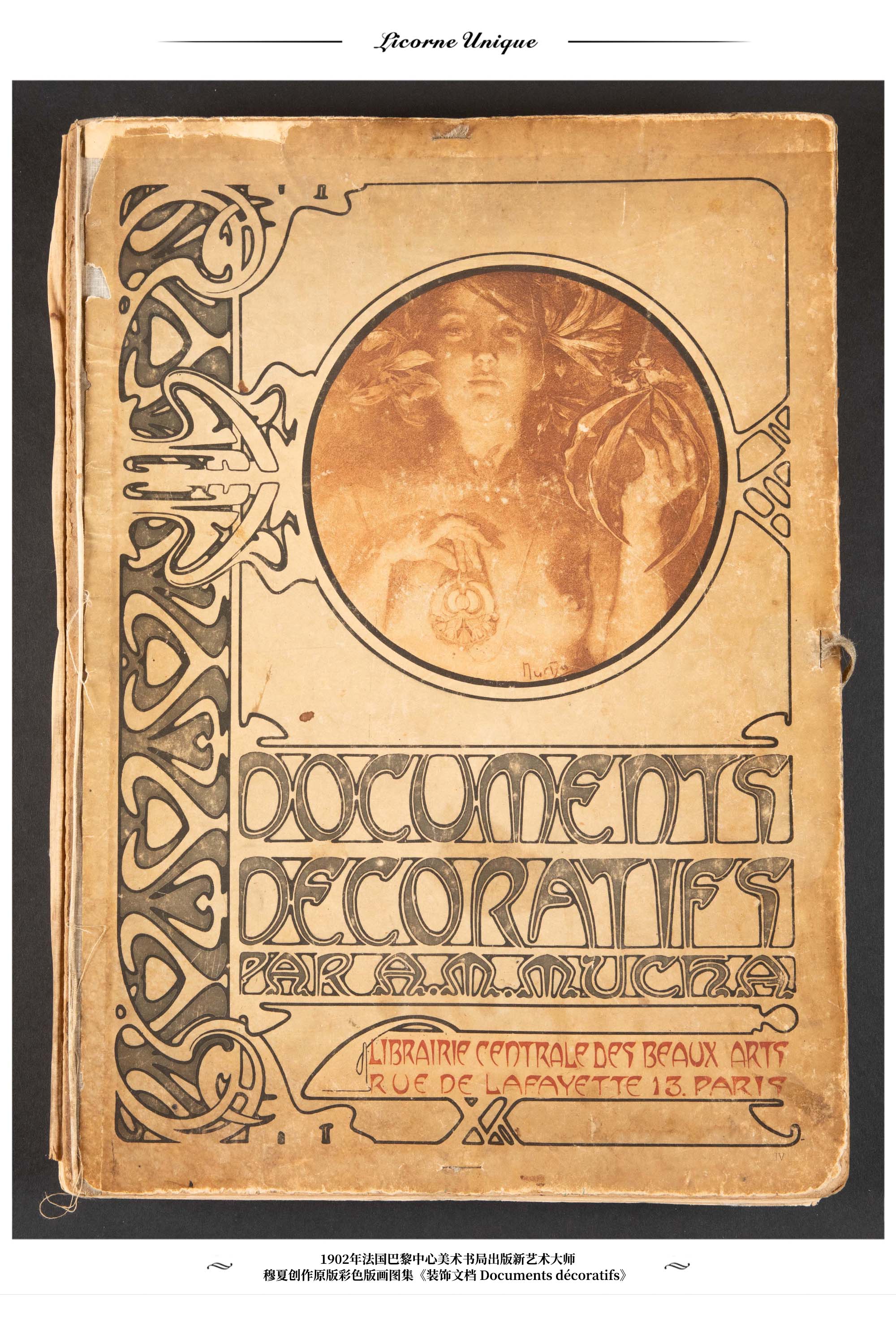 独角鹿西洋古董 1902年法国巴黎中心美术书局出版新艺术大师穆夏创作原版彩色版画图集《装饰文档 Documents décoratifs》