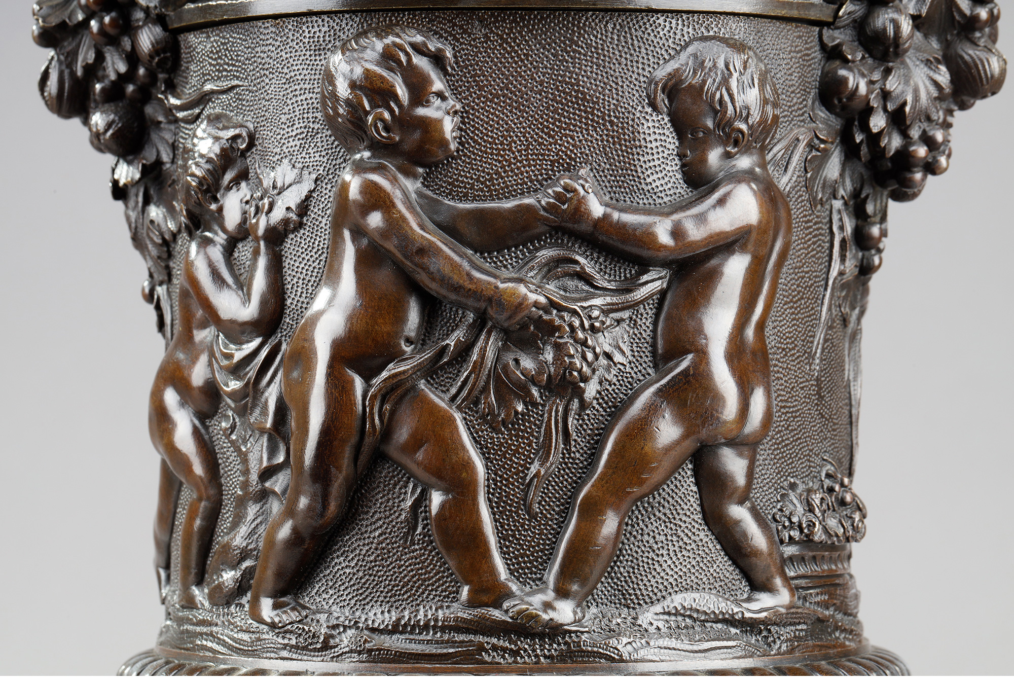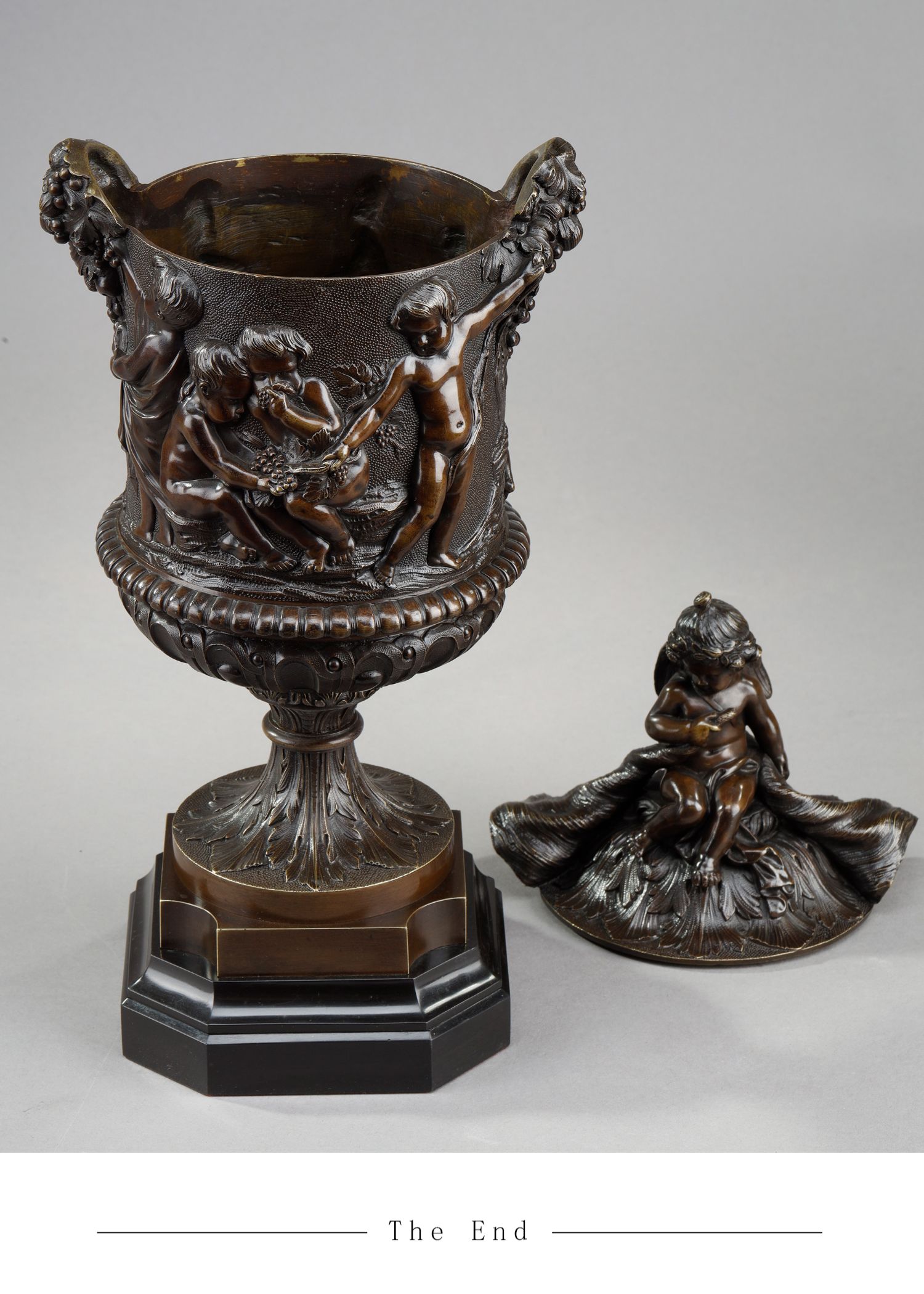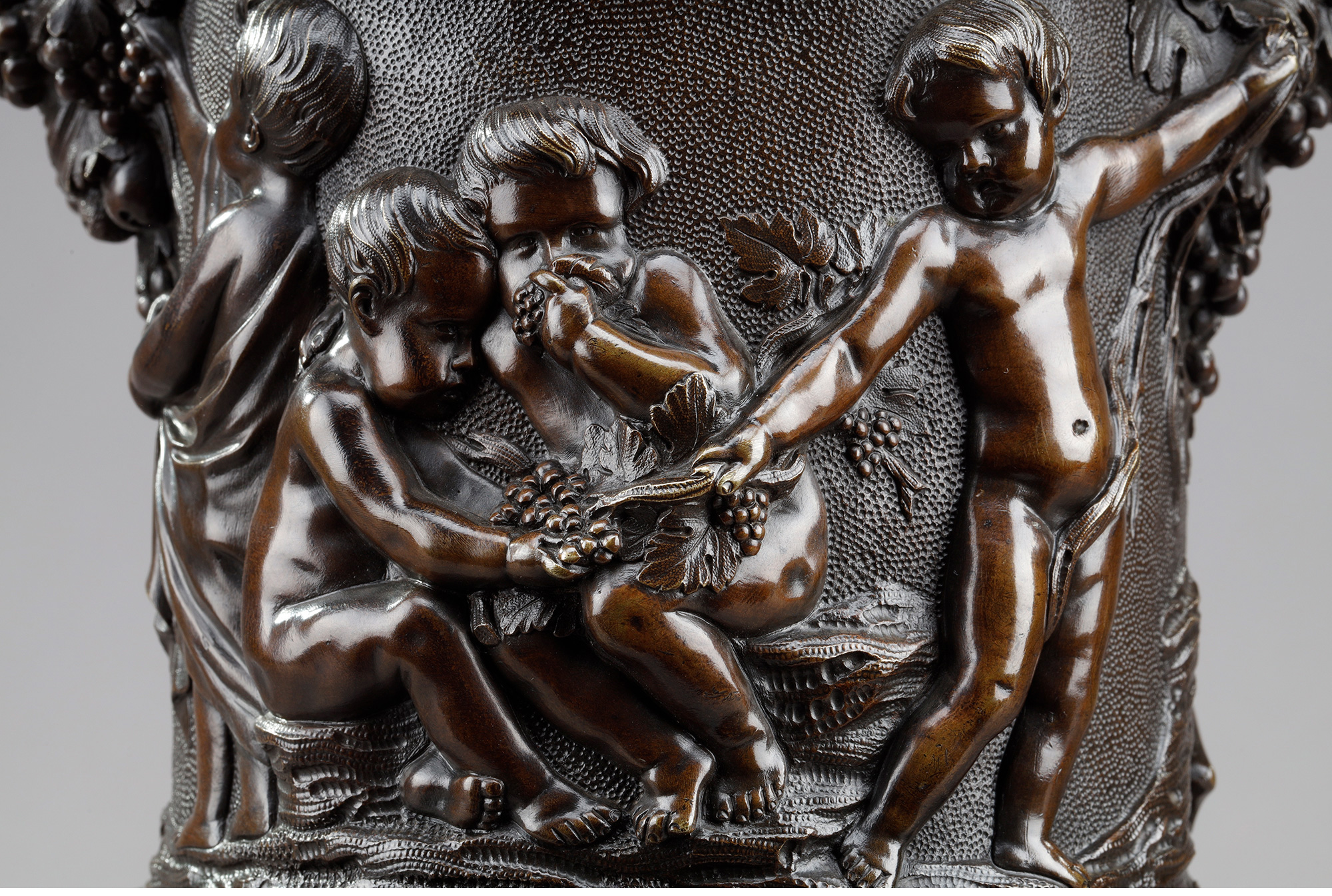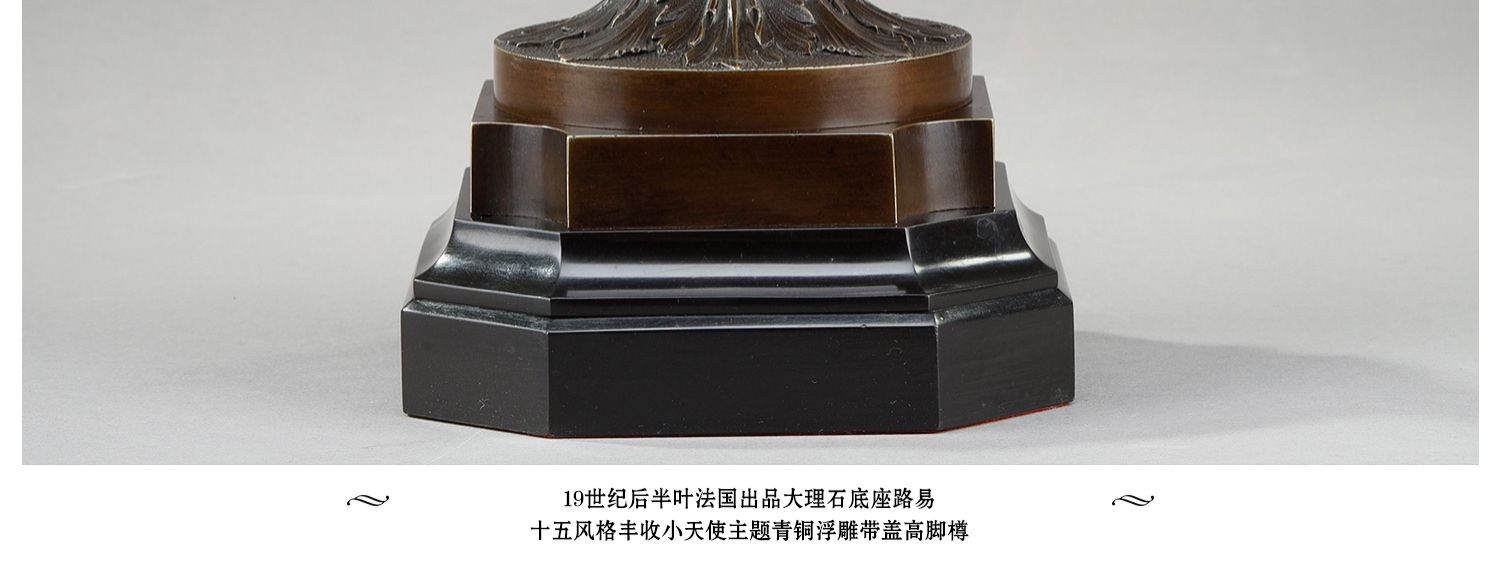 独角鹿西洋古董法国大理石路易十五风丰收小天使青铜浮雕高脚樽