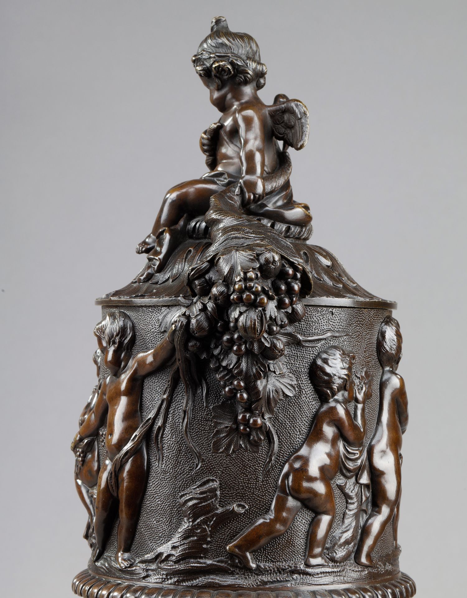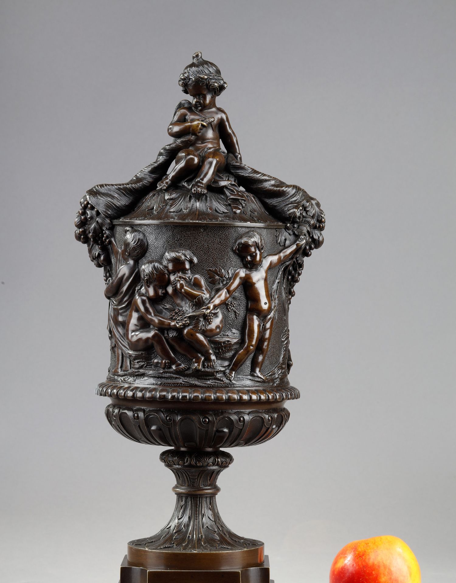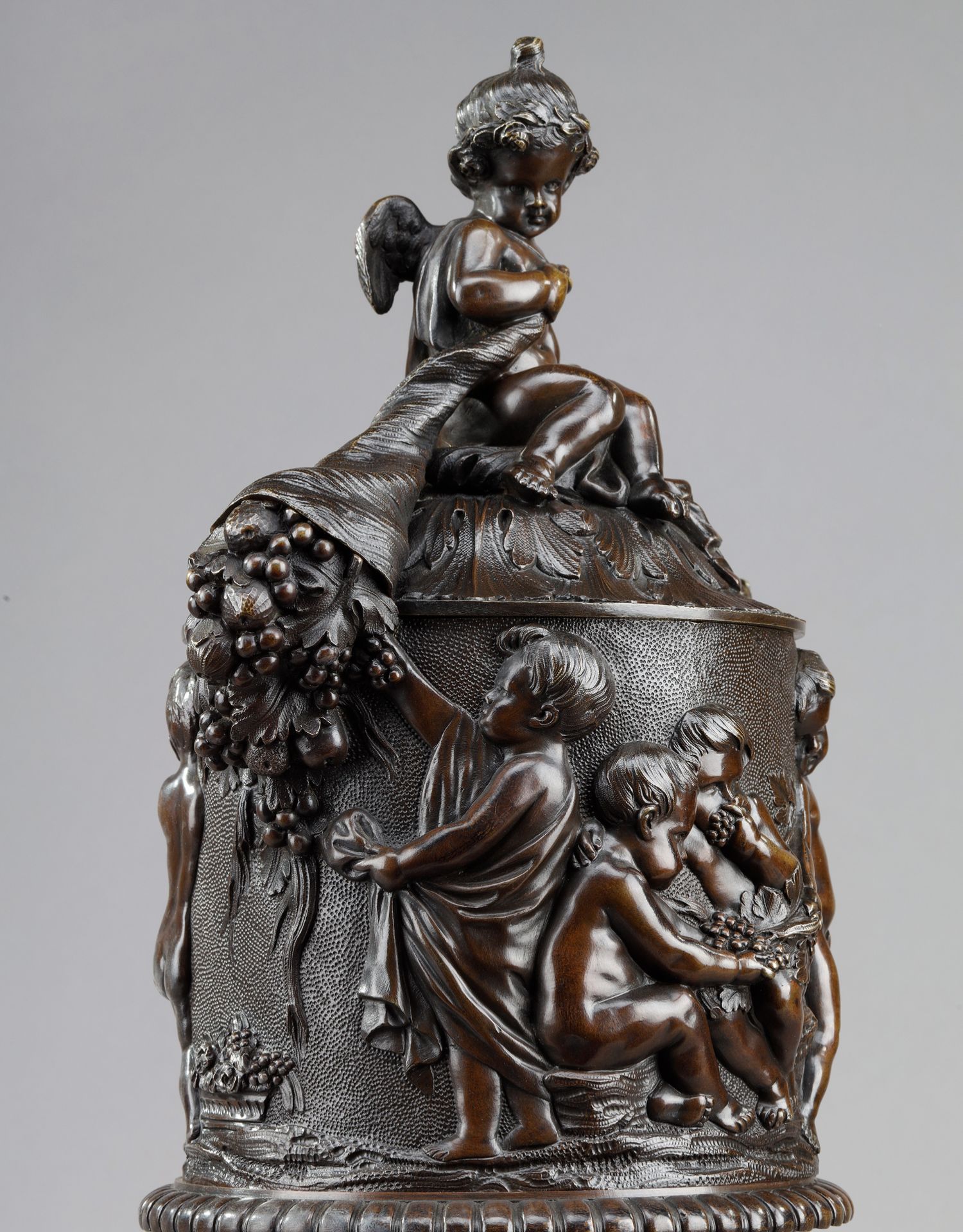 独角鹿西洋古董法国大理石路易十五风丰收小天使青铜浮雕高脚樽