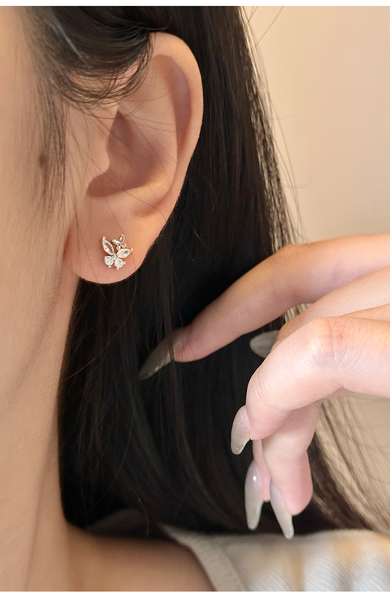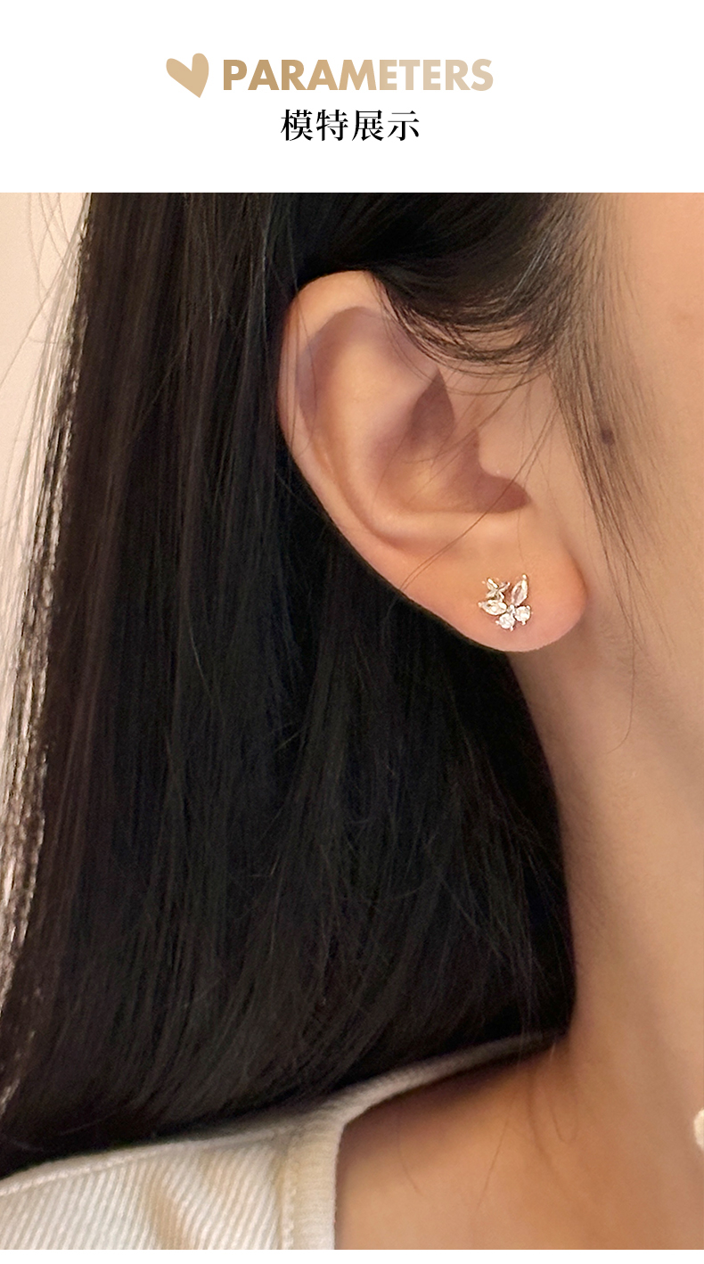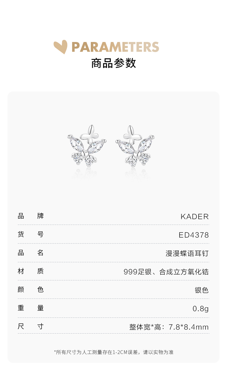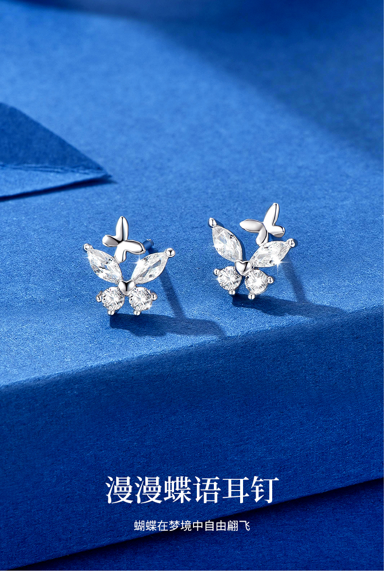 卡蒂罗/KADER 漫漫蝶语耳钉 轻奢时尚满镶锆石蝴蝶造型设计耳饰 闪闪蝶舞灵动精致原创配饰养耳洞 999足银 送礼物