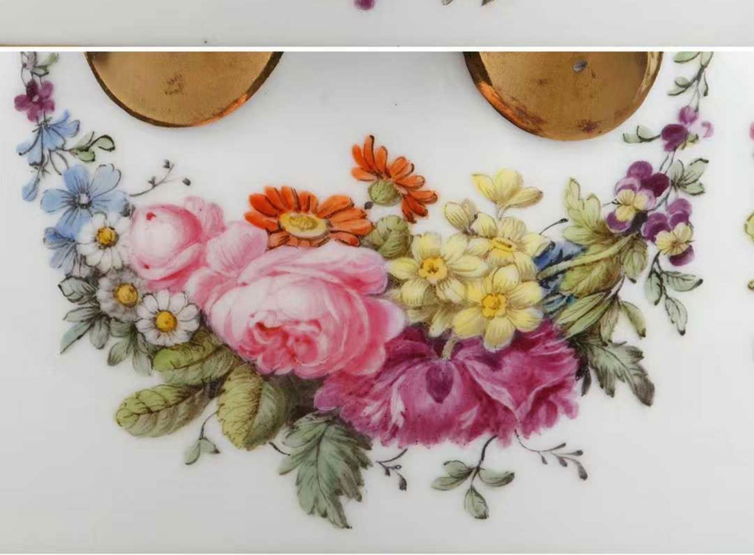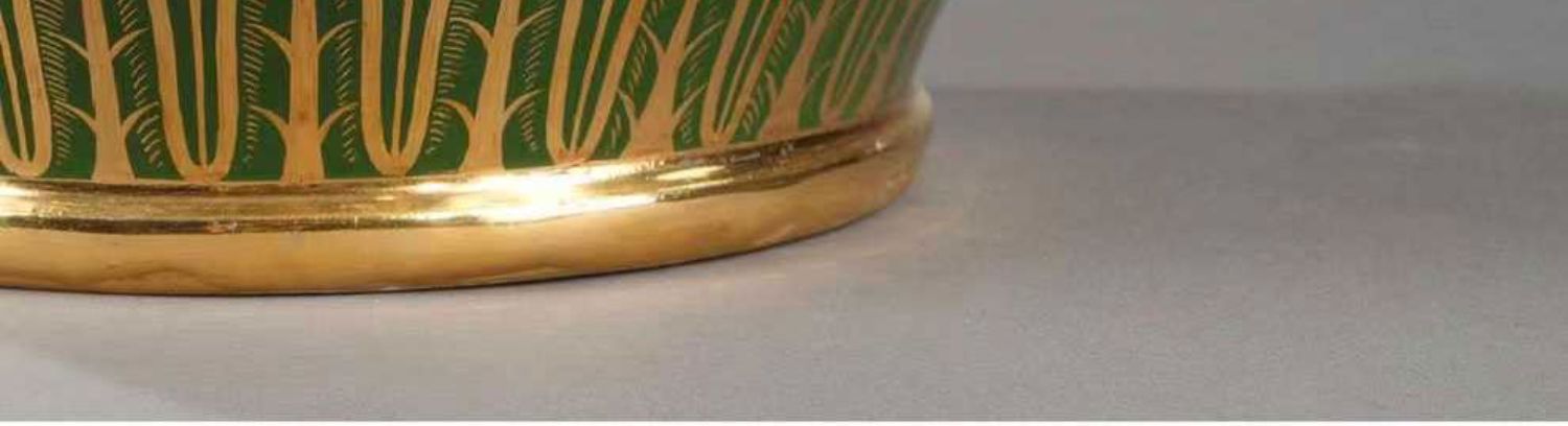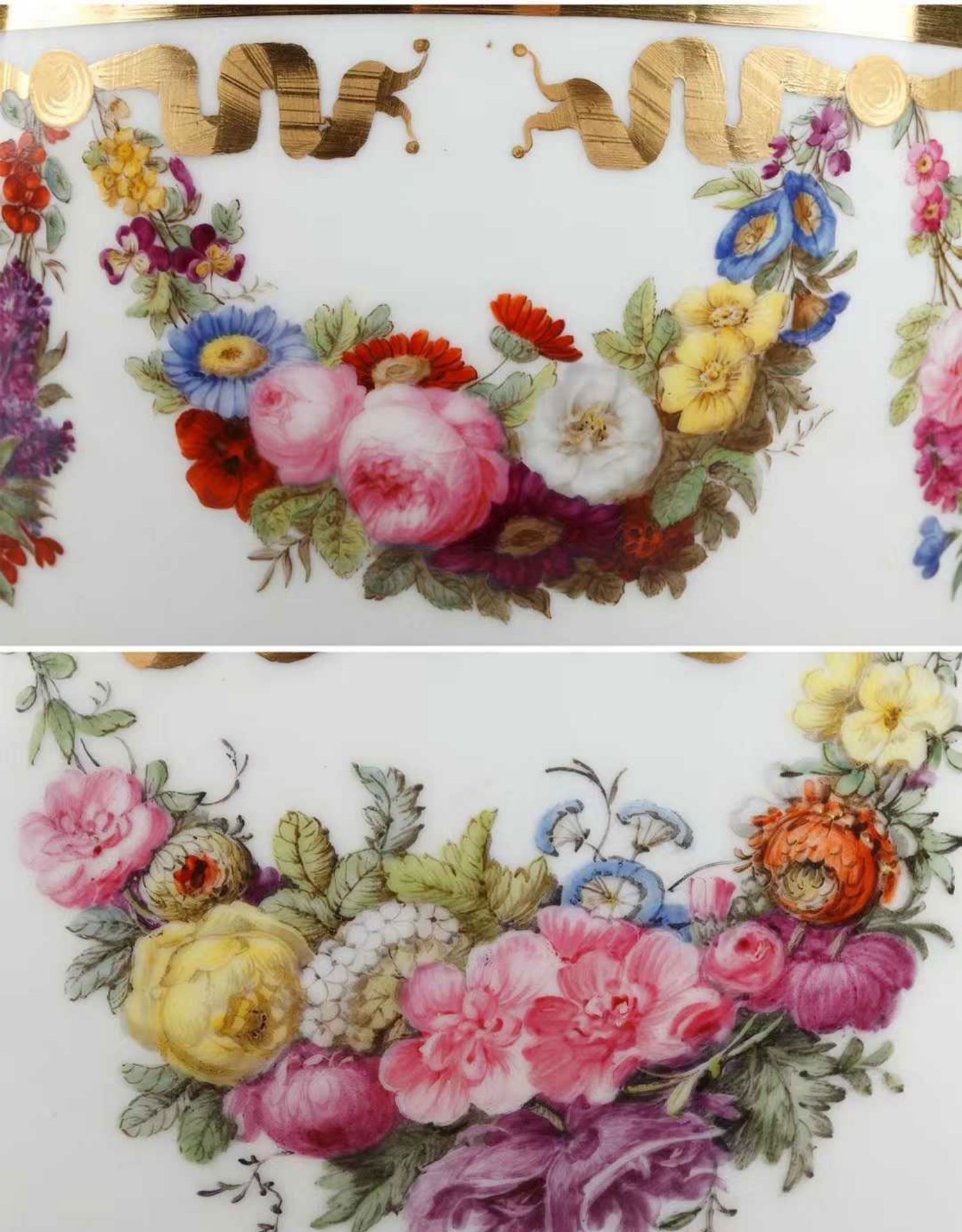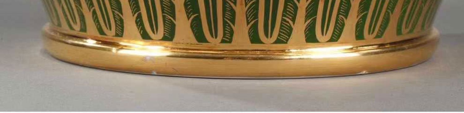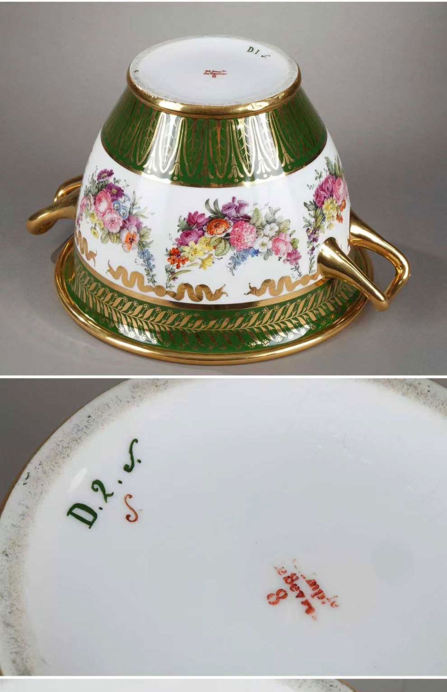 独角鹿西洋古董赛弗尔瓷器冰桶一对花卉绿釉描金伊特鲁里亚风格