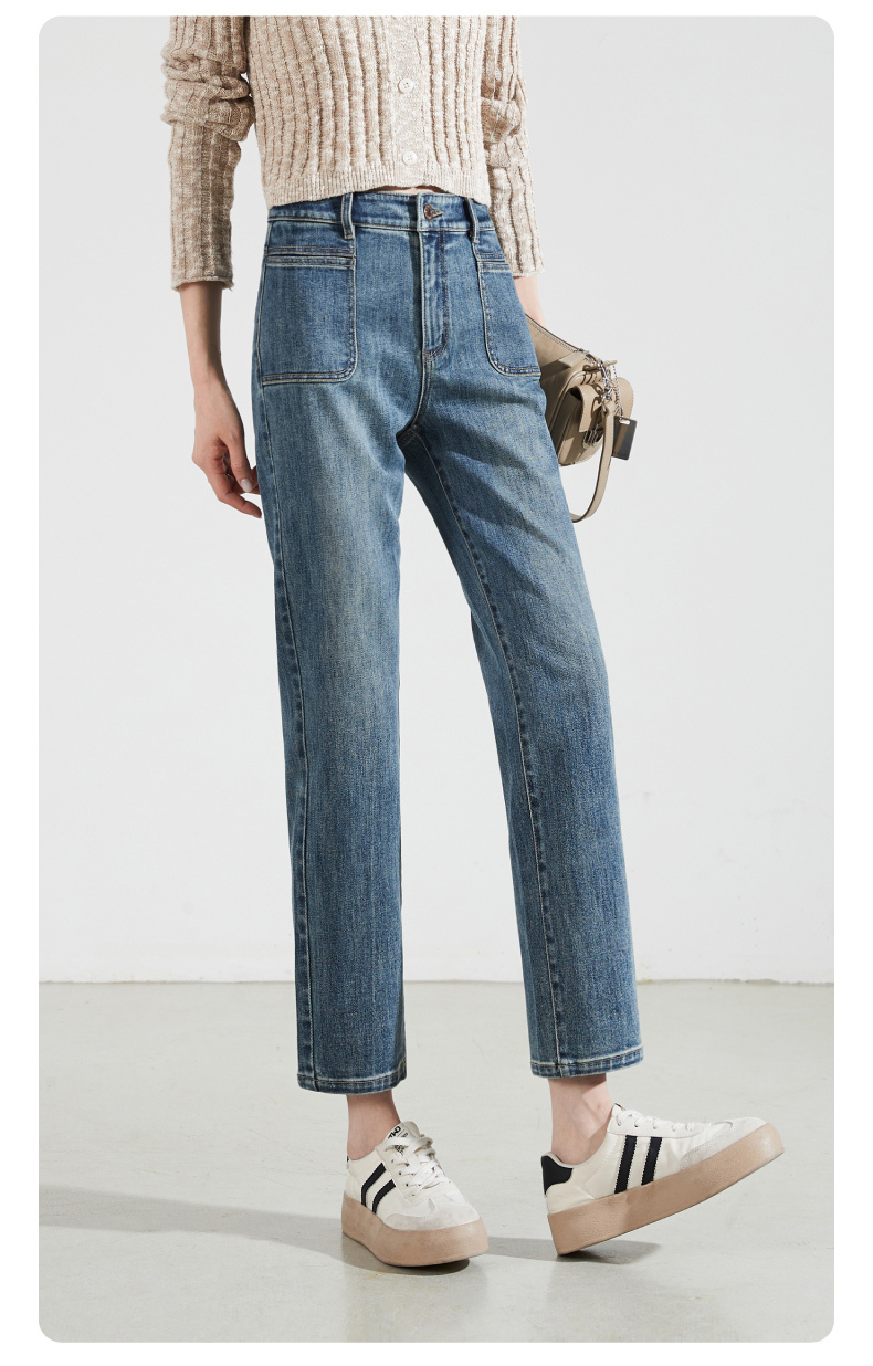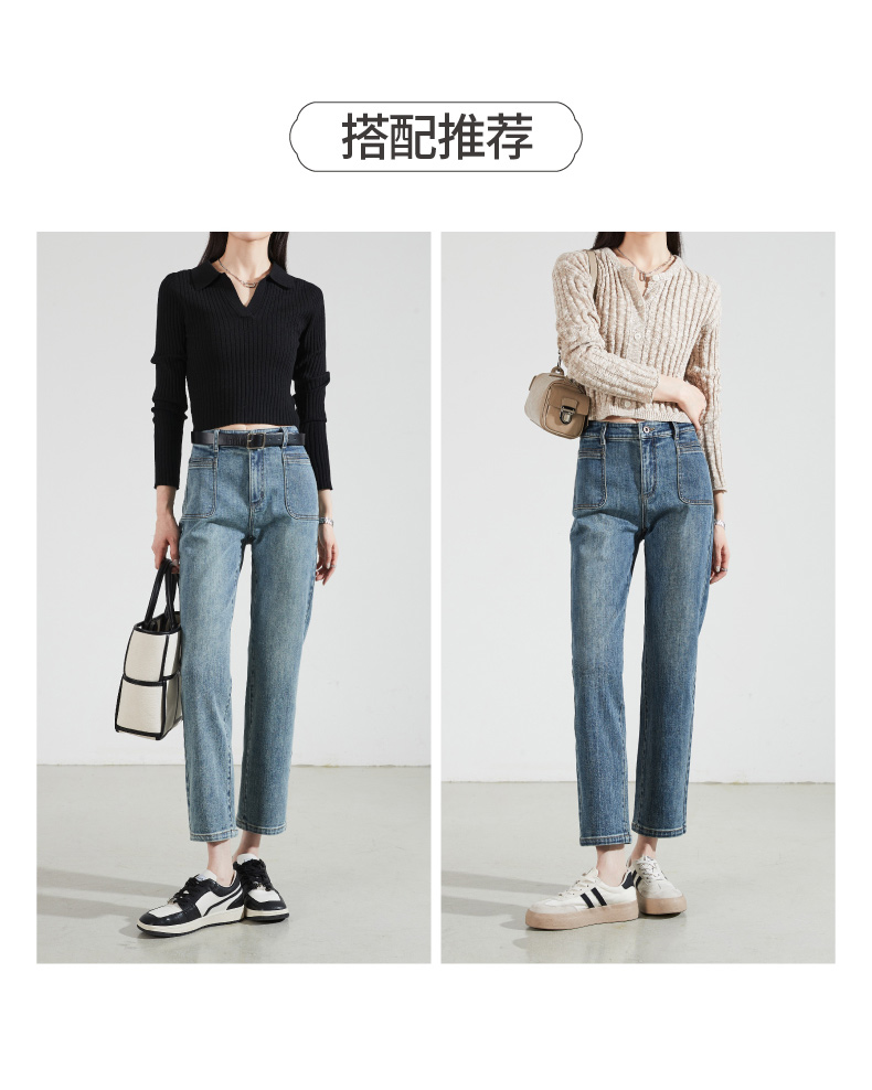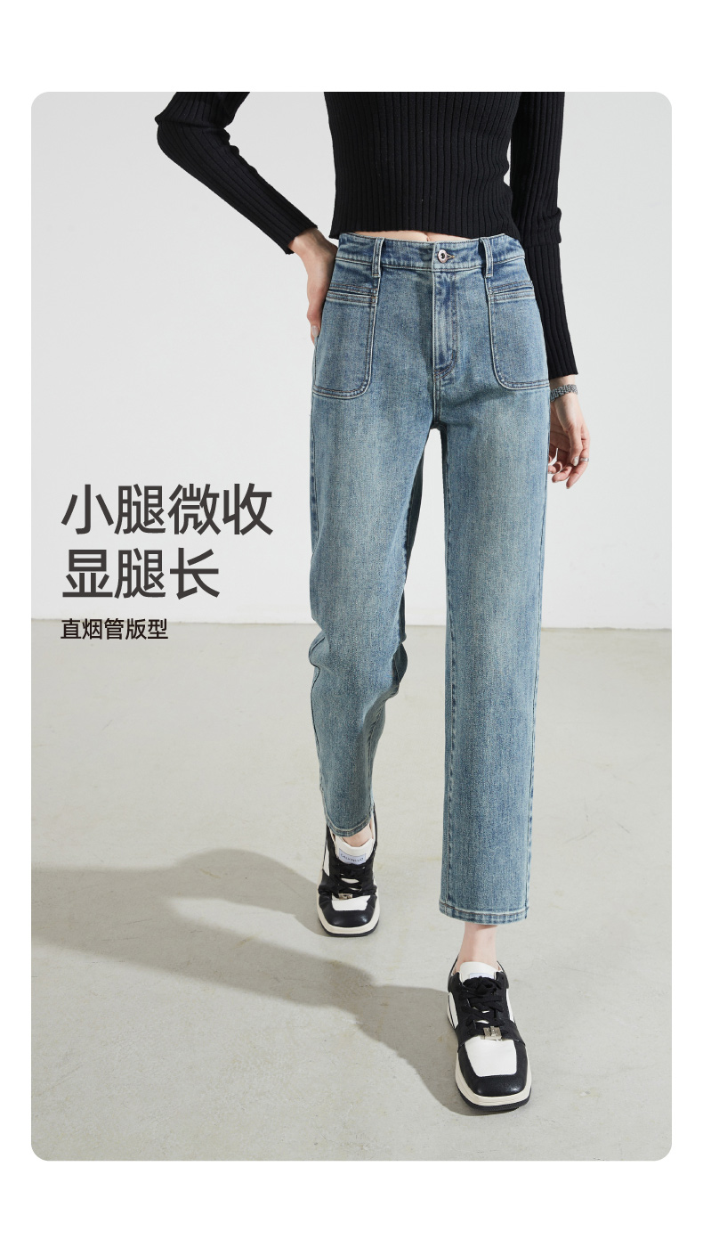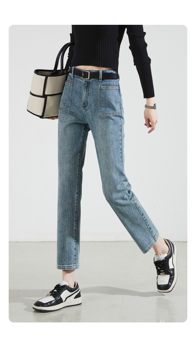 【降价!九分小直筒】逸阳大口袋复古显瘦弹力烟管牛仔裤子0873