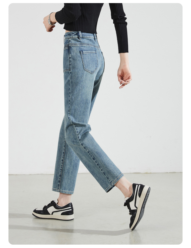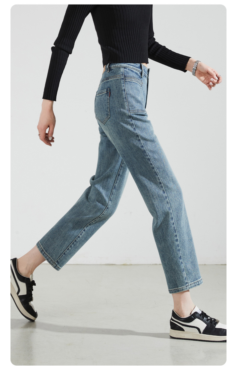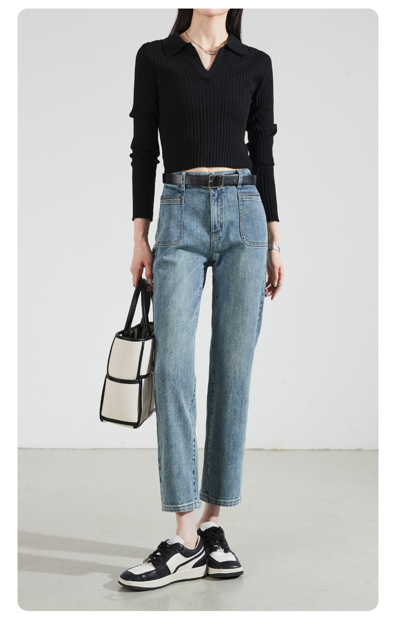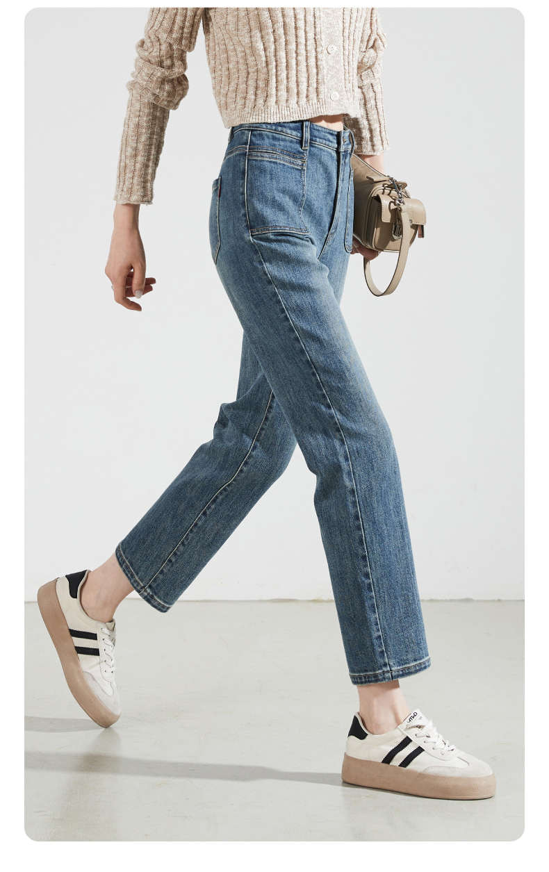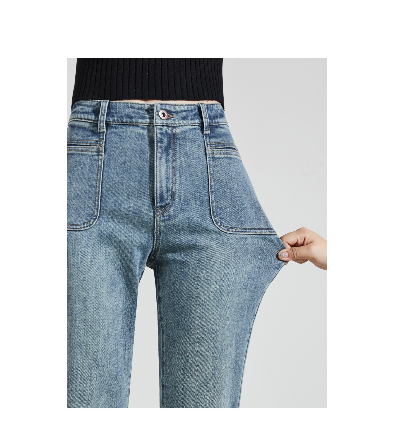 【降价!九分小直筒】逸阳大口袋复古显瘦弹力烟管牛仔裤子0873