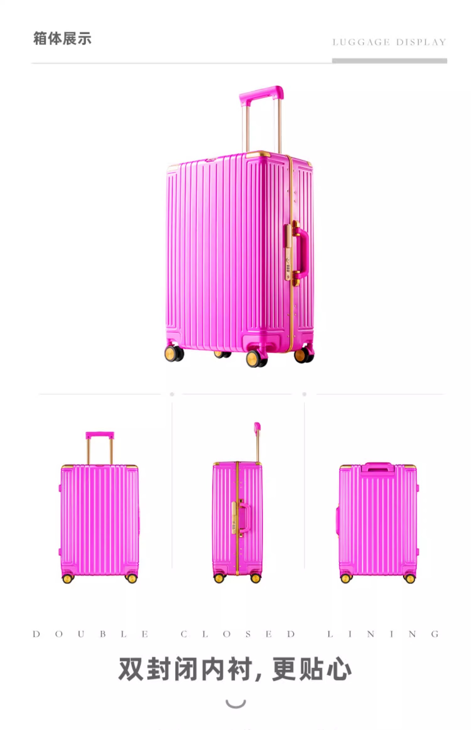 城市胶囊-窄边精致铝框系列行李箱-9890K-芭比粉