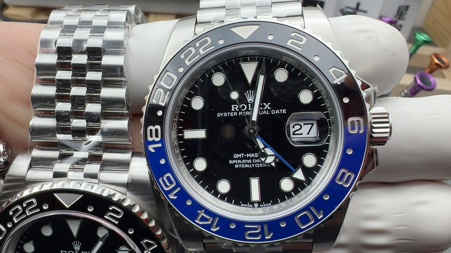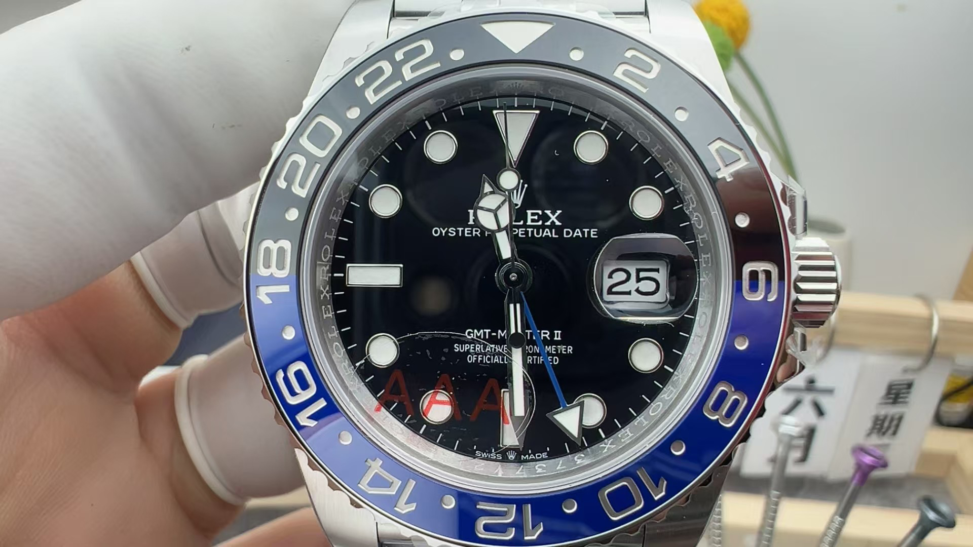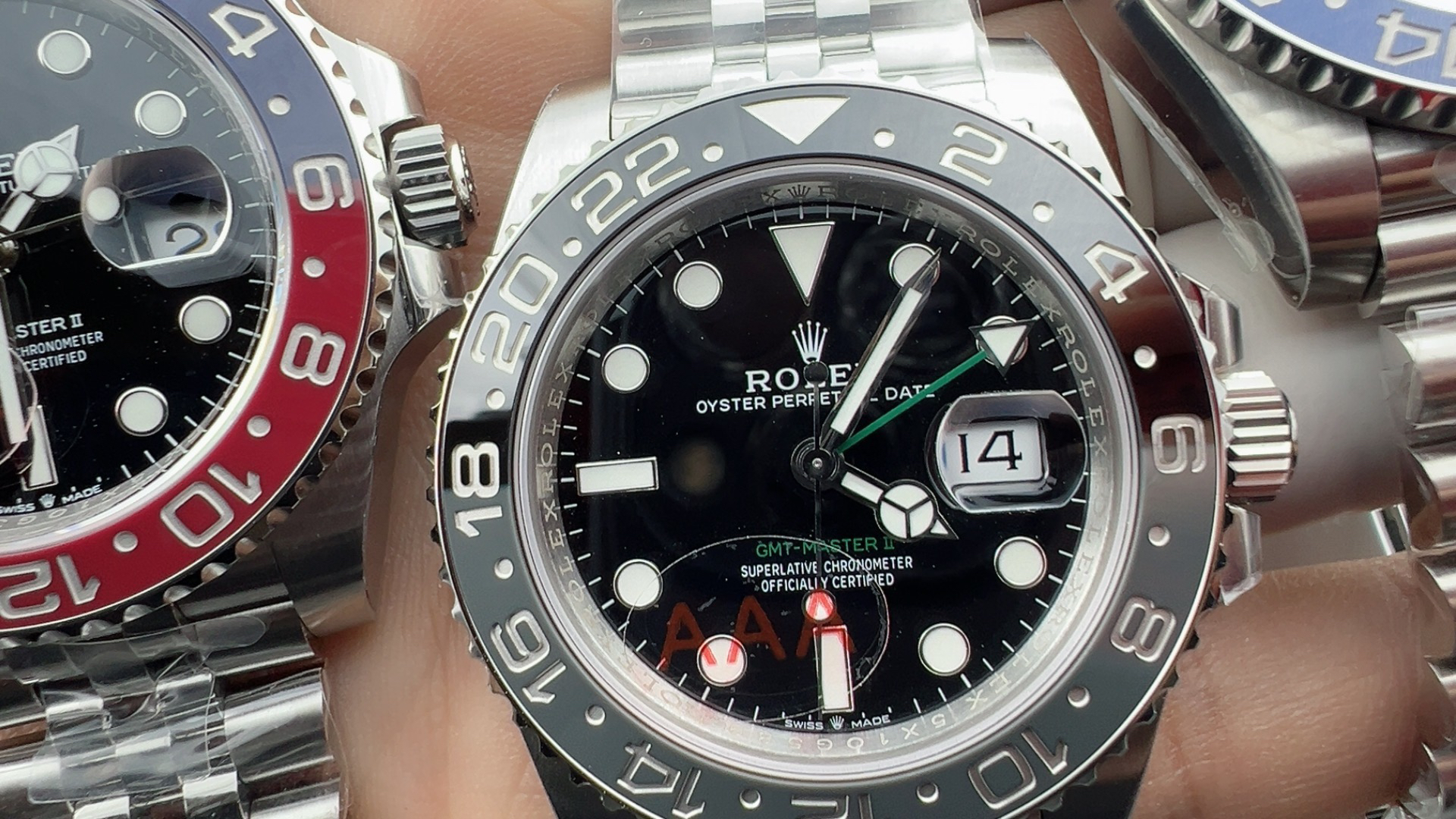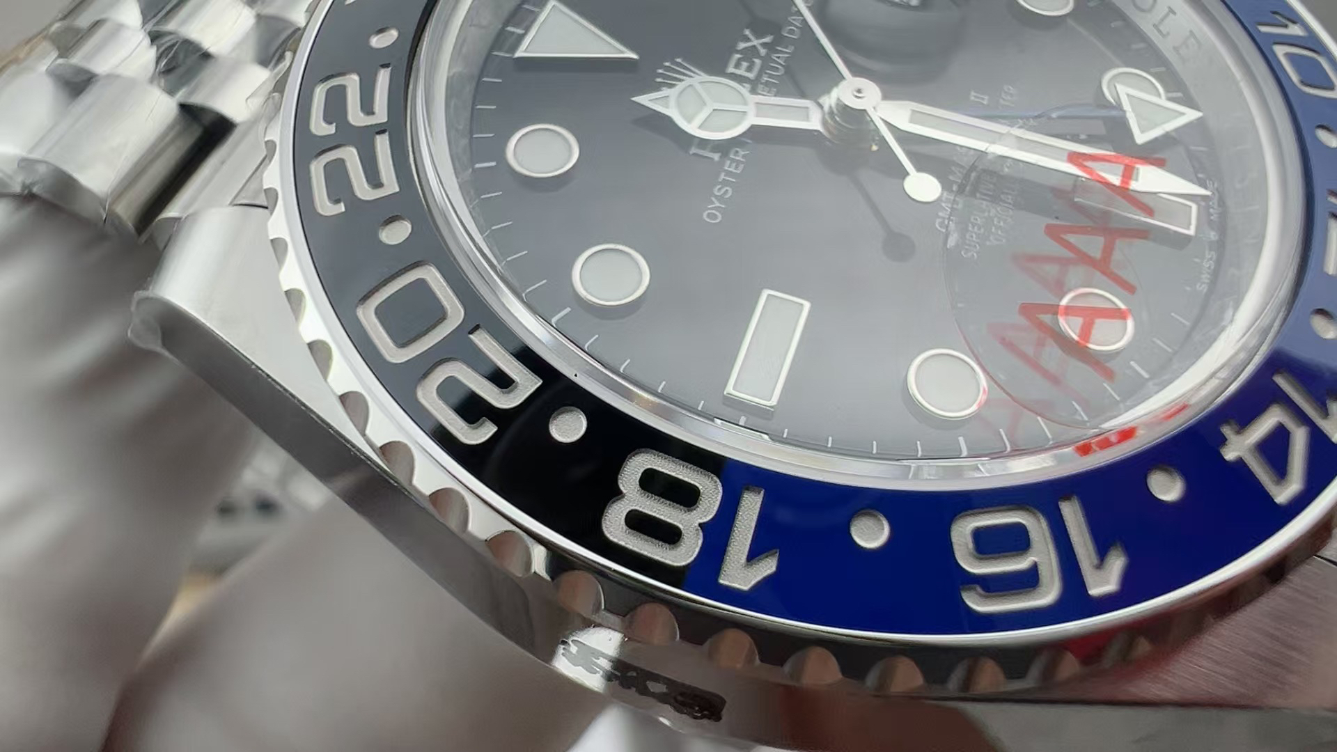 The pointed end of the minute hand is sharp and precise, while the second hand is flat and sharp. Each pointer has been carefully polished to maintain a high degree of consistency with the original version, bidding farewell to the rough, dull and dull defects of the hands in the market version. What is particularly eye-catching is that the GMT pointer adopts the original bright red tone, with a bright and eye-catching color, which is not comparable to the dull deep red on the market.