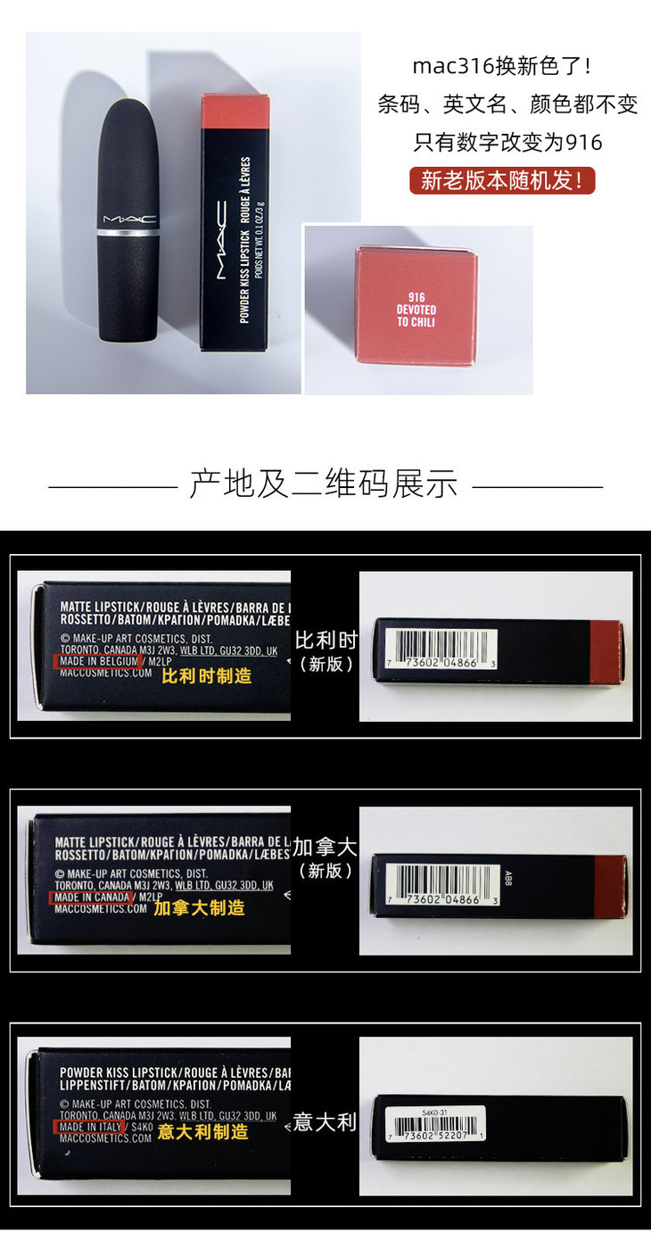 注意:黑管916泫雅色(原316)除了外包装和字号有改变,名字膏体都是一样的 ;两款外盒包装随机发货哈