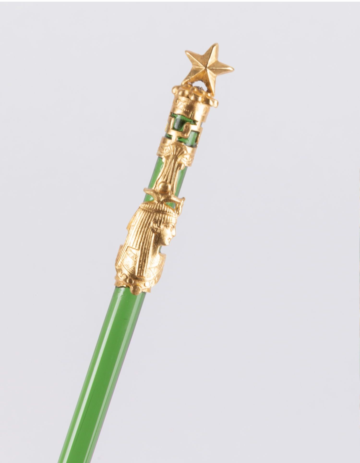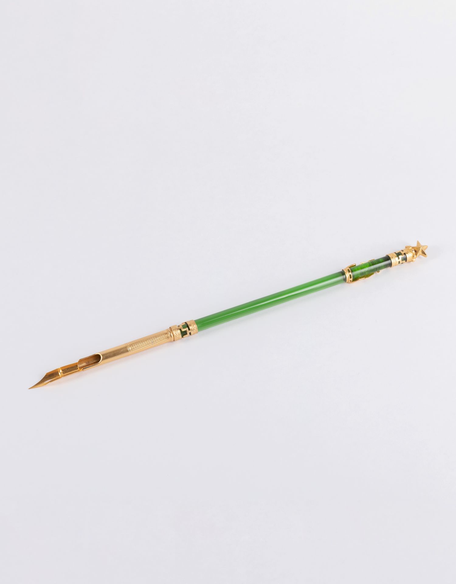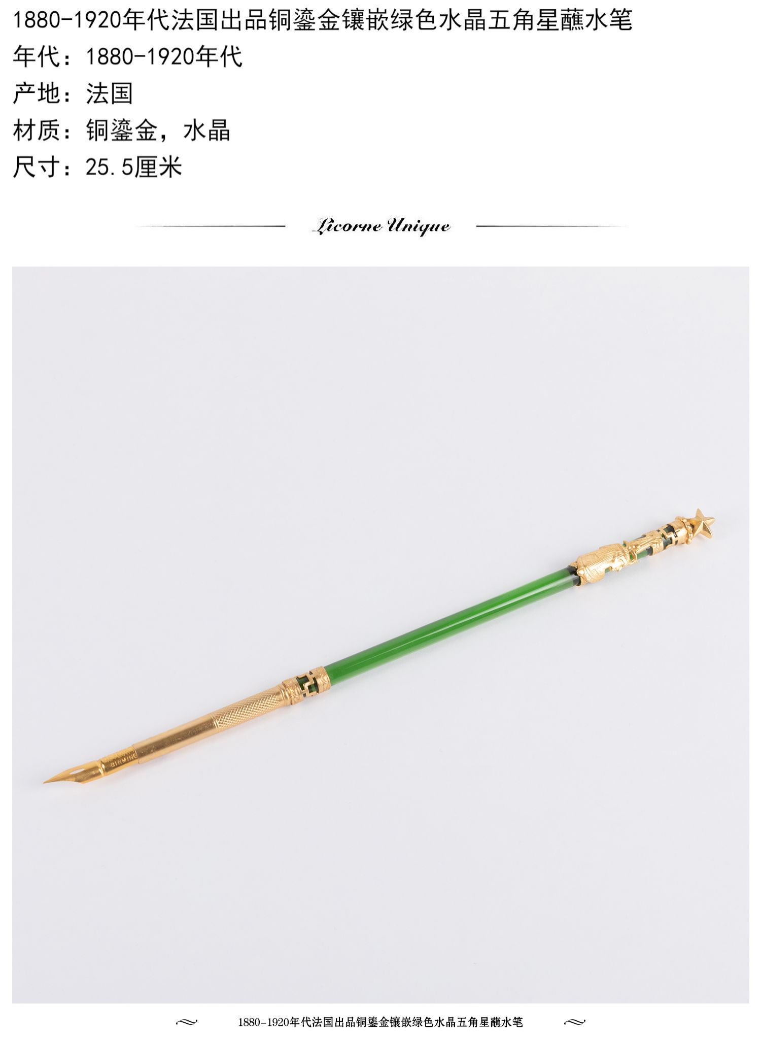 独角鹿西洋古董法国出品铜鎏金镶嵌绿色水晶五角星蘸水笔