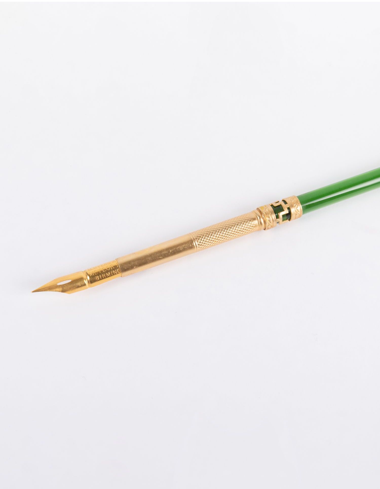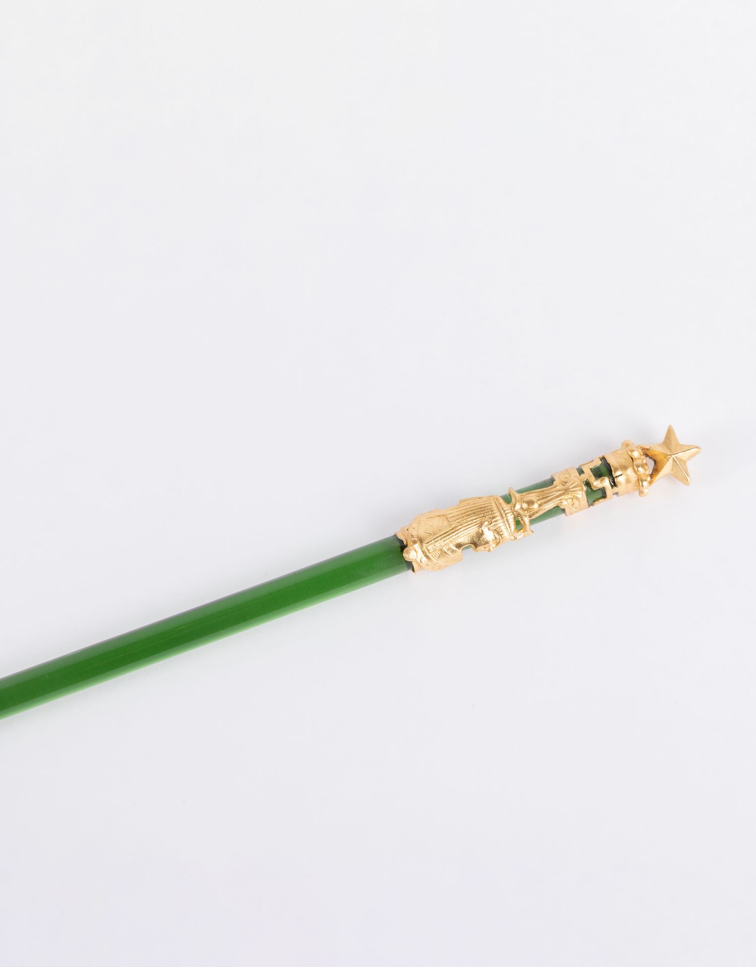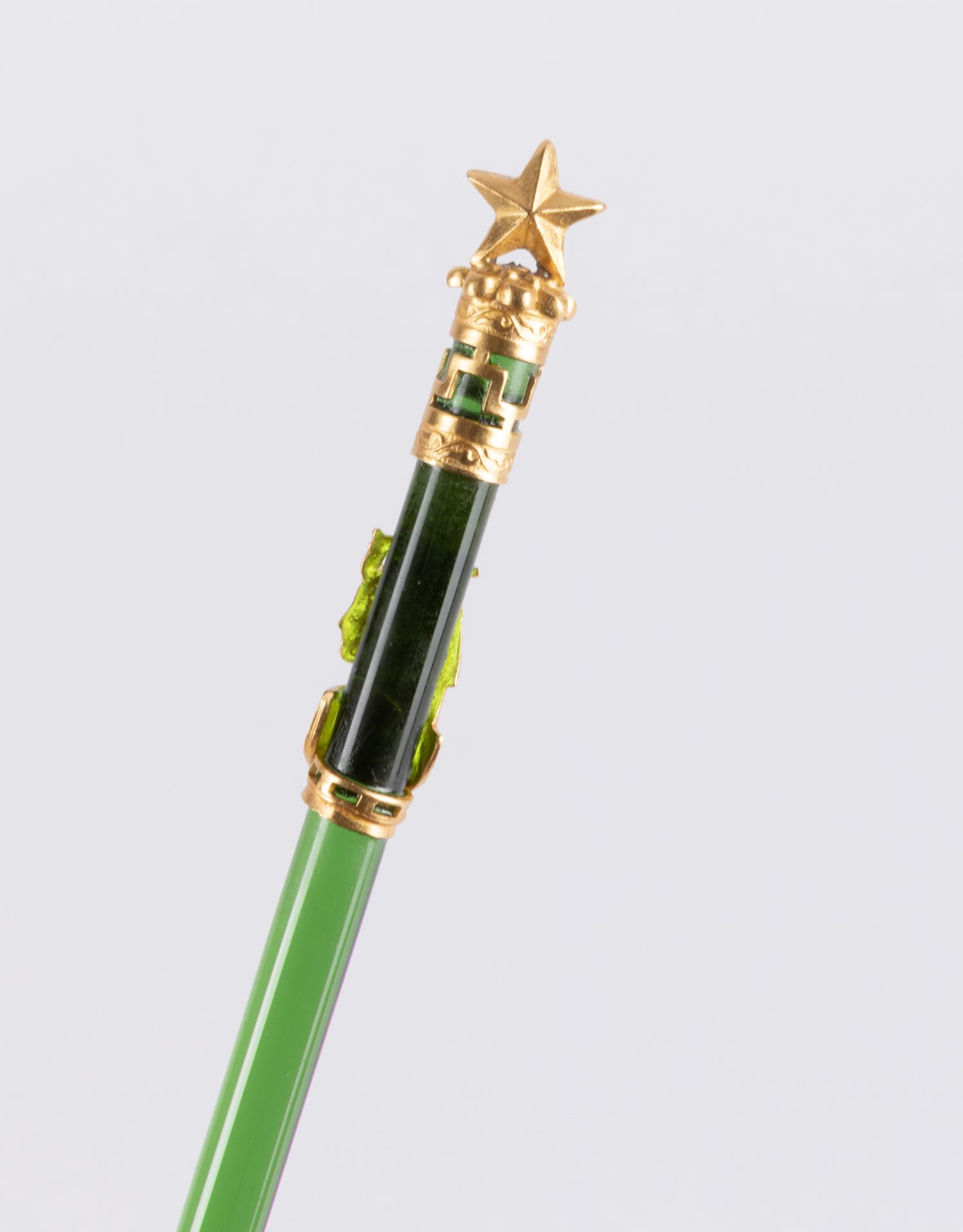 独角鹿西洋古董法国出品铜鎏金镶嵌绿色水晶五角星蘸水笔