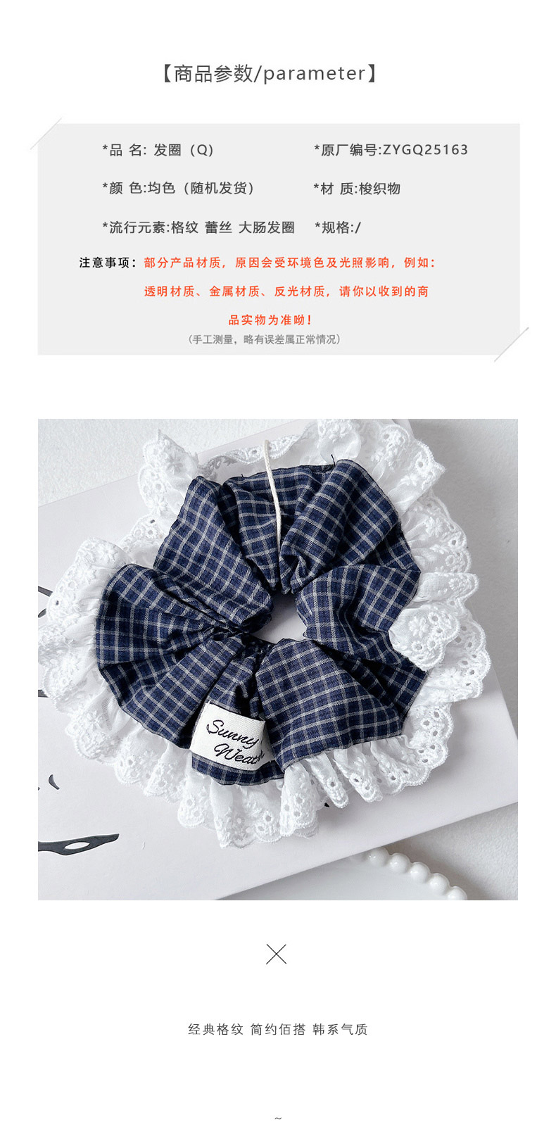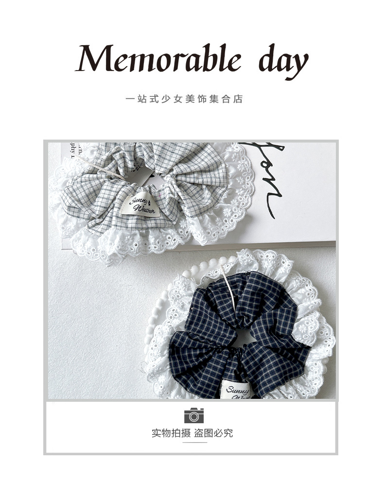 复古格纹蕾丝花边大肠发圈-纪念日百货门店同款169394279