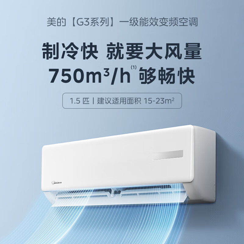 美的空调KFR-35GW/G3-1A一级能效变频冷暖 独立除湿 壁挂式挂机冷暖大1.5匹