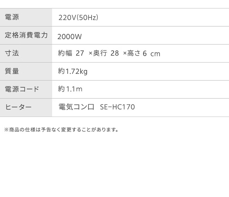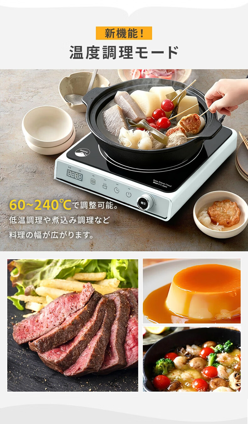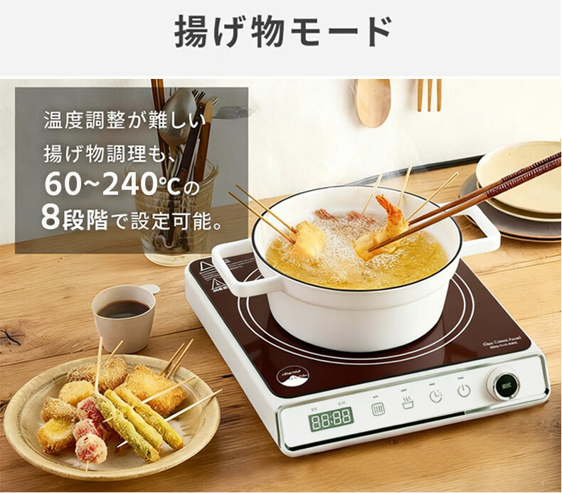| 1、功率:2000W 2、8段火力自由调节 3、三大烹饪模式,煎炒炸煮全搞定60-240℃精准温控 4、30-180分钟定时调节 5、售后及质保:一年内免费维修(中国大陆地区) 6、单台重:1.72KG |