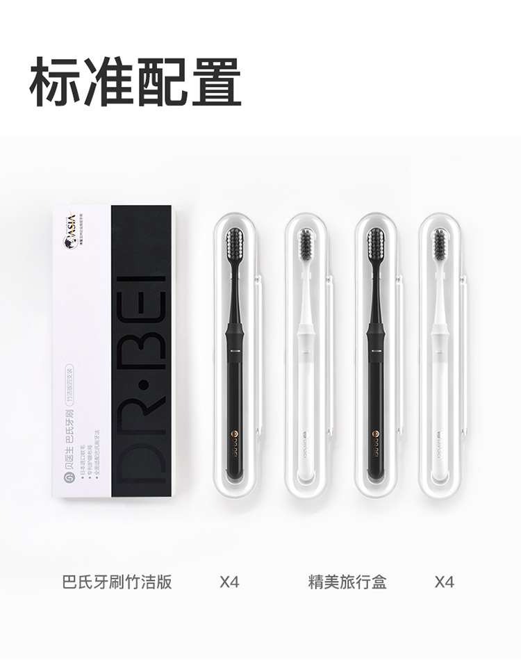 贝医生巴氏牙刷竹洁版 4支装