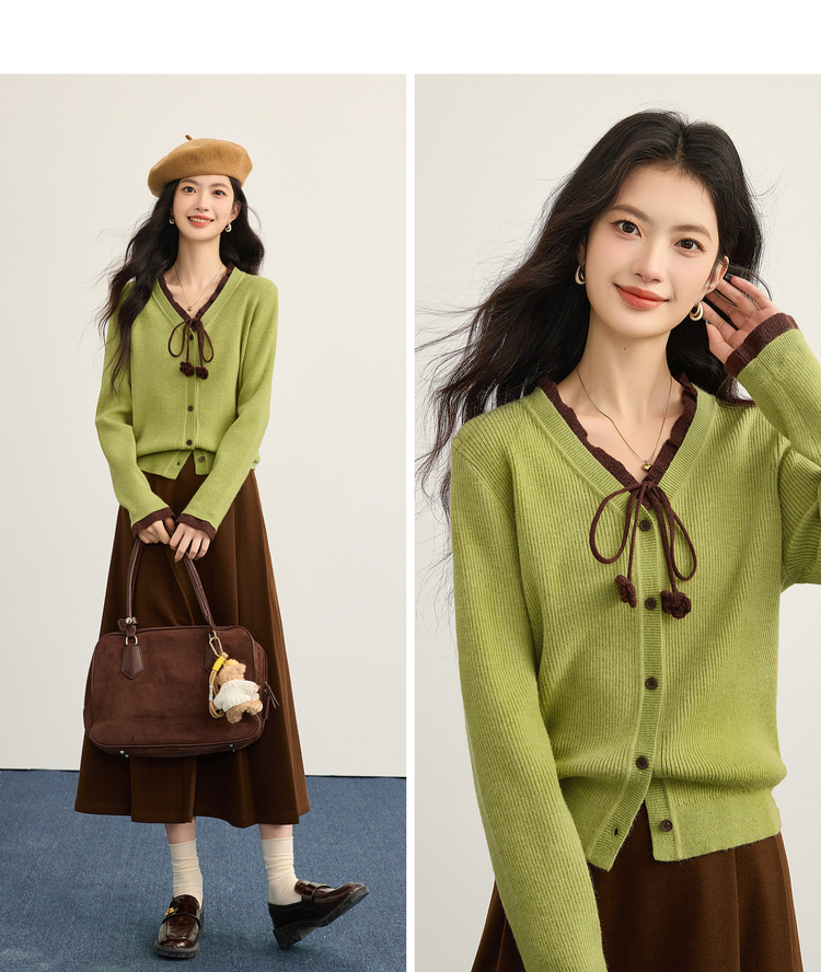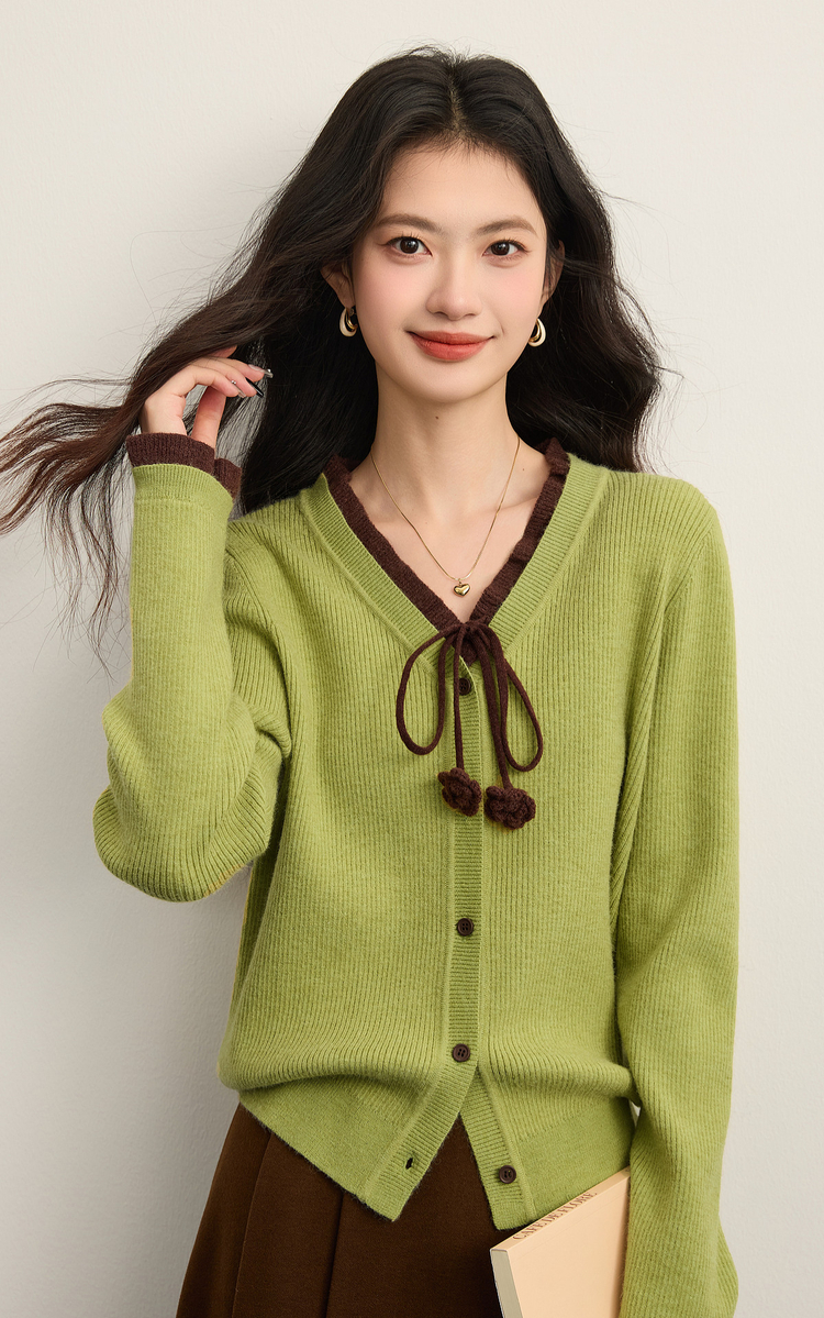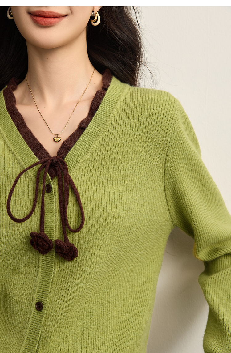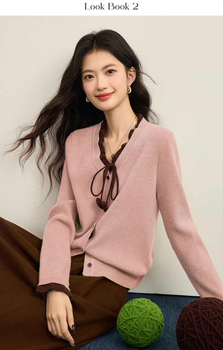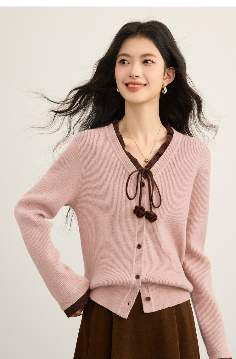 【12/17新品】熙世界甜美风系带V领毛衣开衫女长袖多巴胺针织上衣2025秋冬新款