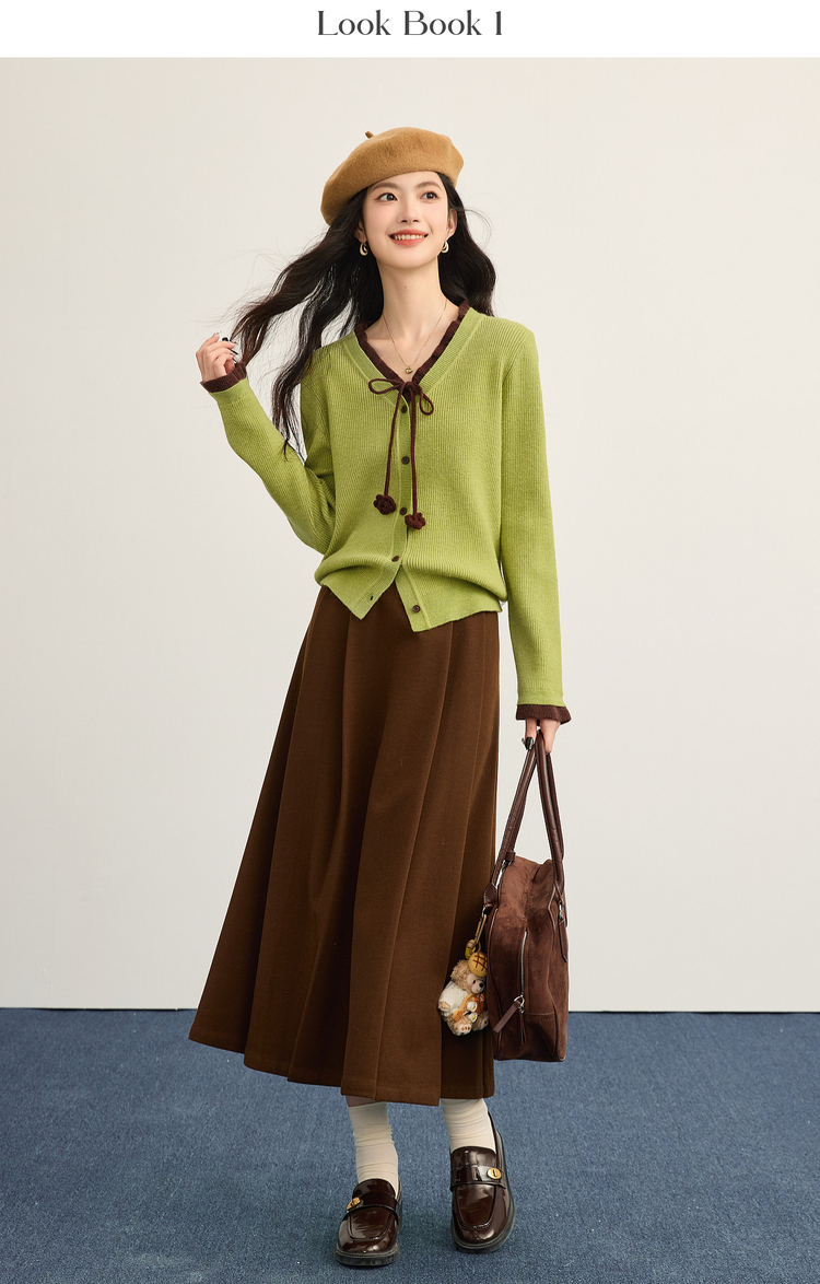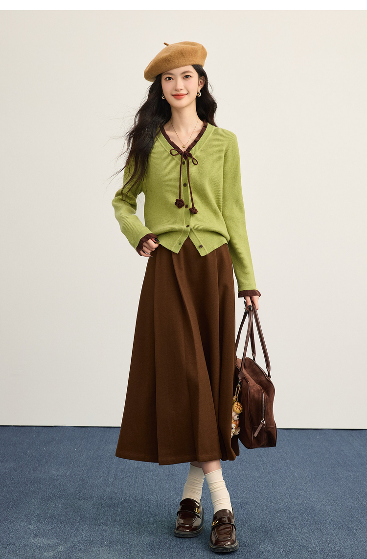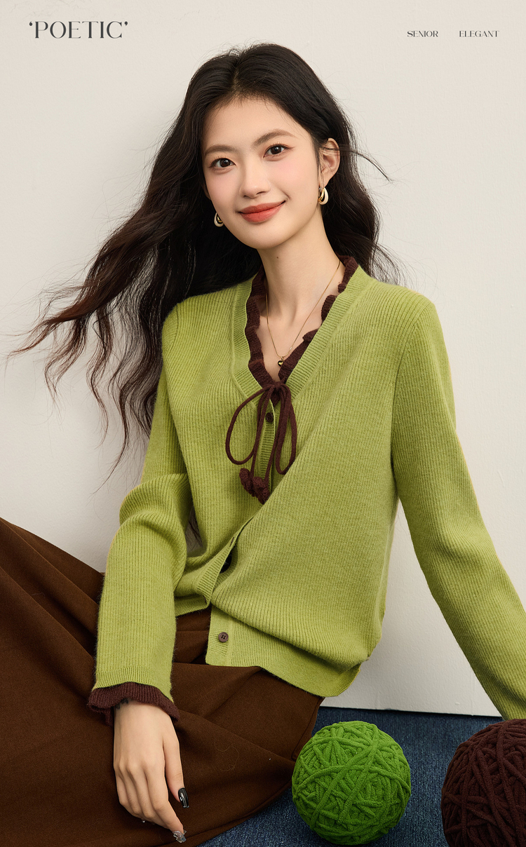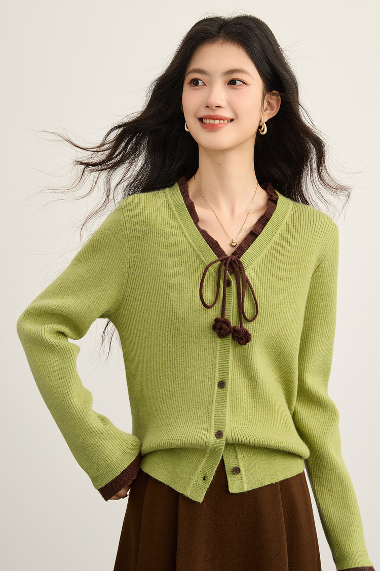 【12/17新品】熙世界甜美风系带V领毛衣开衫女长袖多巴胺针织上衣2025秋冬新款