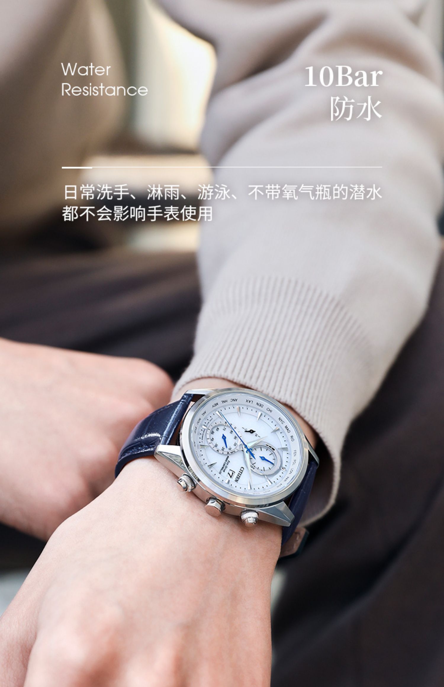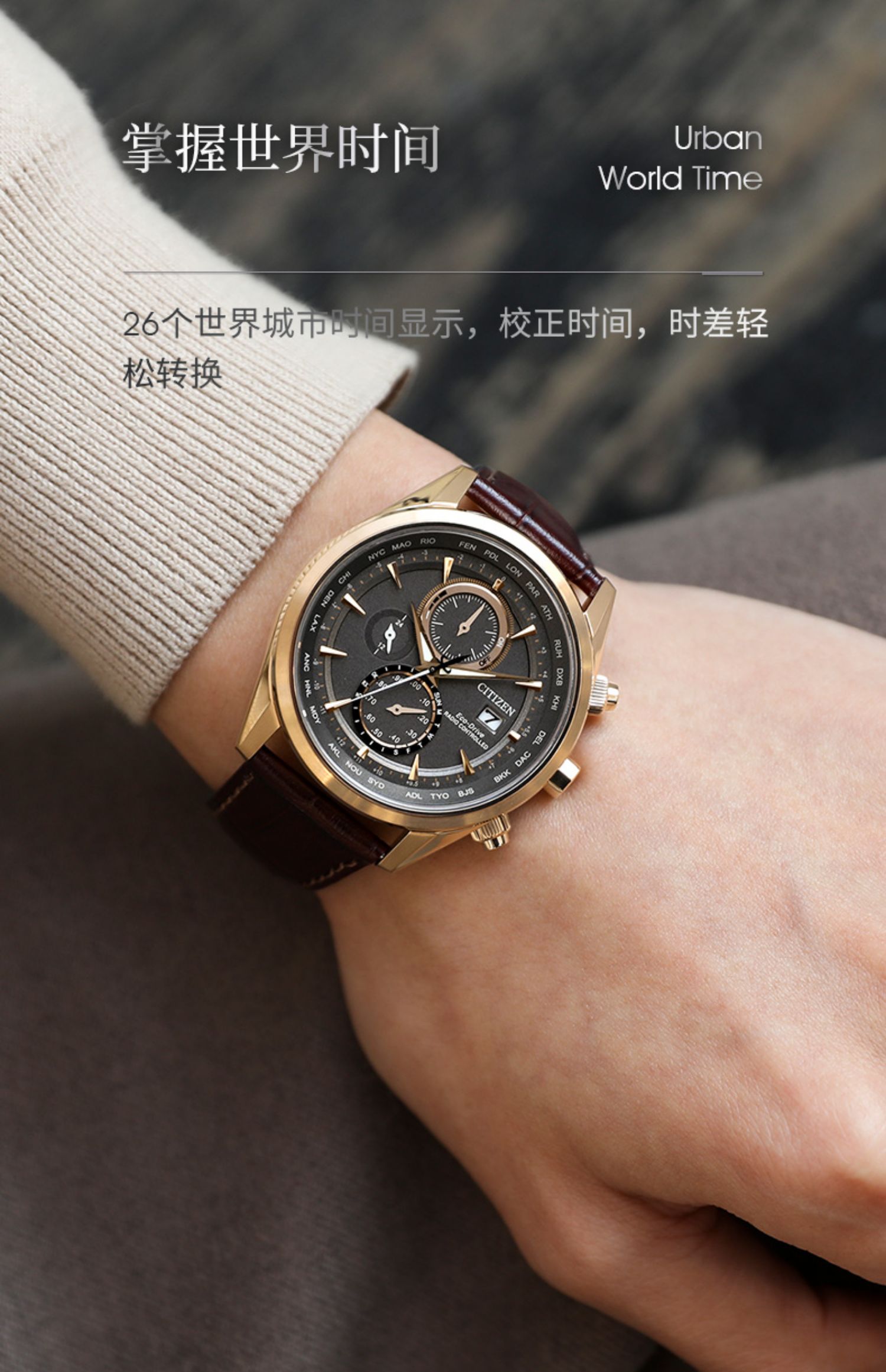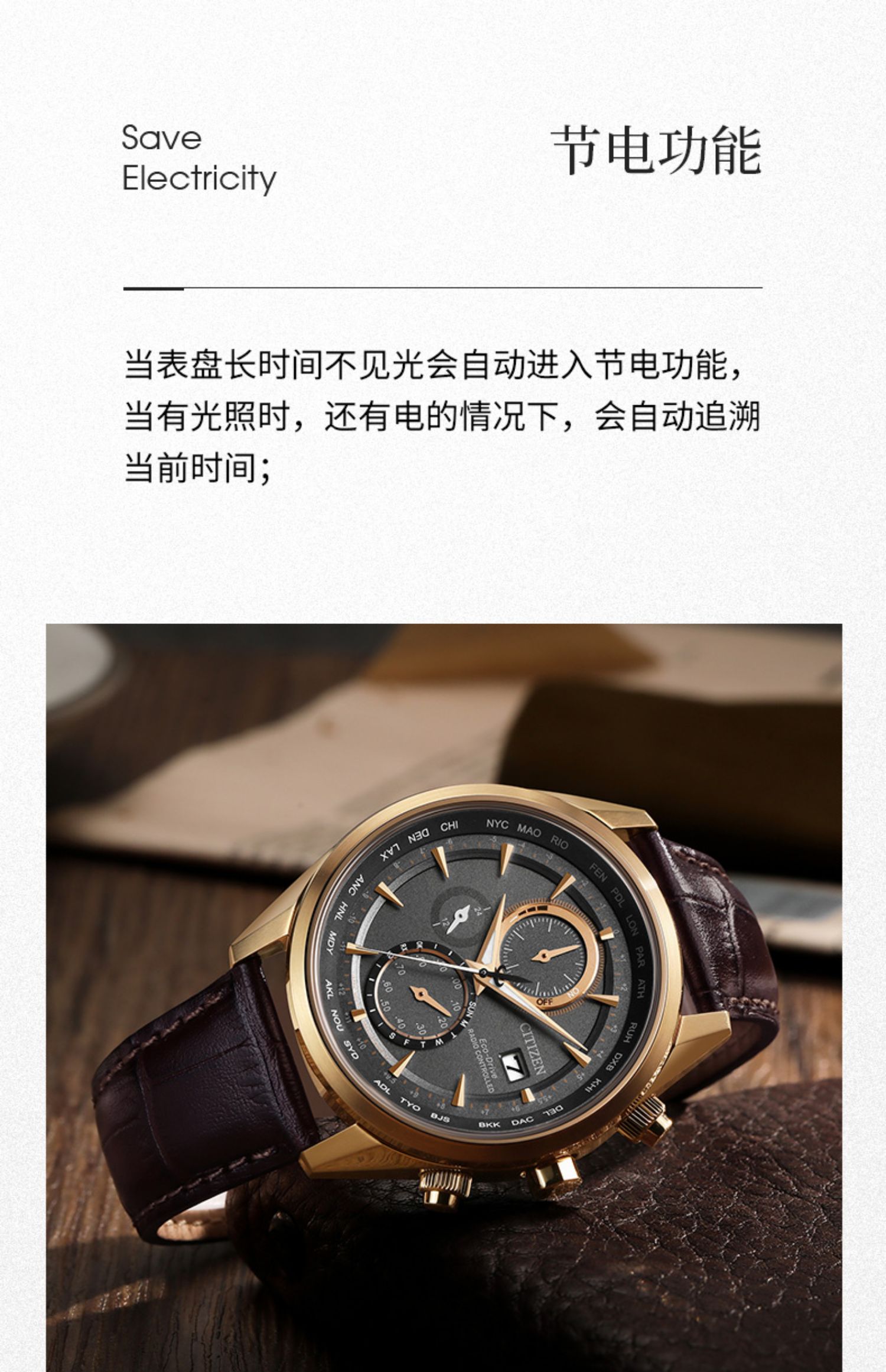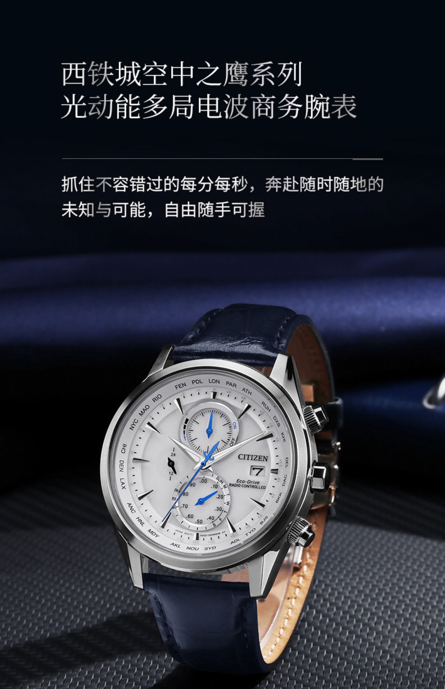 西铁城/CITIZEN光动能多局电波商务皮带手表男AT8263-10H