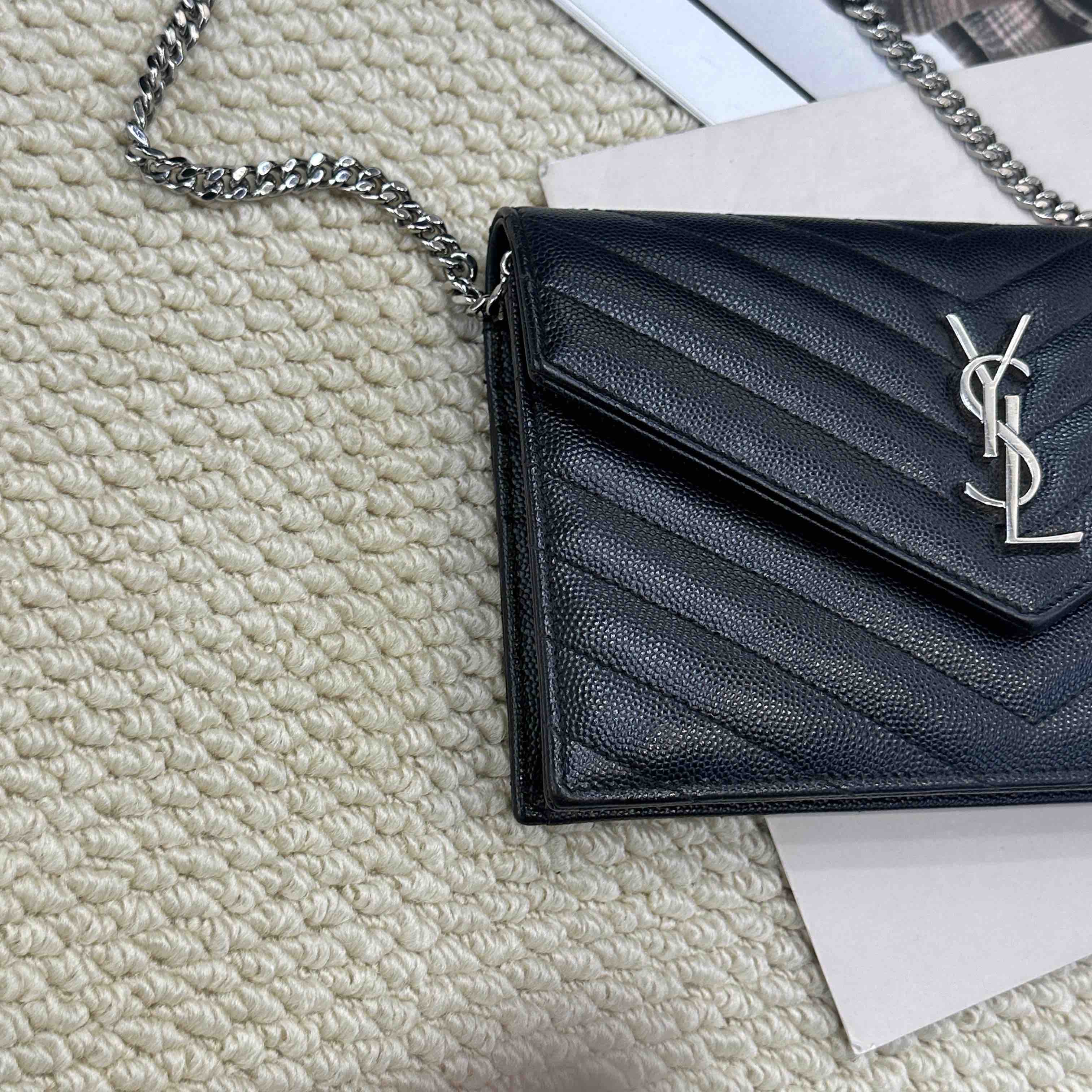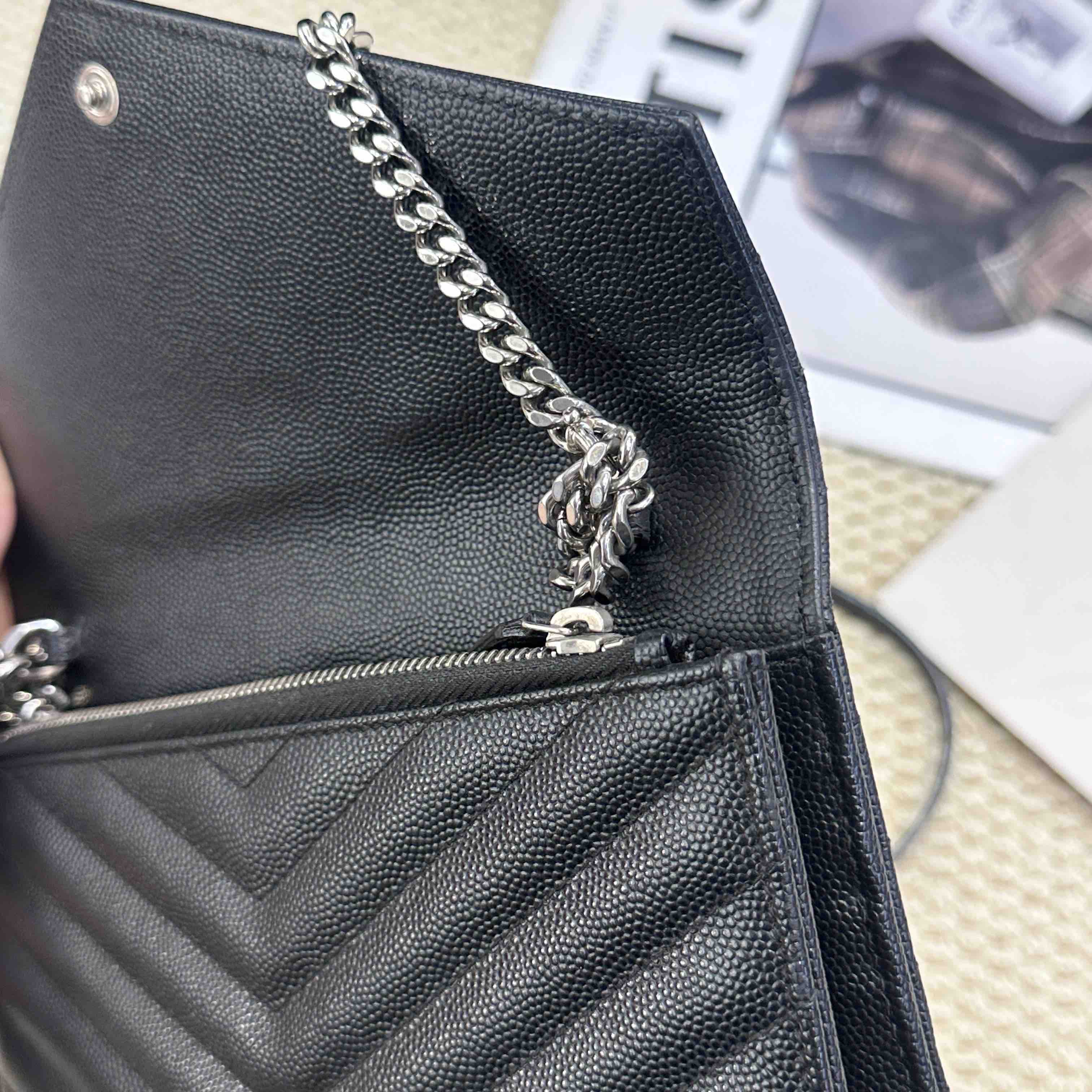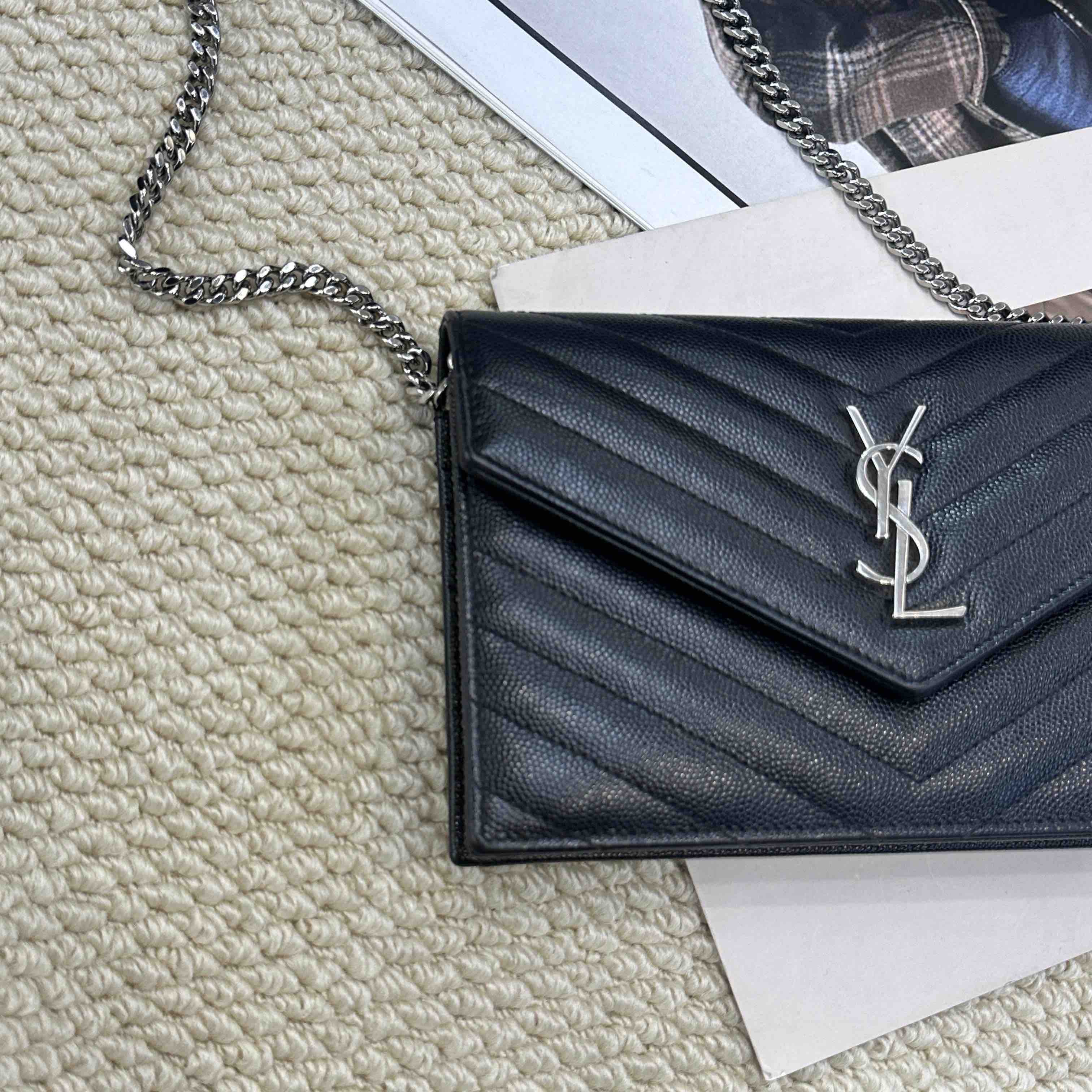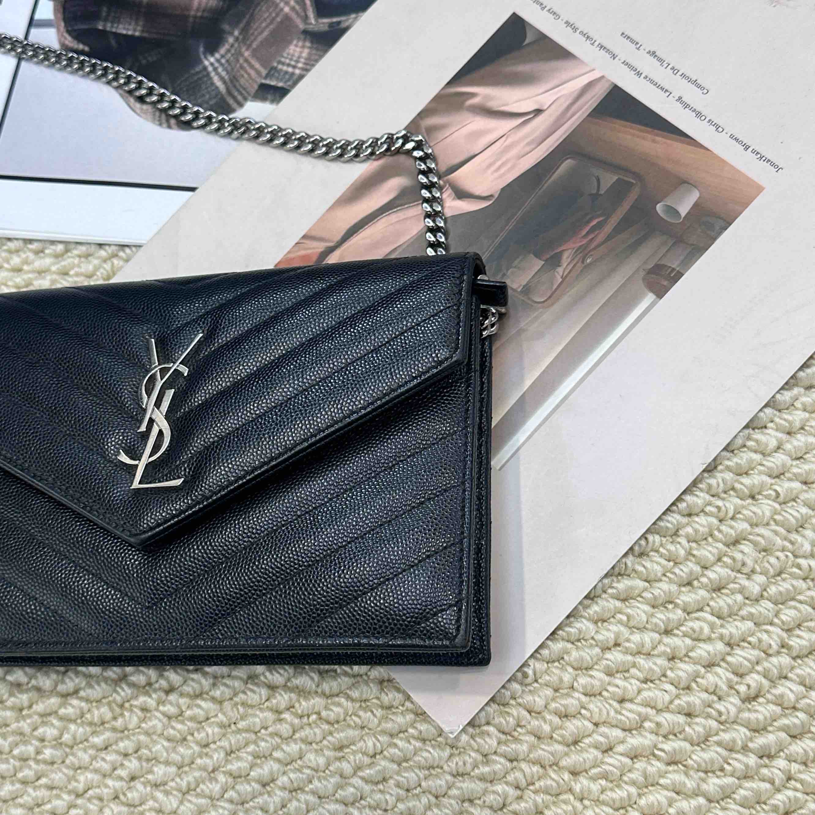 YSL 黑银 鱼子酱牛皮 woc 信封包