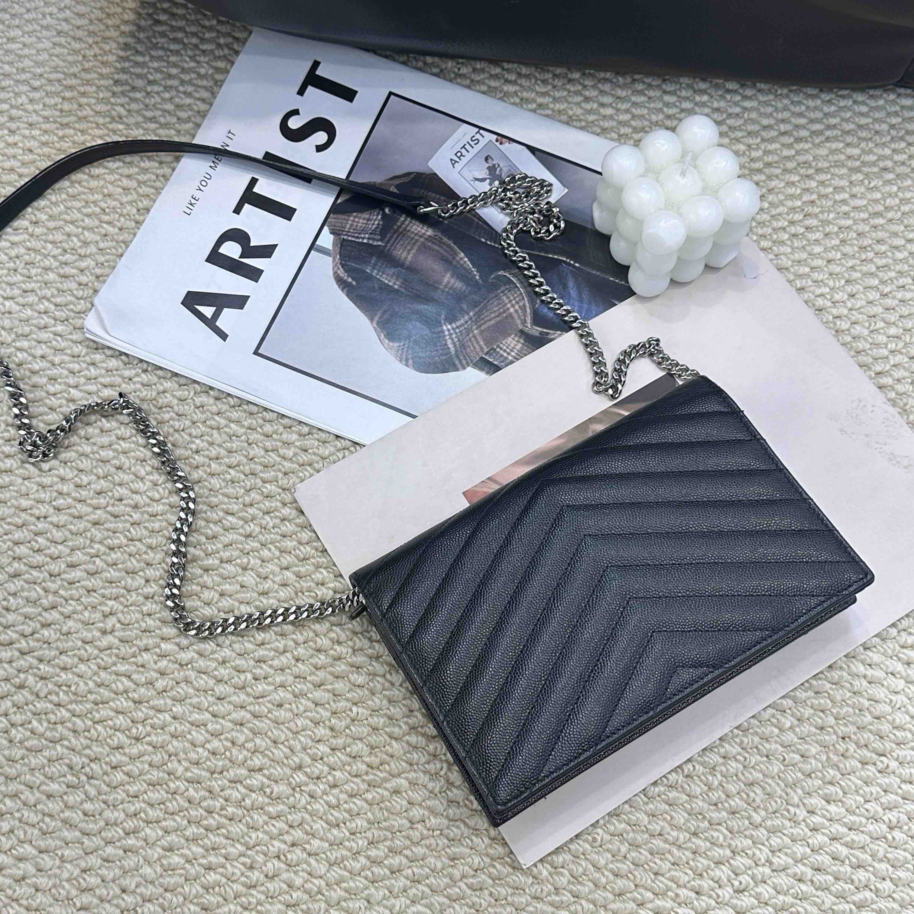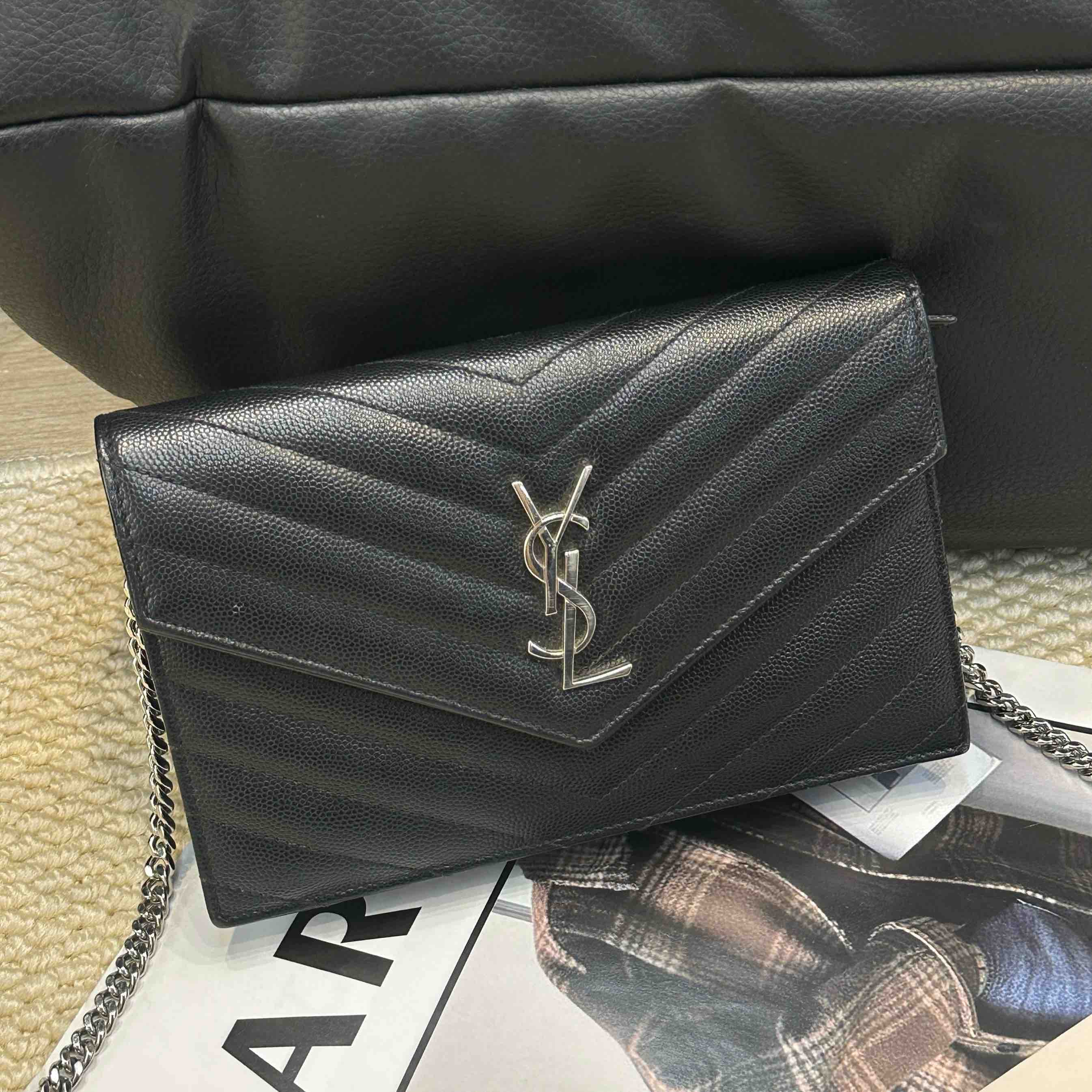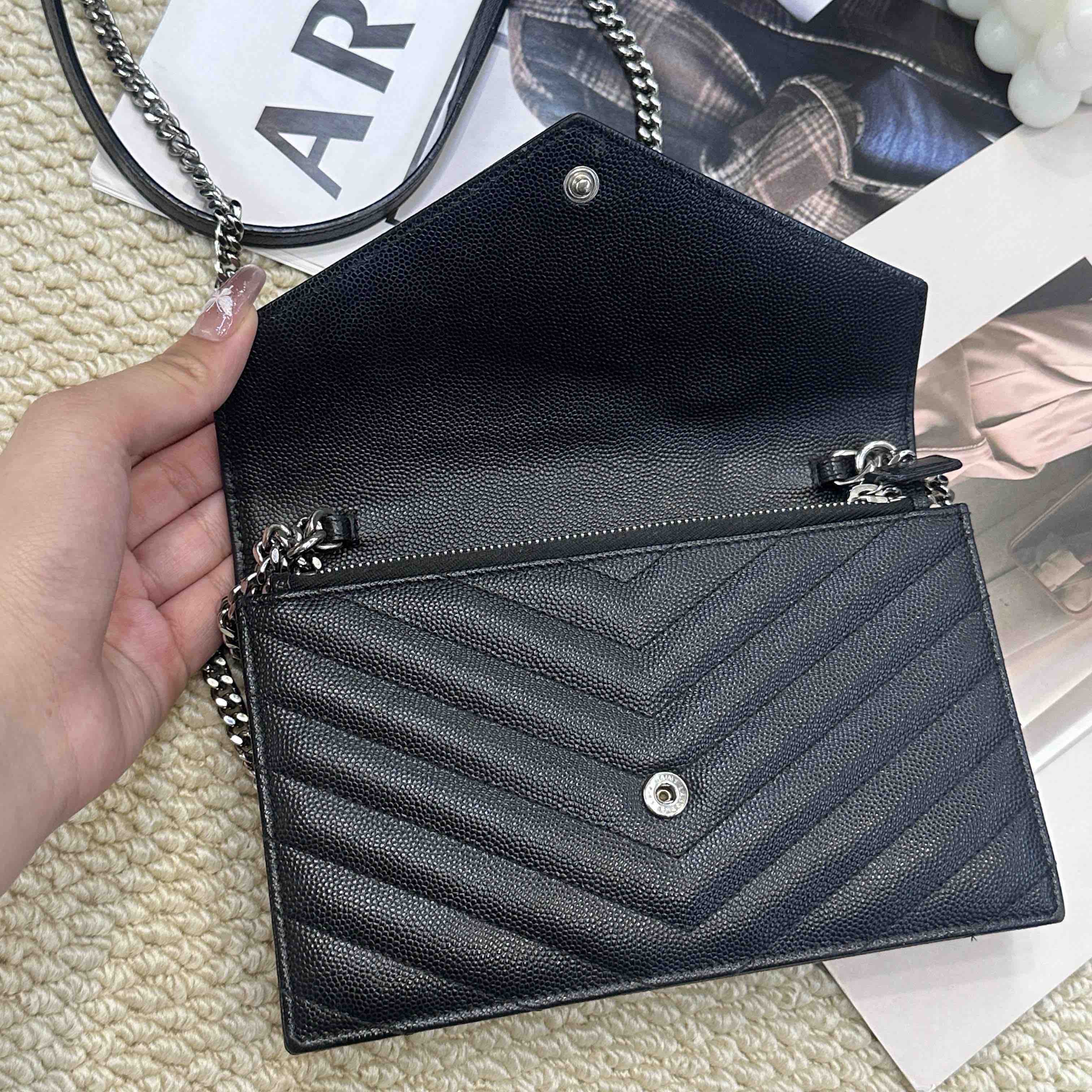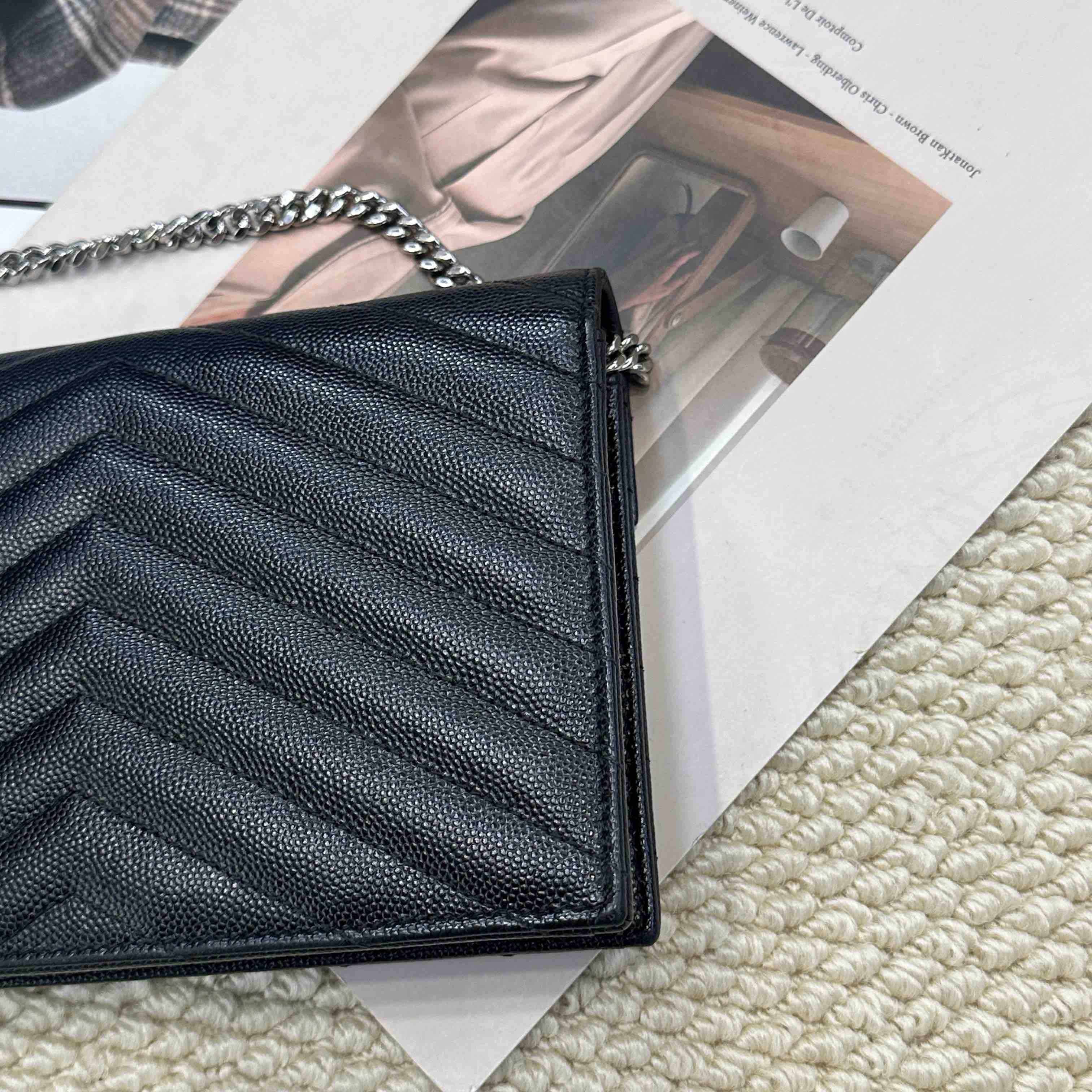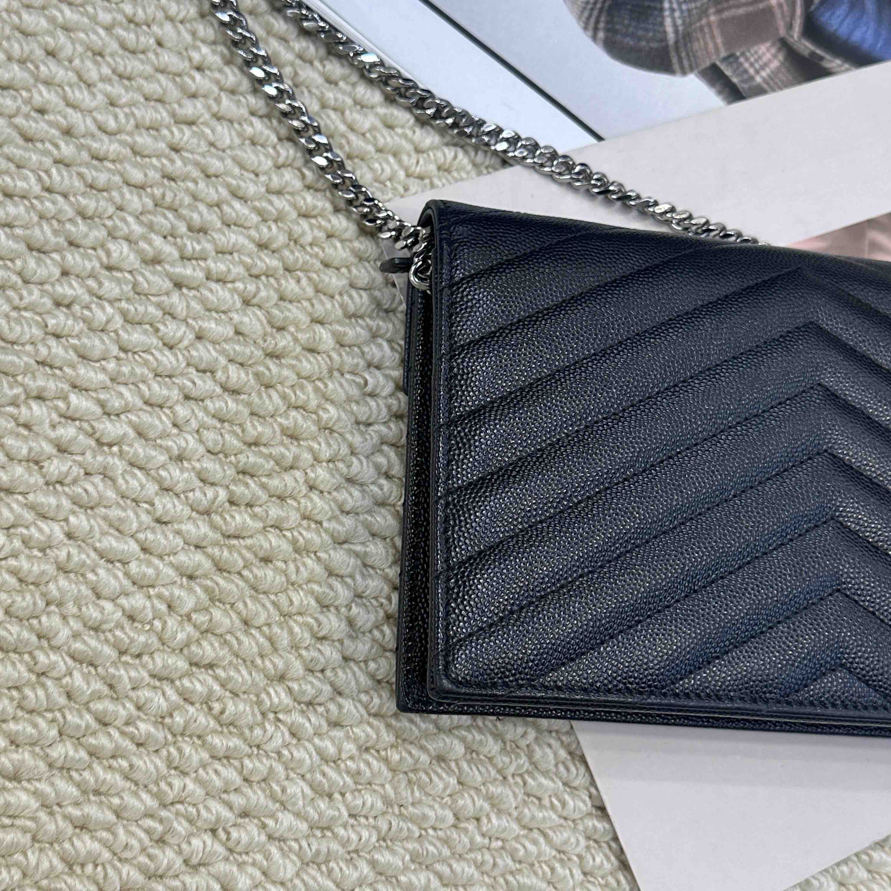 YSL 黑银 鱼子酱牛皮 woc 信封包