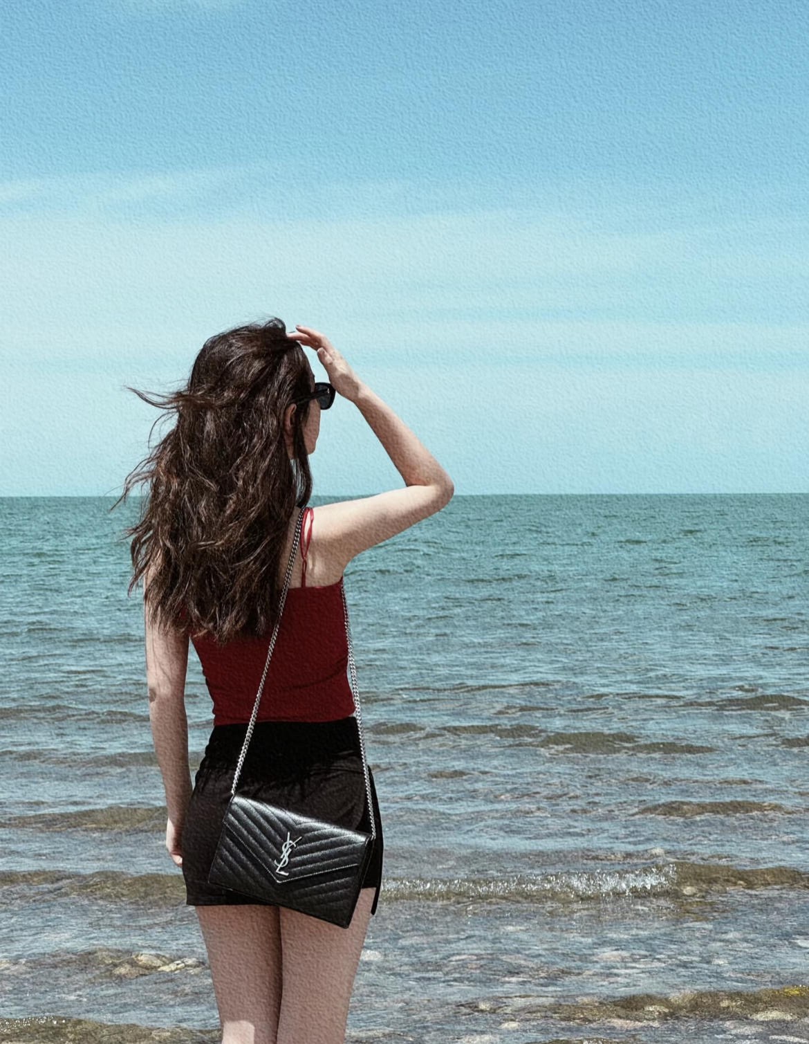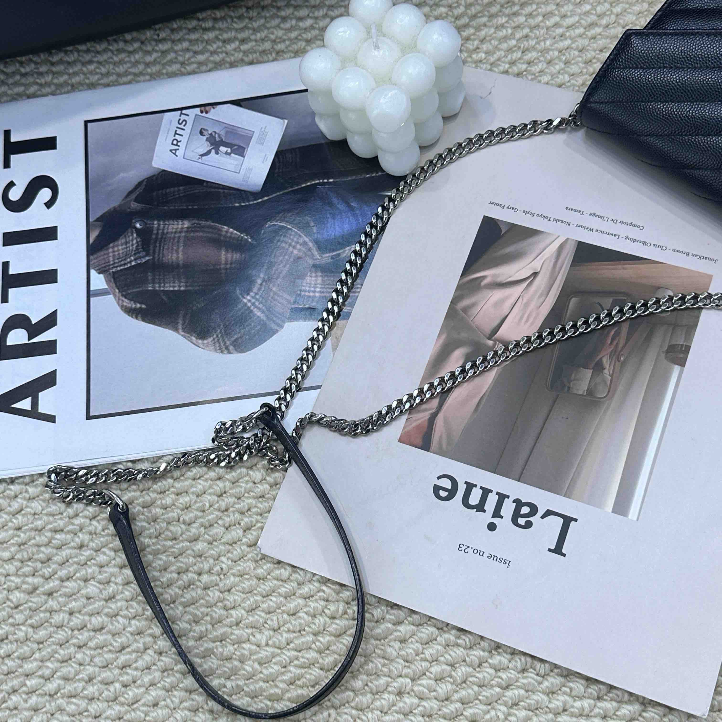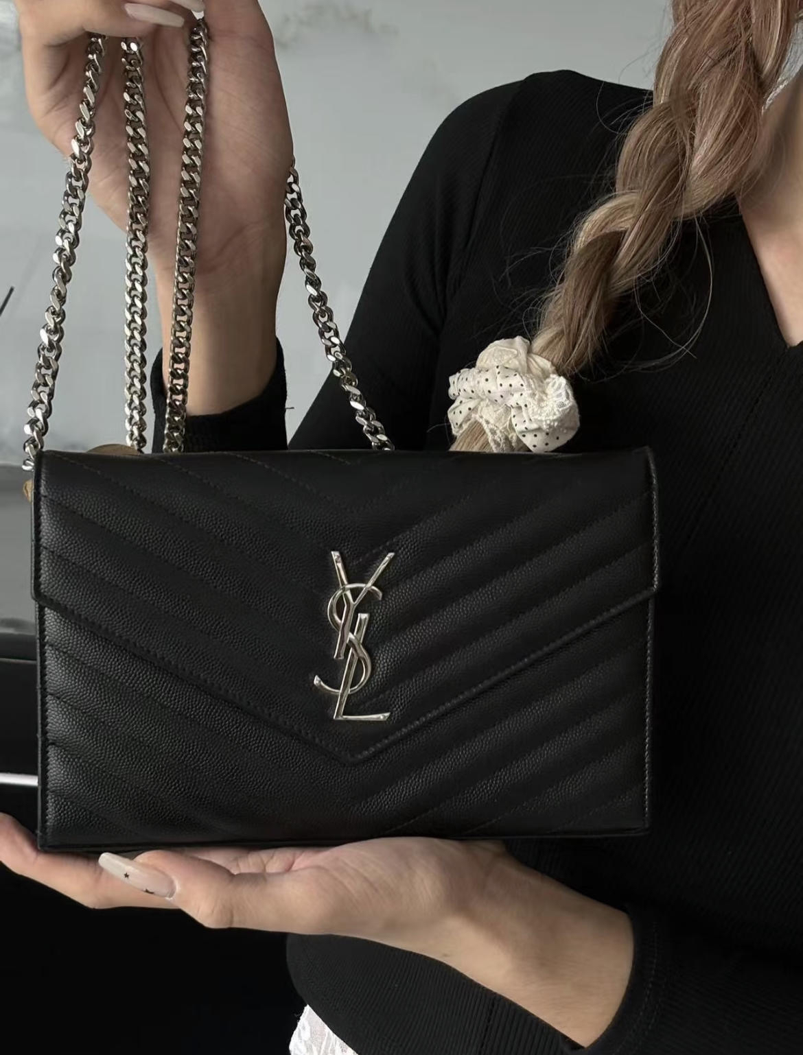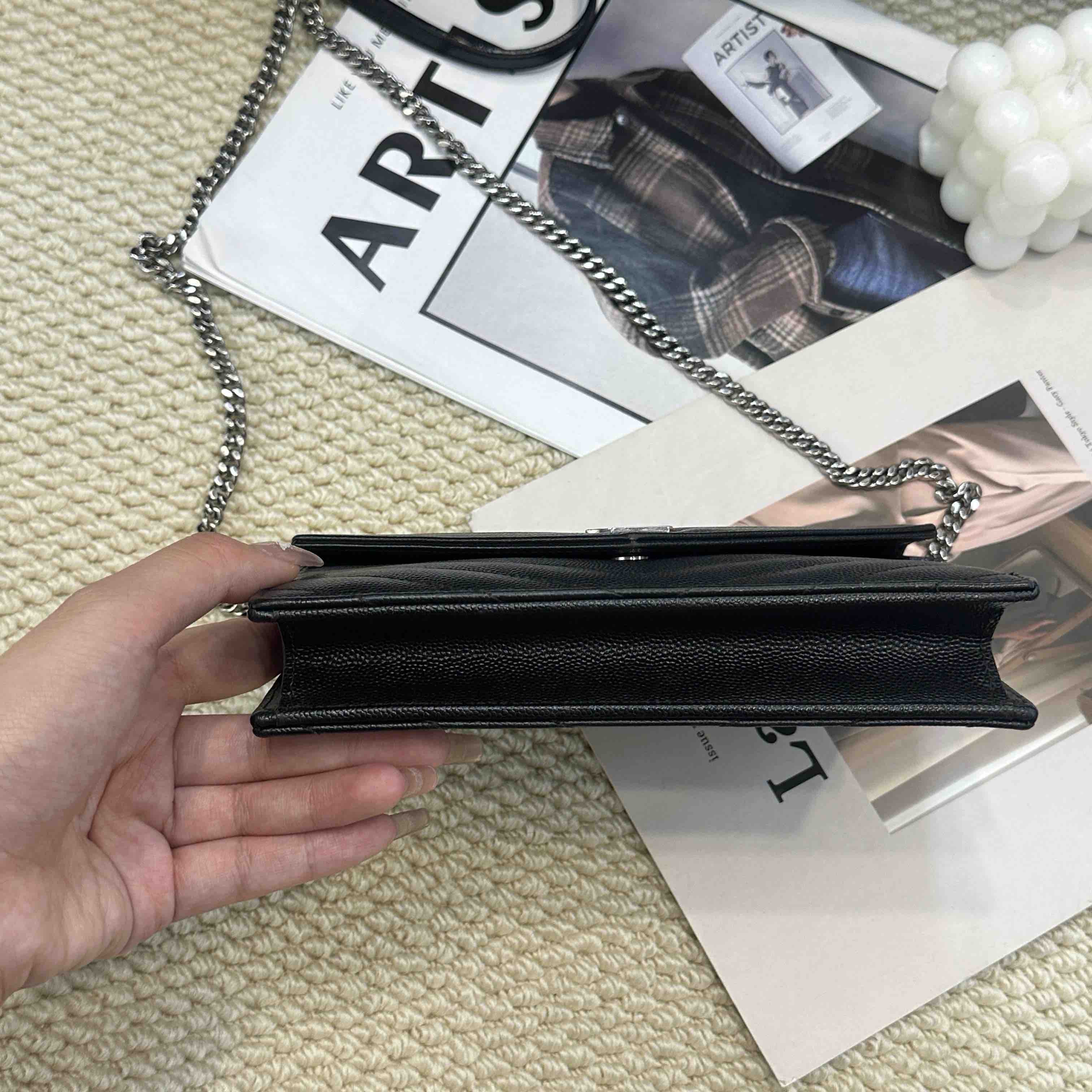 YSL 黑银 鱼子酱牛皮 woc 信封包