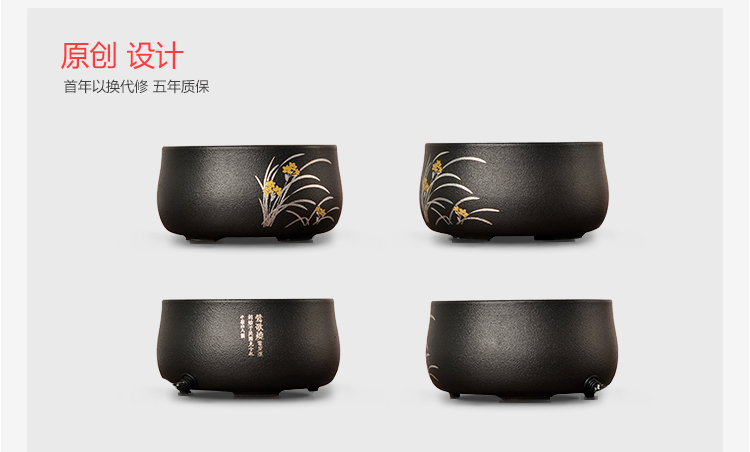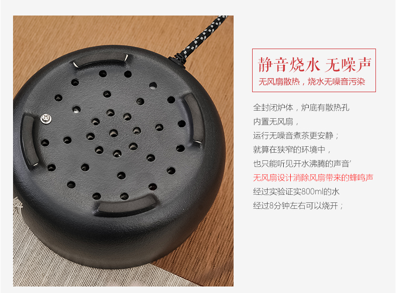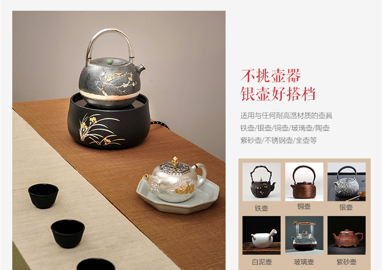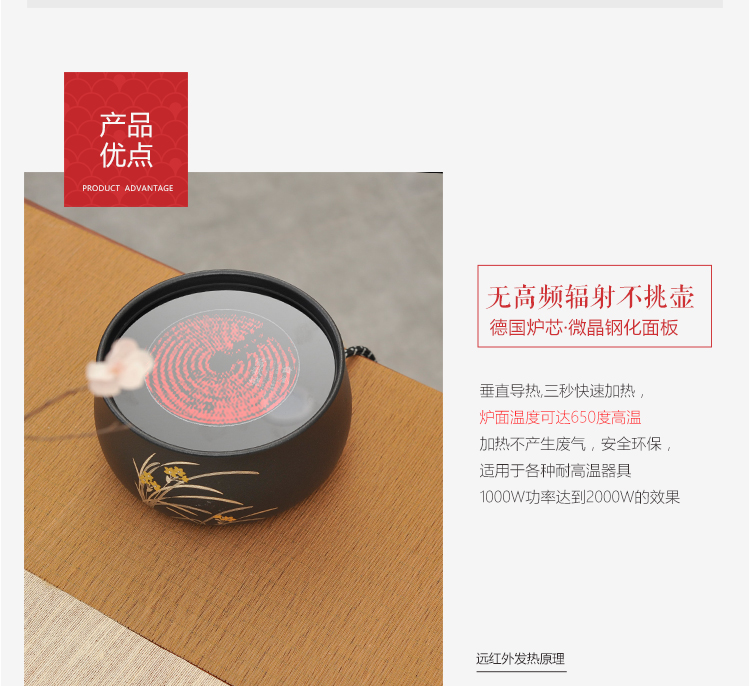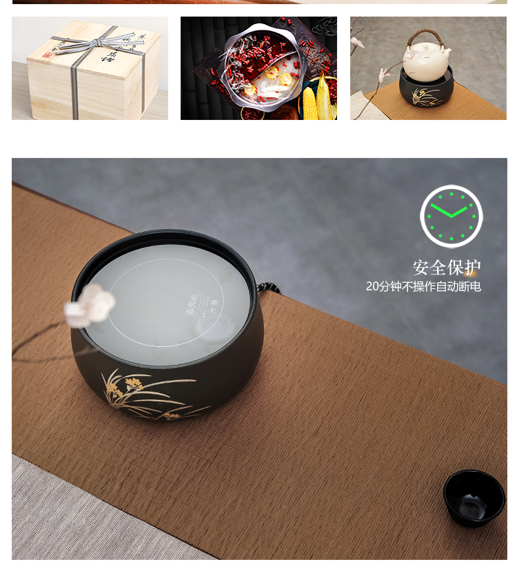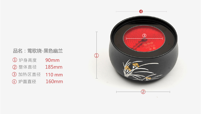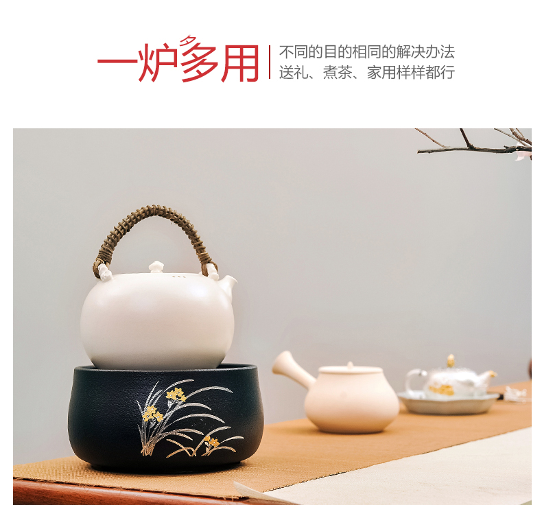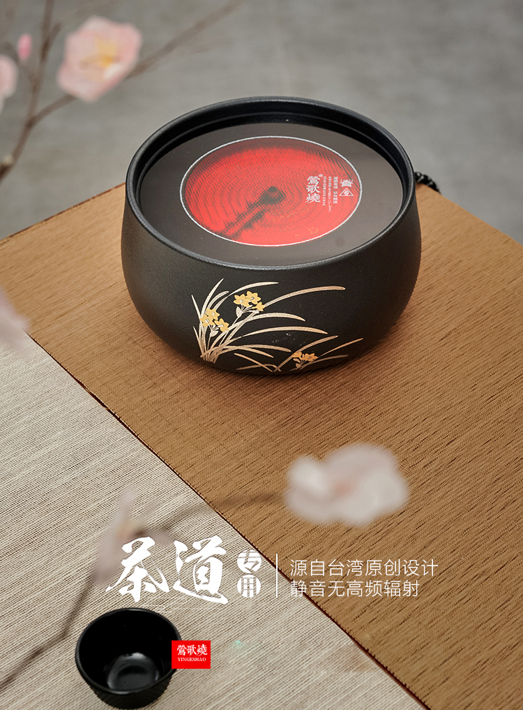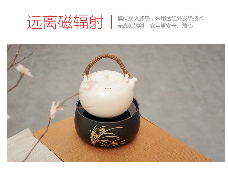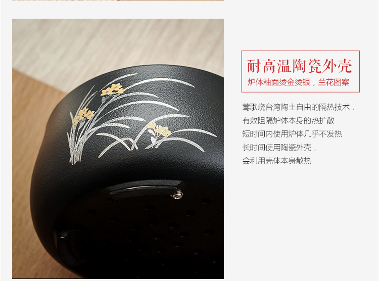 莺歌烧黑底兰花电陶炉 茶炉家用静音铁壶银壶铜壶专用炉烧水炉煮茶器