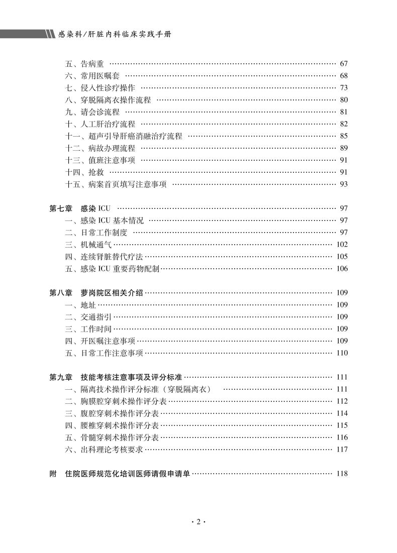 本书内容包括科室基本介绍、入科教育要点考核要求详细说明、感染科/肝脏内科常见疾病及其诊断方法和治疗常规,以及开医嘱、办理出院、临床路径操作等关键流程,同时特别强调实用技能的重要性,提供了穿脱隔离衣、胸膜腔穿刺术等技能操作的考核注意事项和评分标准,以期帮助读者规范操作,提高工作效率。