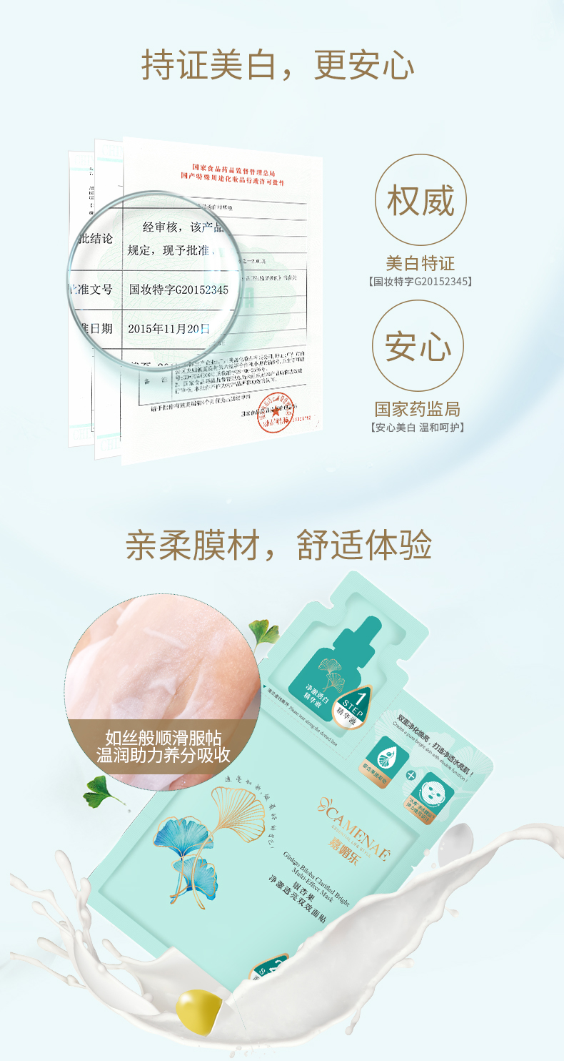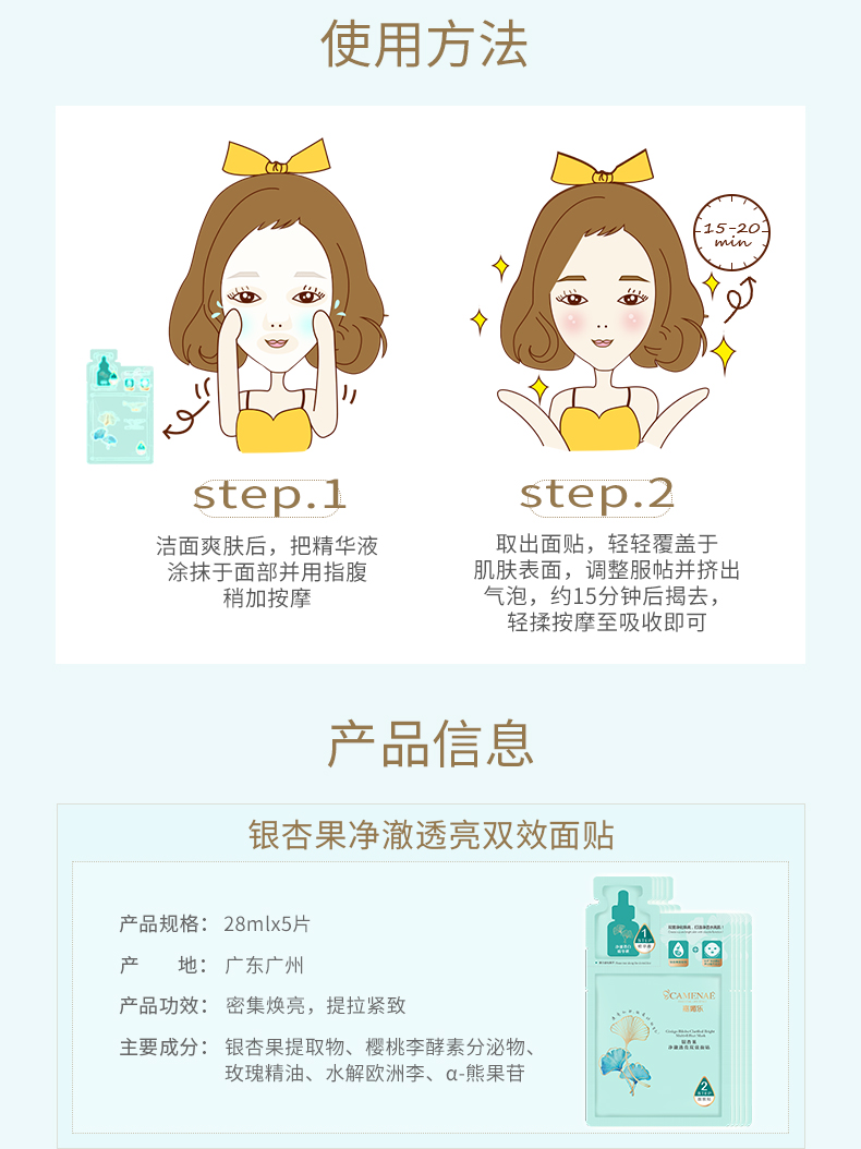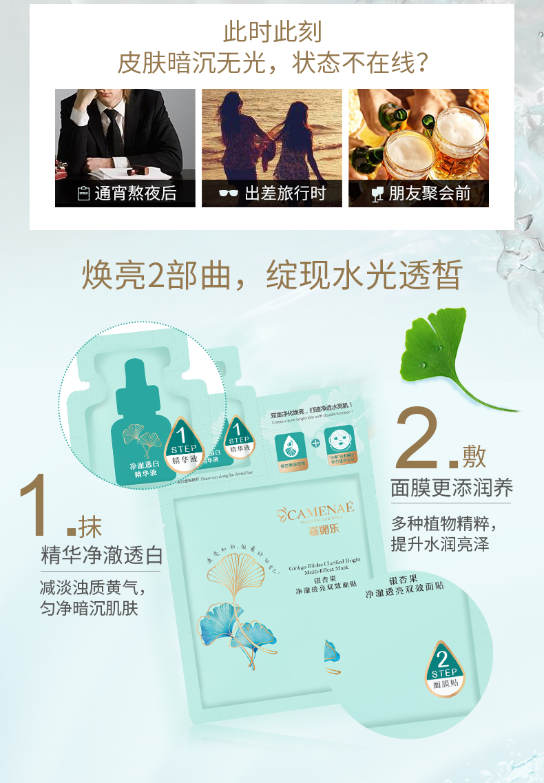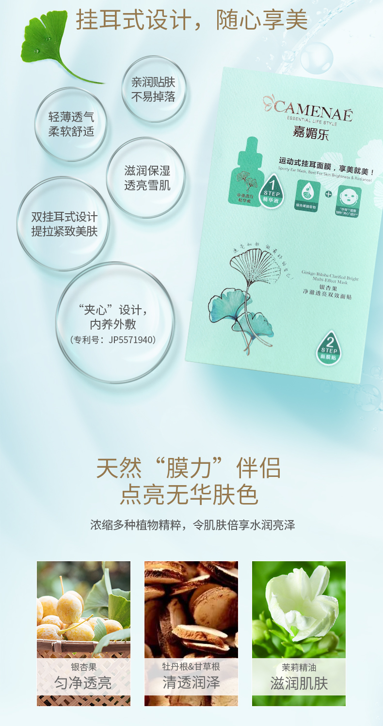 嘉媚乐 银杏果净澈透亮双效面贴(3ml+28ml)×5片/盒
