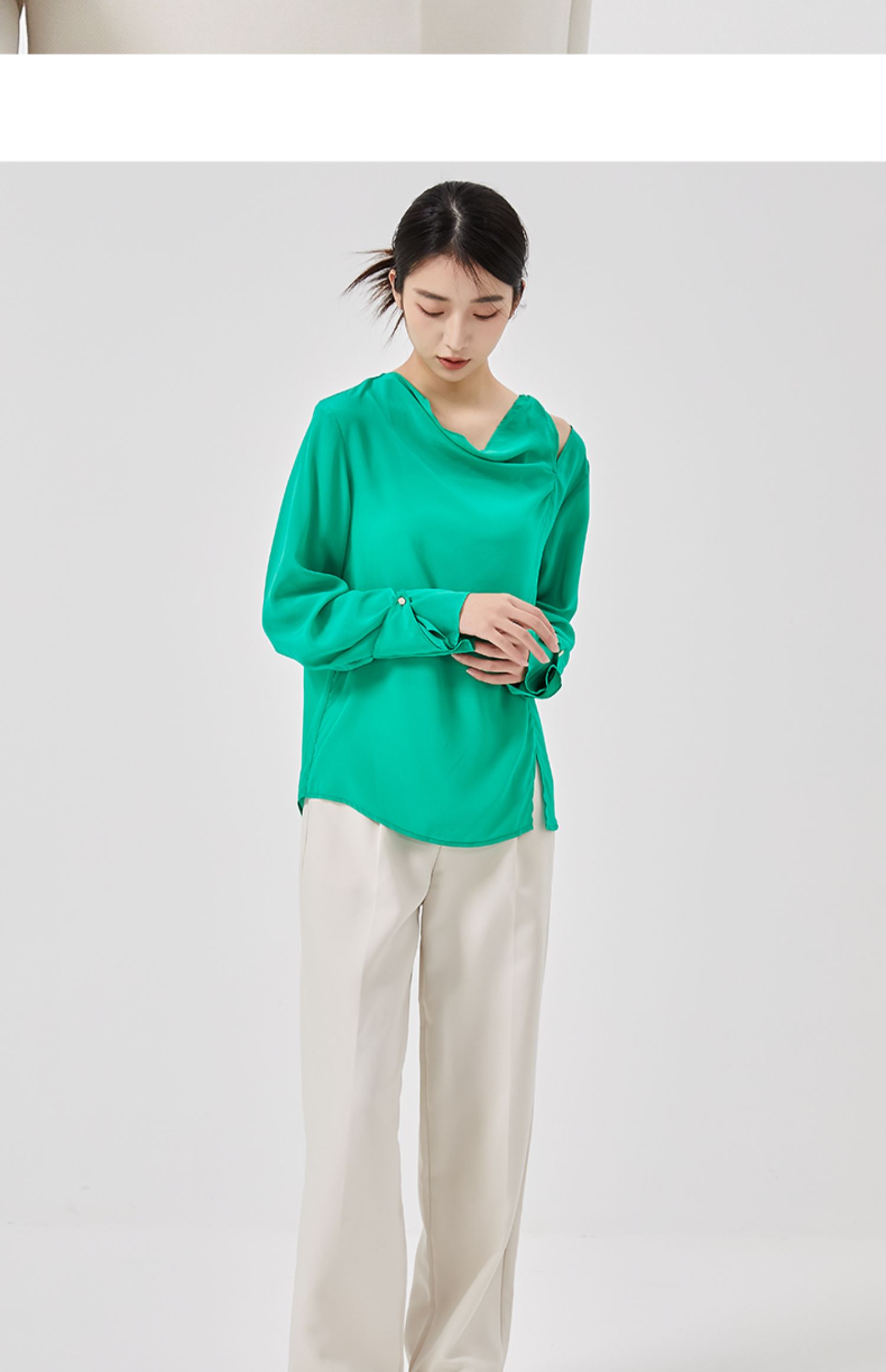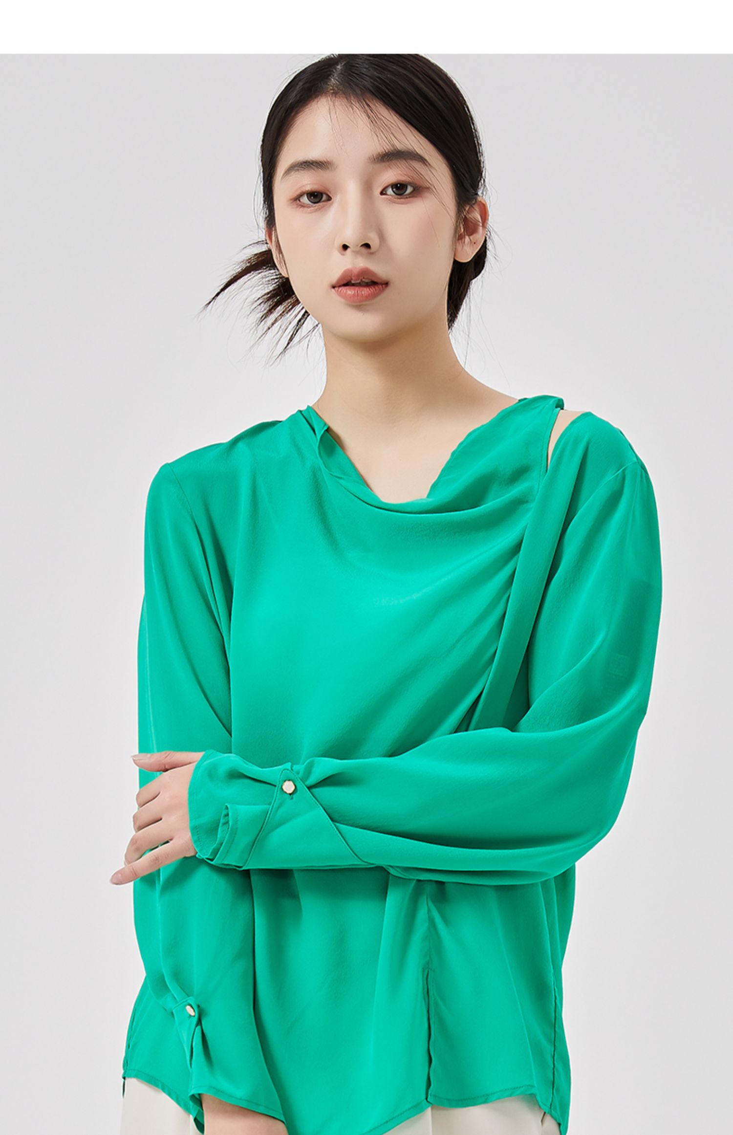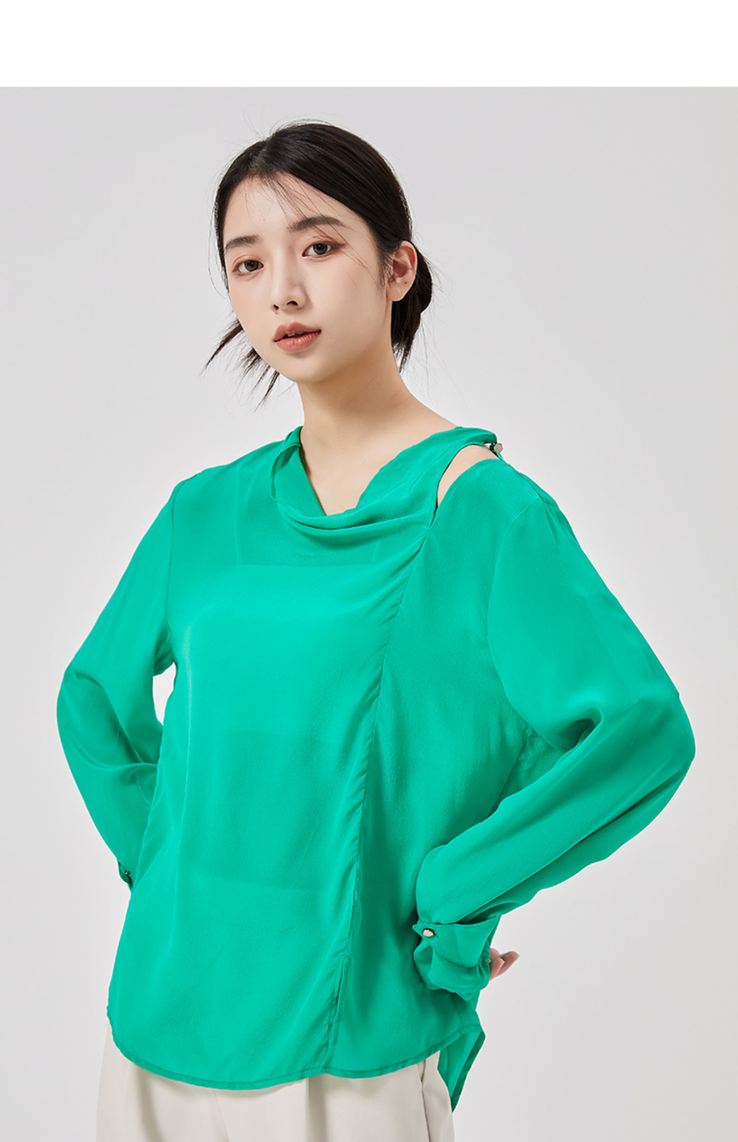 oldcolour2023春季新款纯色气质通勤宽松堆堆领衬衫女HO14013202