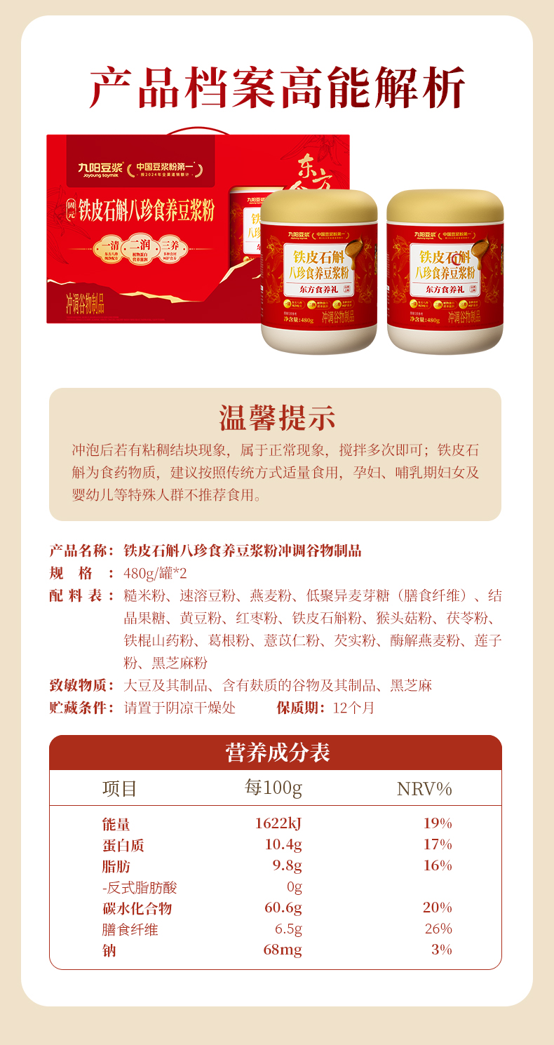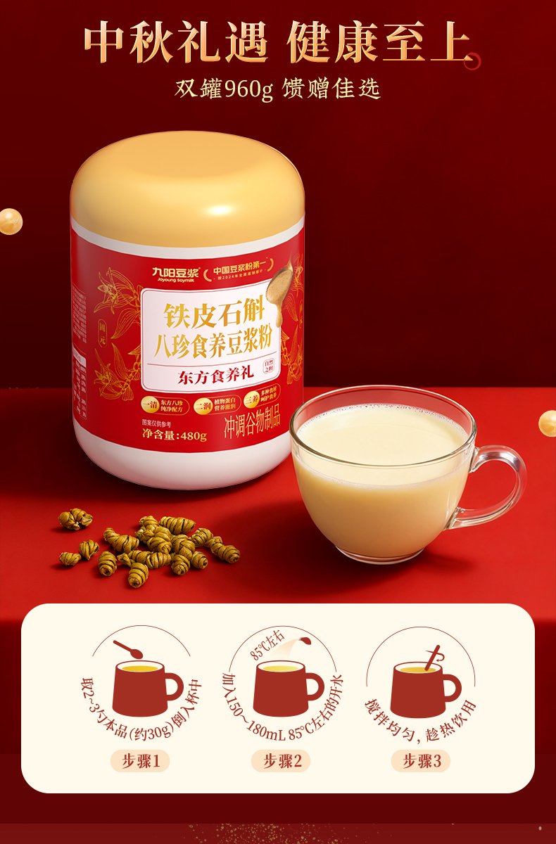 【食养中秋礼盒】九阳豆浆铁皮石斛八珍食养豆浆粉礼盒送父母长辈