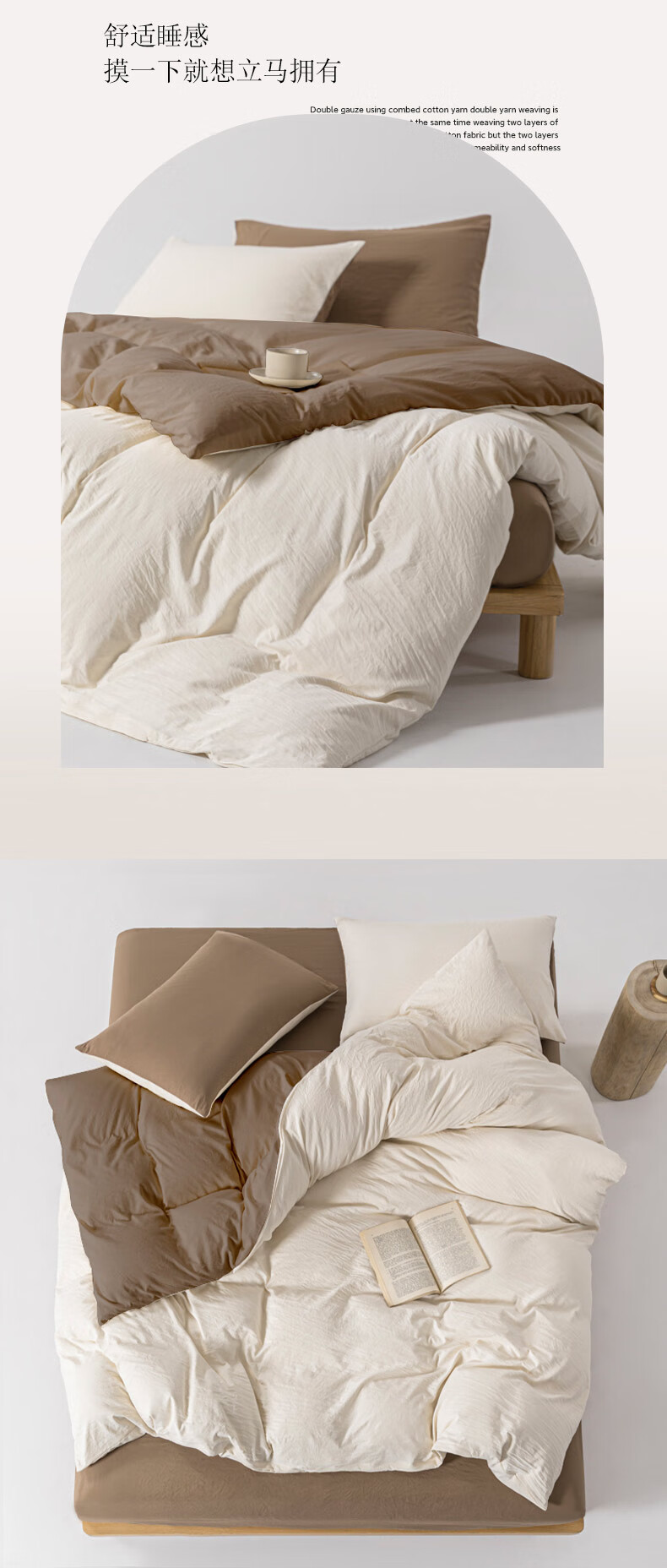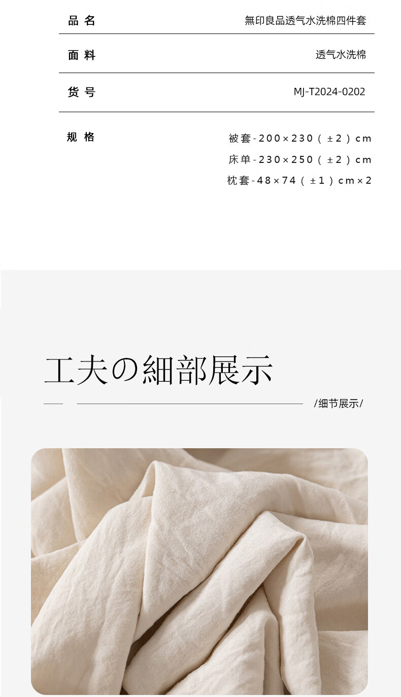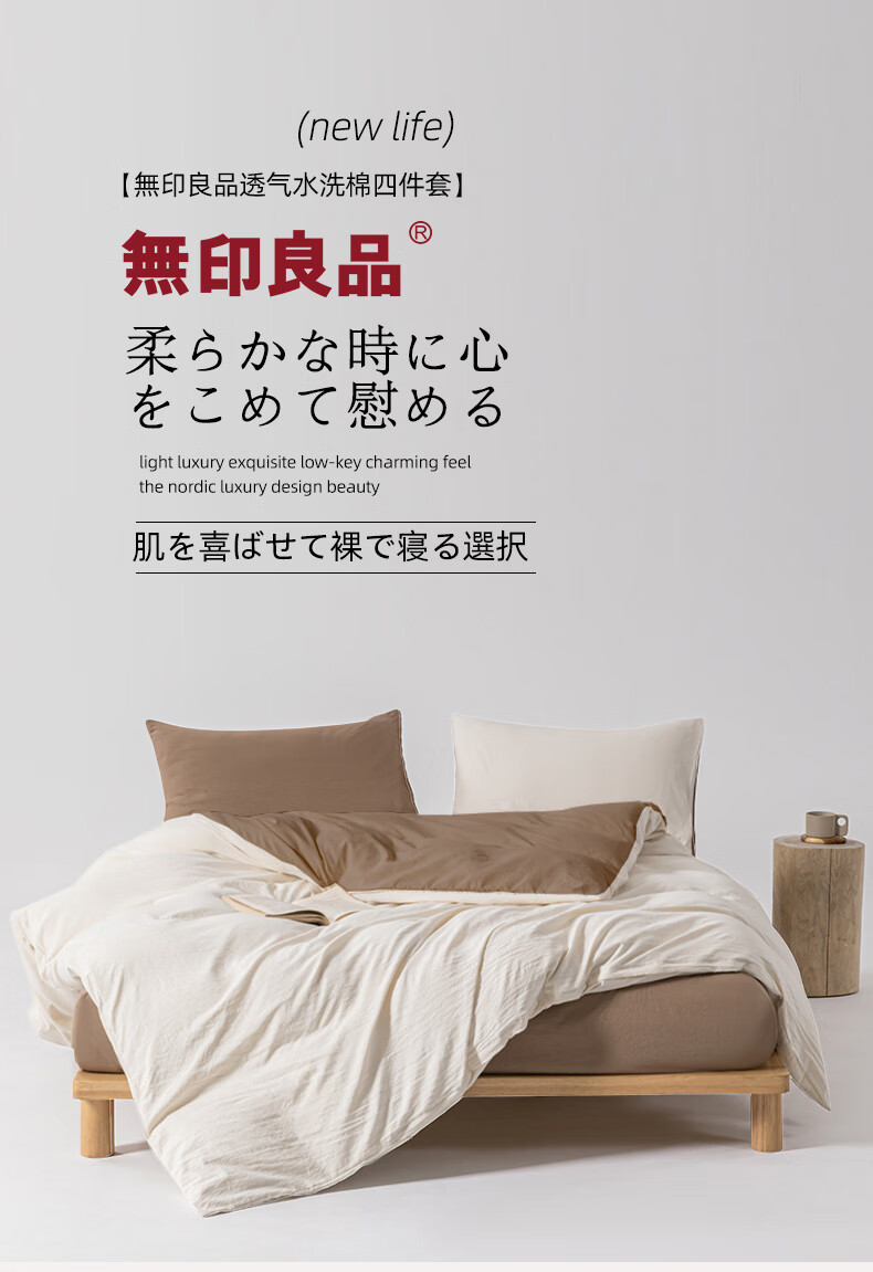 【分仓直发包邮】無印良品透气水洗棉四件套米咖MJ-T2024-0202