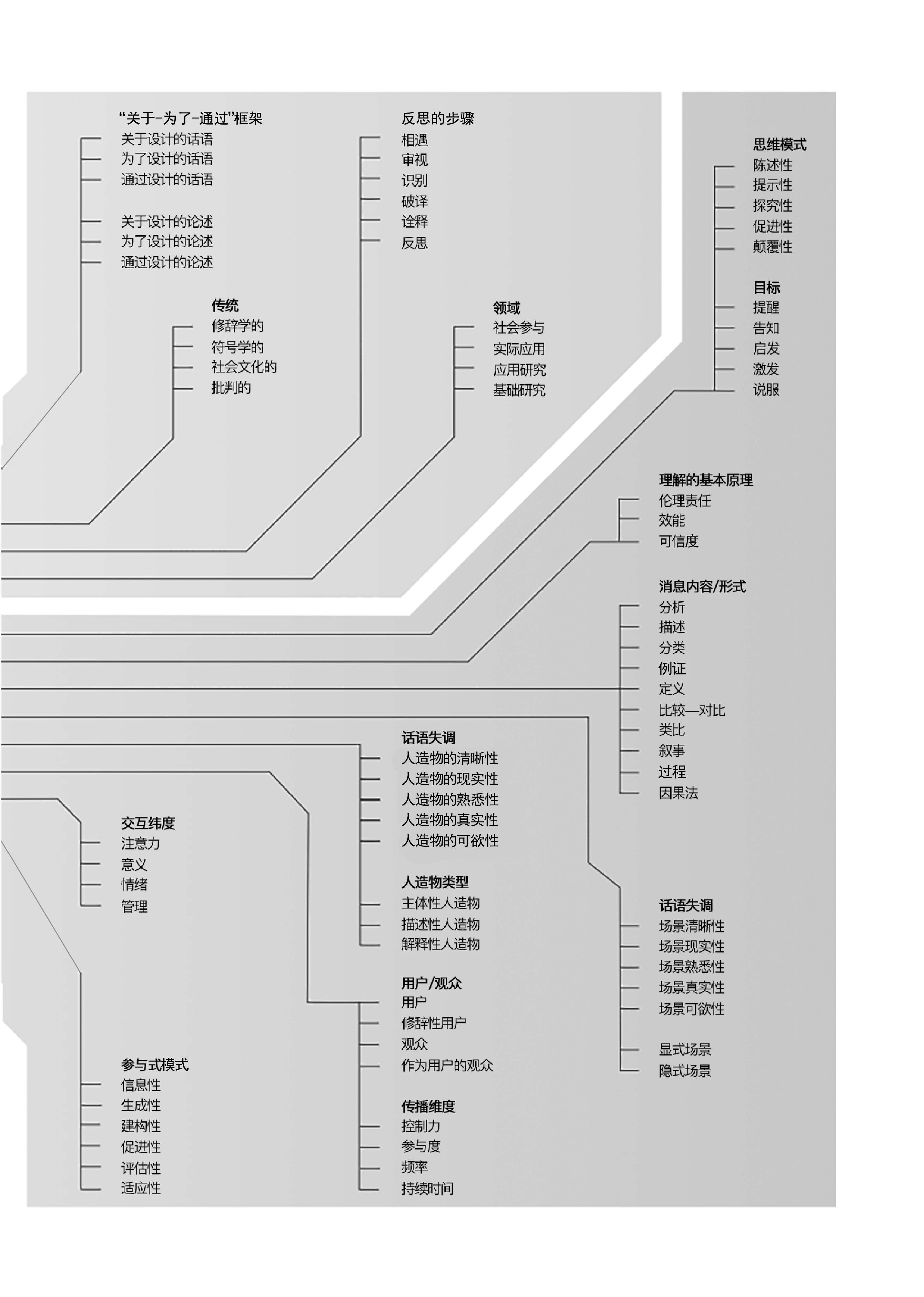 《话语性设计》邀请我们以新的眼光看待物,在其基本形式与实用等视角之外拓展对物的理解。超越批判性设计、思辨设计、设计虚构、质询设计和对抗性设计的差异化关注点,布鲁斯·撒普和斯蒂芬妮·撒普为读者搭建出了一幅更具综合性的统一愿景,以及创新性的设计方法。二人不仅进行了以物为主题的社会性批评,而且对“物可以如何被使用”这一问题进行了探索,例如,咨询师在治疗过程中如何使用物、市议会在促进投票前的讨论环节中如何使用物、活动家为了促进广泛的社会参与如何使用物,以及机构和行业为了更好地了解其服务对象的价值观、信仰和态度而如何使用物等。话语性设计能够激发全新的思考方式,只有通过全新的思考,才能改变我们的社会文化未来。