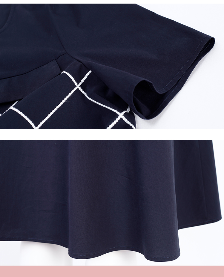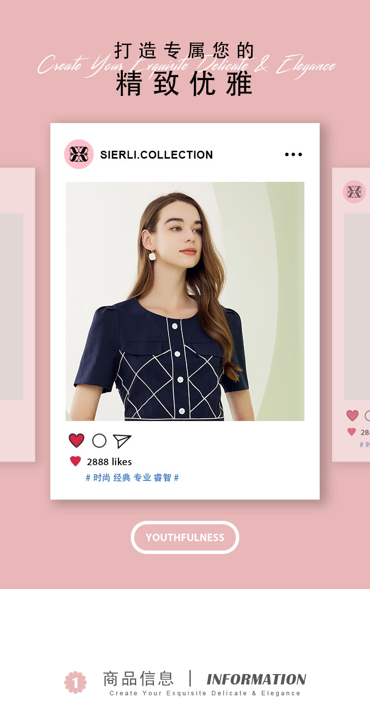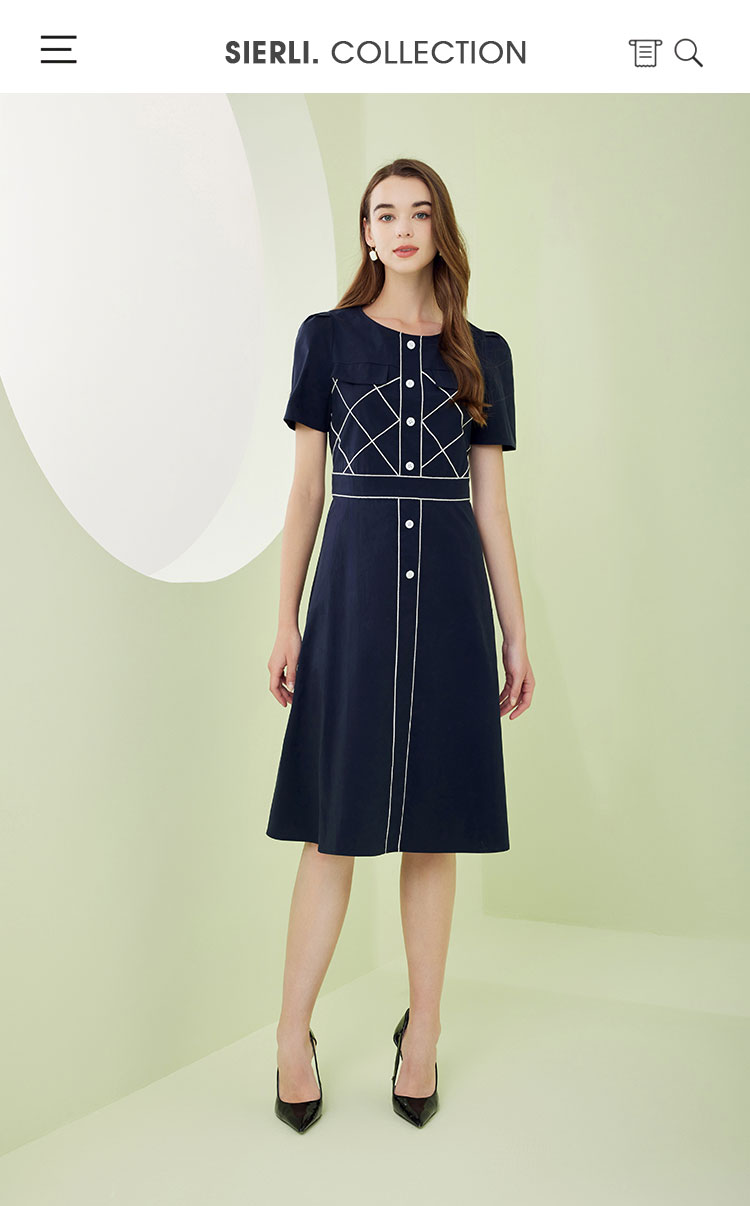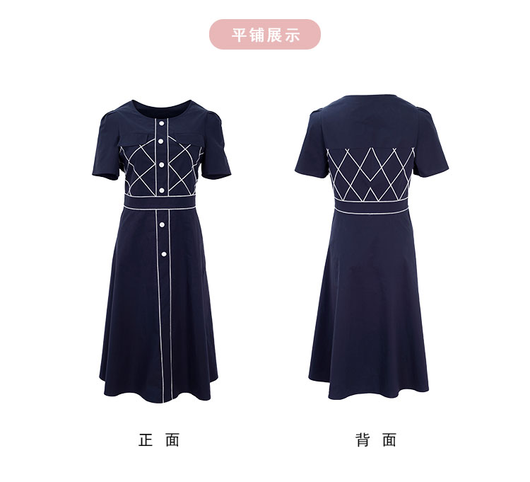 QF87D斯尔丽瑟俪2023夏季新款圆领门襟撞色绣花单排装饰扣收腰连衣裙
