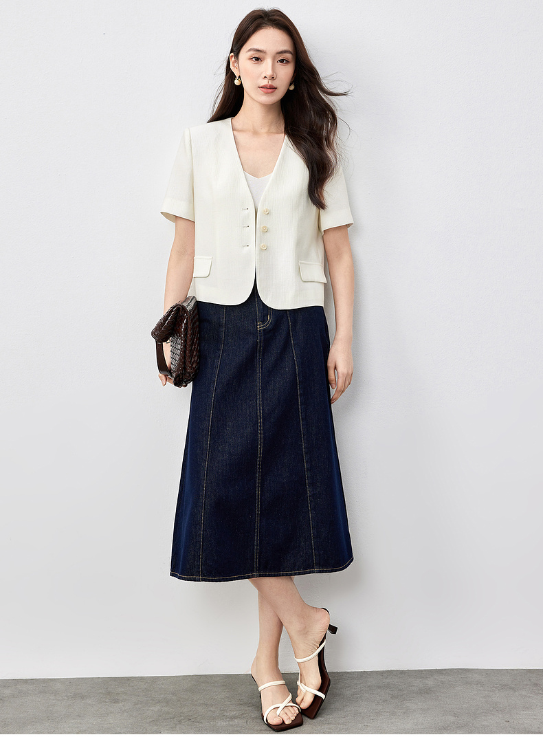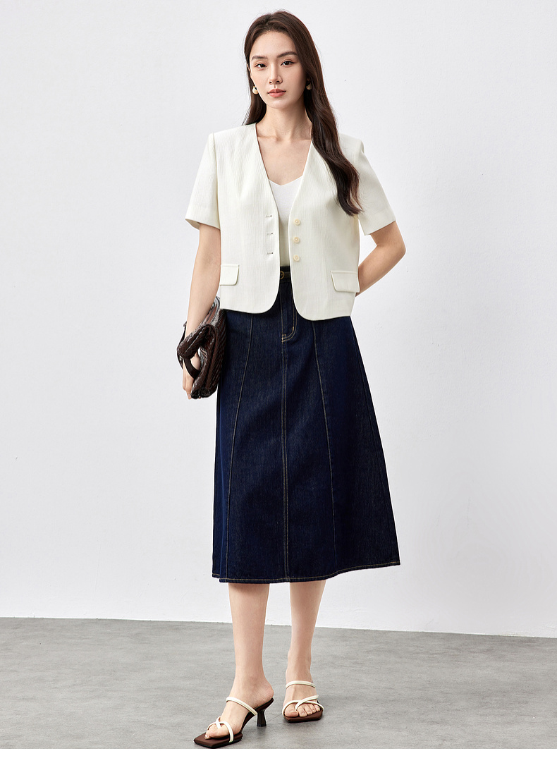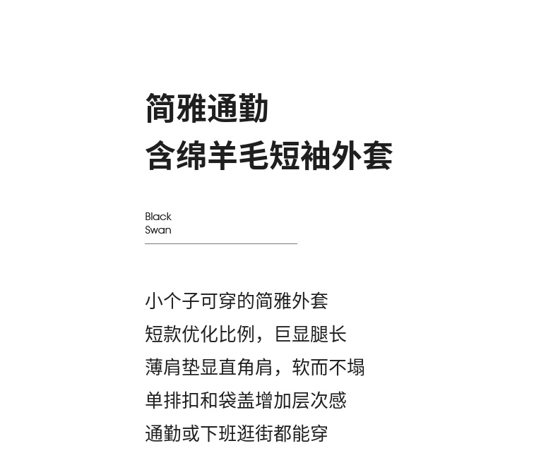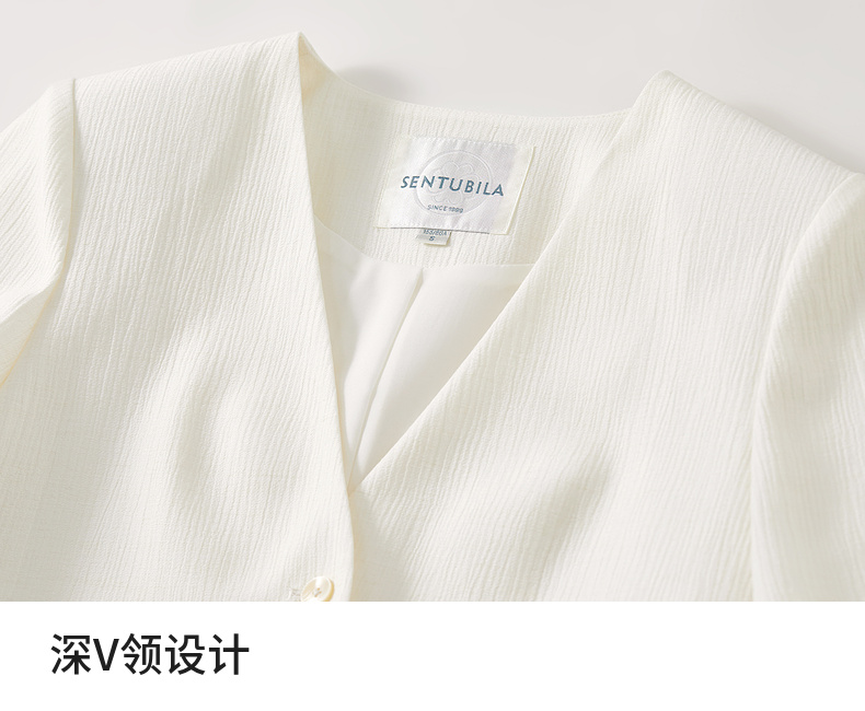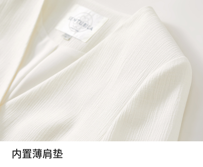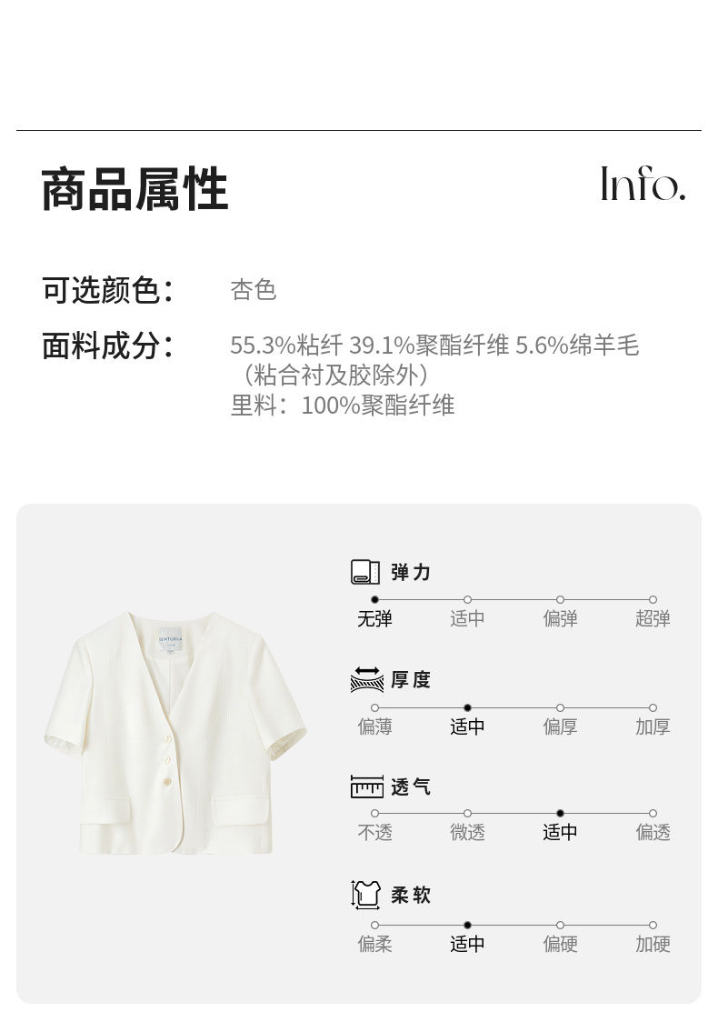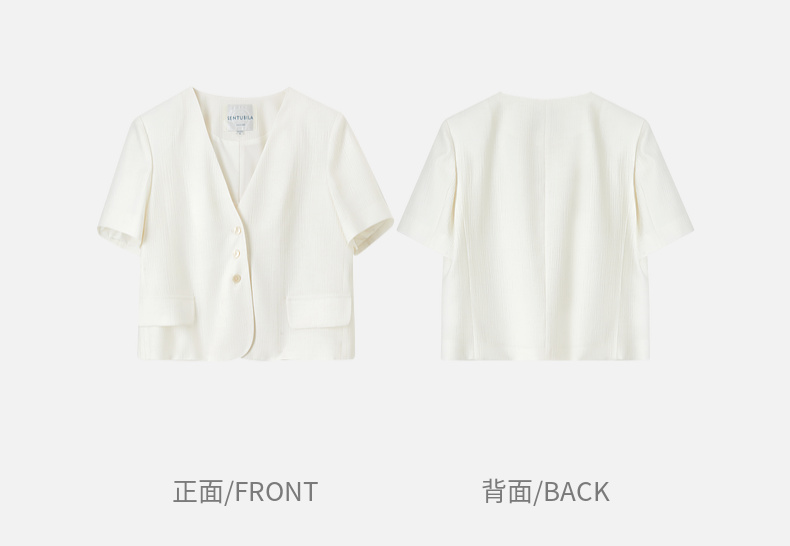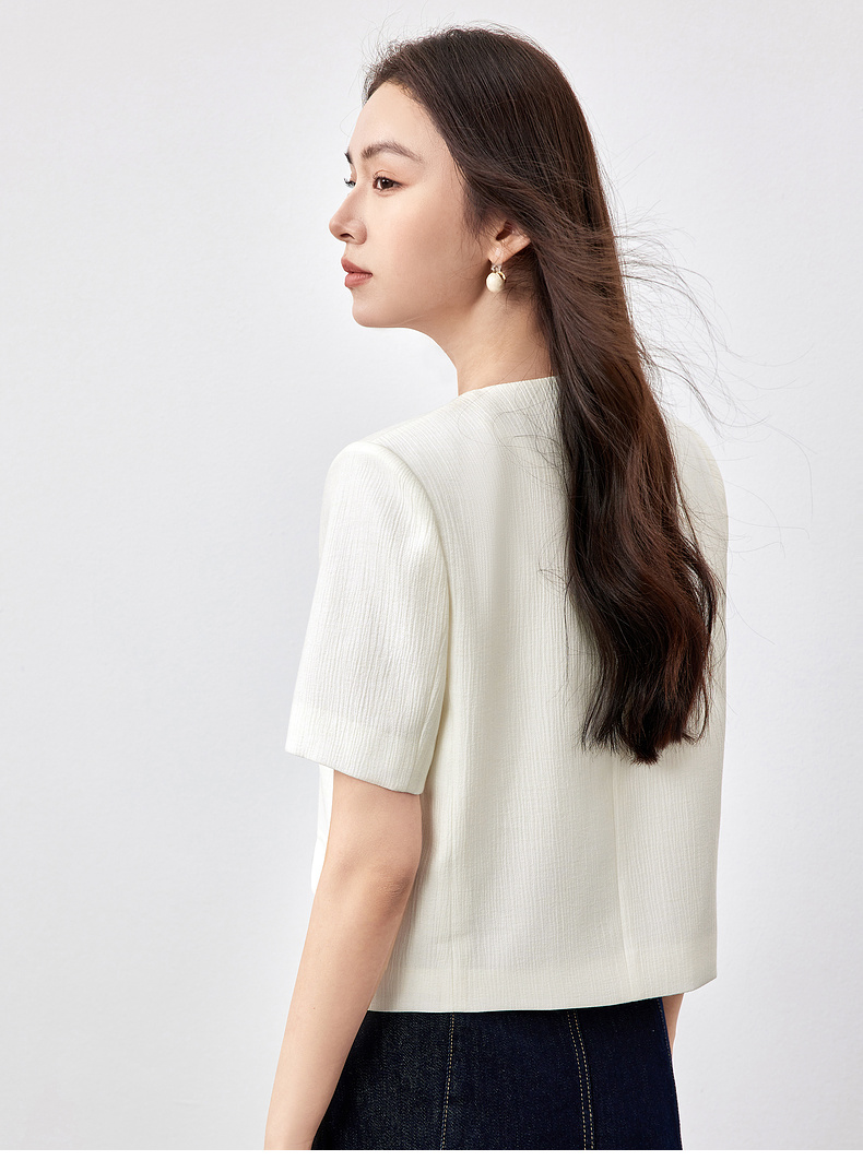 【内购】小个子简约通勤深V领单排扣垫肩微褶短款短袖外套-151W58307