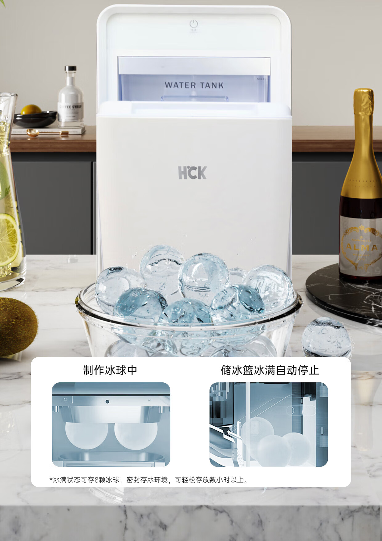 HCK【威士忌常备】哈士奇大冰球制冰机 家用全自动实心冰球制冰器 快速制冰 冰球大容量 高端球形制冰机丨白色