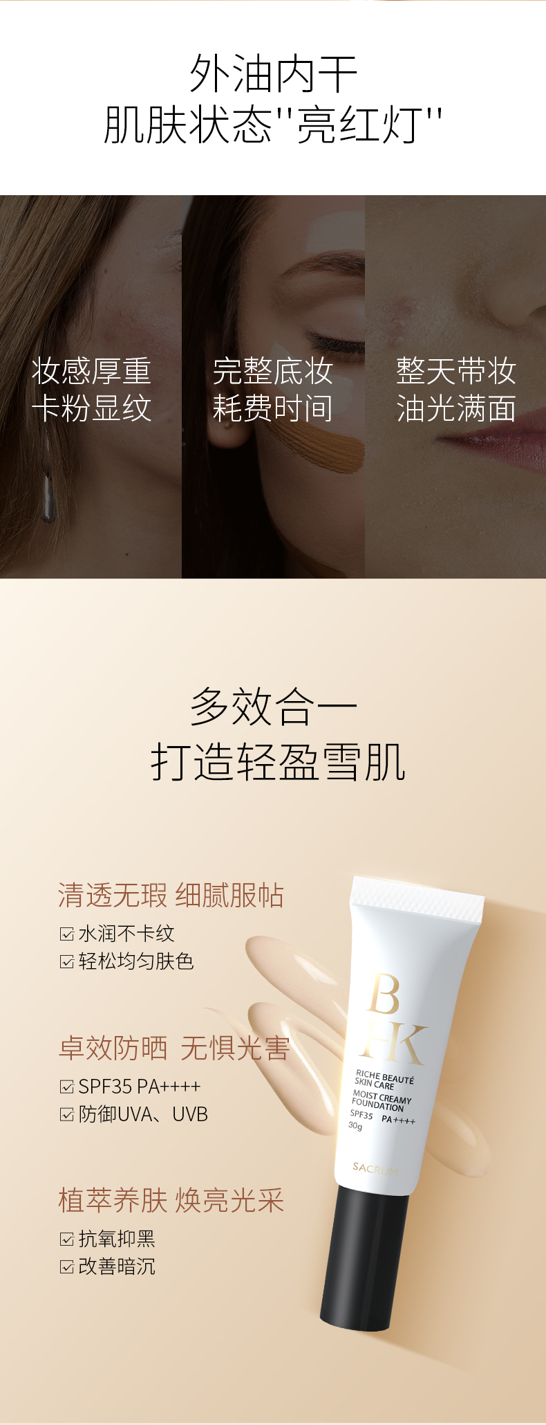 【美月双12活动】 SACRUM圣珂兰BHK雪润焕彩晶润防晒BB霜2合一(2瓶装)【效期:2609】